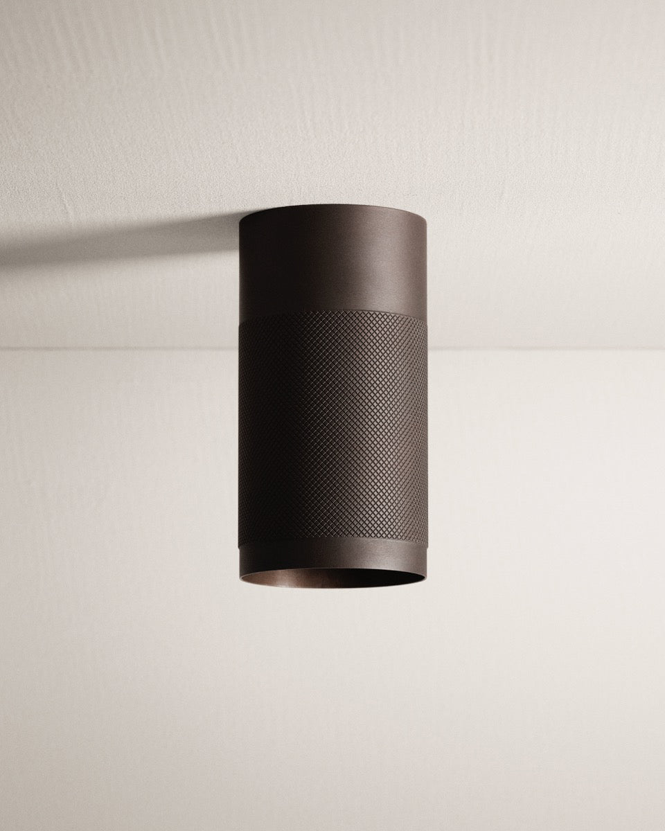 Oppdag Patrone Surface Ceiling Light – en belysning som gir et elegant og lett preg til ethvert rom. Denne taklampen er designet for å kombinere form og funksjon på en sømløs måte. Skjermen fester seg perfekt til den sirkulære basen, og avgir et stemningsfullt, ambient lys som skaper en behagelig atmosfære. Den sylindriske lampen gir et blendingsfritt, nedadrettet lys, mens det slanke designet gir et luftig og stilrent utseende.