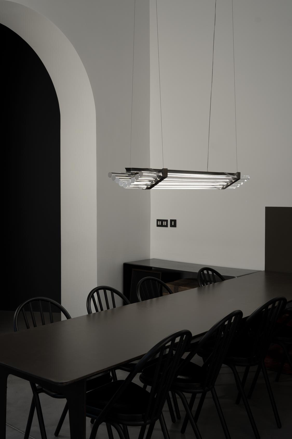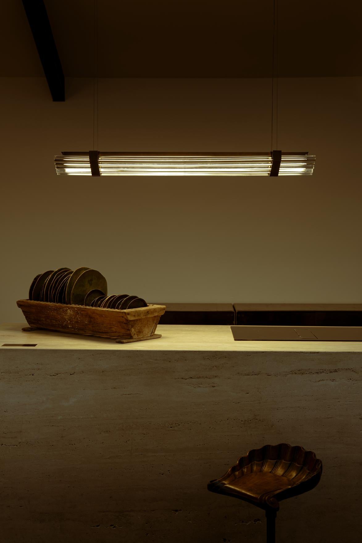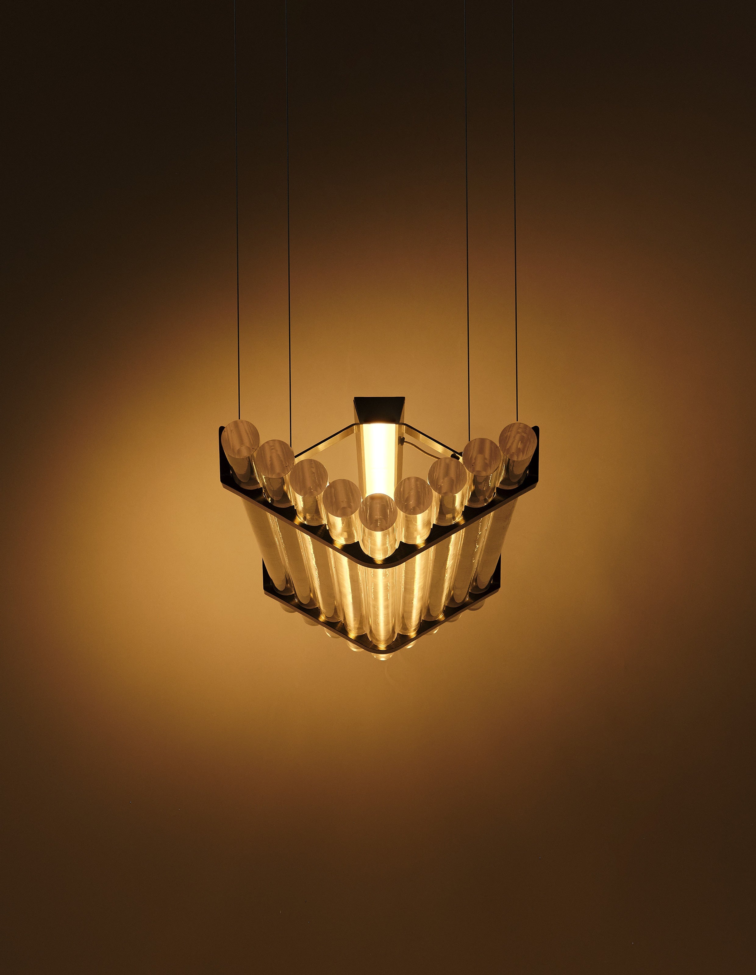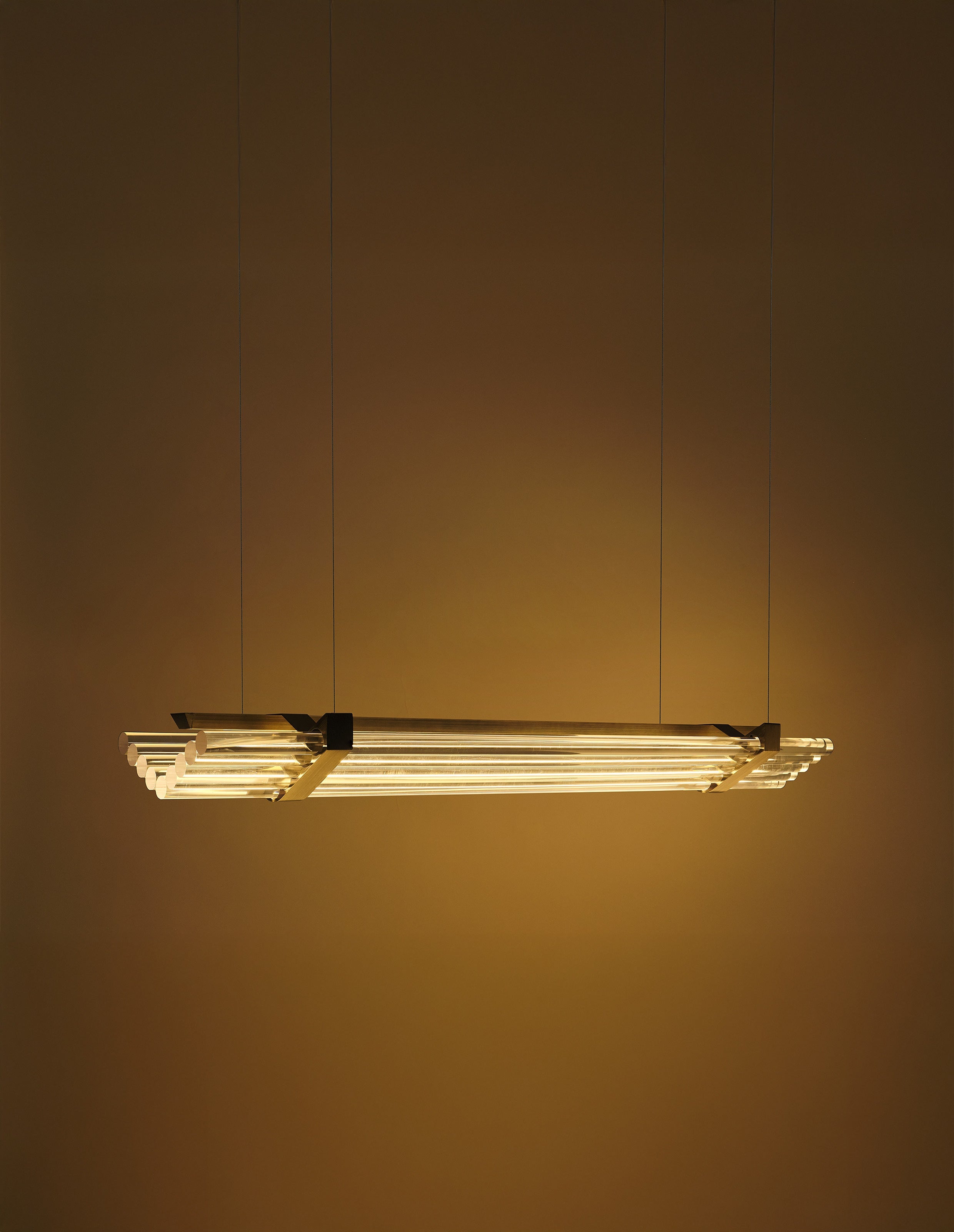 Frank Lloyd Wright hadde allerede utforsket denne ideen med fasaden til Johnson Wax Building (1936–1939), hvor glassrør spredte seg utvendig lys inn i interiøret med en nesten magisk mykhet. Inspirert av denne tilnærmingen – der lyset sprer seg uten å avsløre kilden - Thierry Dreyfus så for seg disse armaturene slik han ville liker å se og oppleve dem i sitt eget hus i dag...