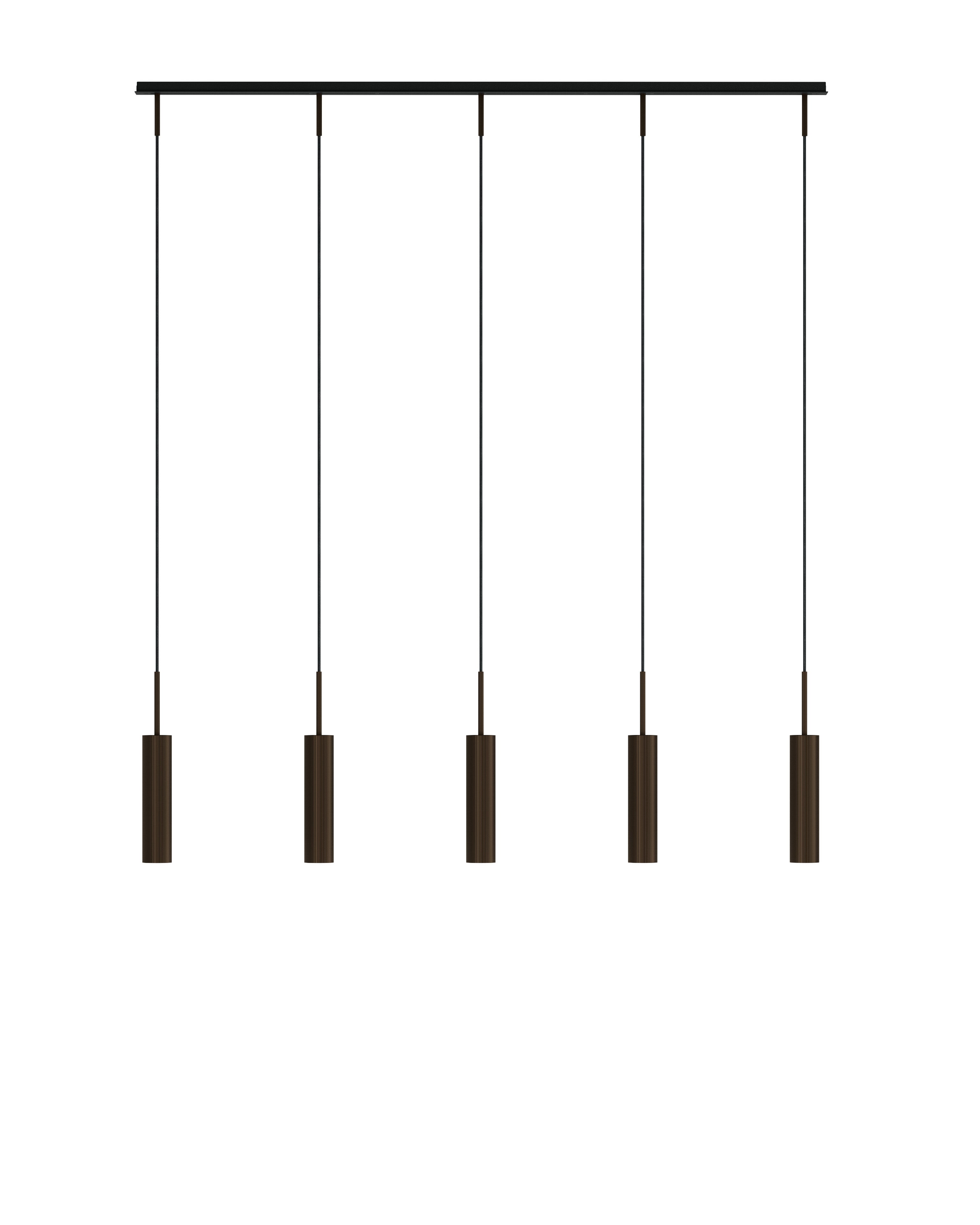 Tubulaire Rail Pendant er en visuelt fengslende belysningsløsning i sivformet aluminium som har blitt anodisert for å skape en bronsert messingoverflate. Konstruert for en rekke innstillinger, leverer den retningsbestemt og fokusert lys, og forbedrer synlighet og funksjonalitet for aktiviteter i ulike omgivelser. Lampen har et slankt og moderne designen med et snev av raffinement til enhver plass, og hever atmosfæren i rommet.