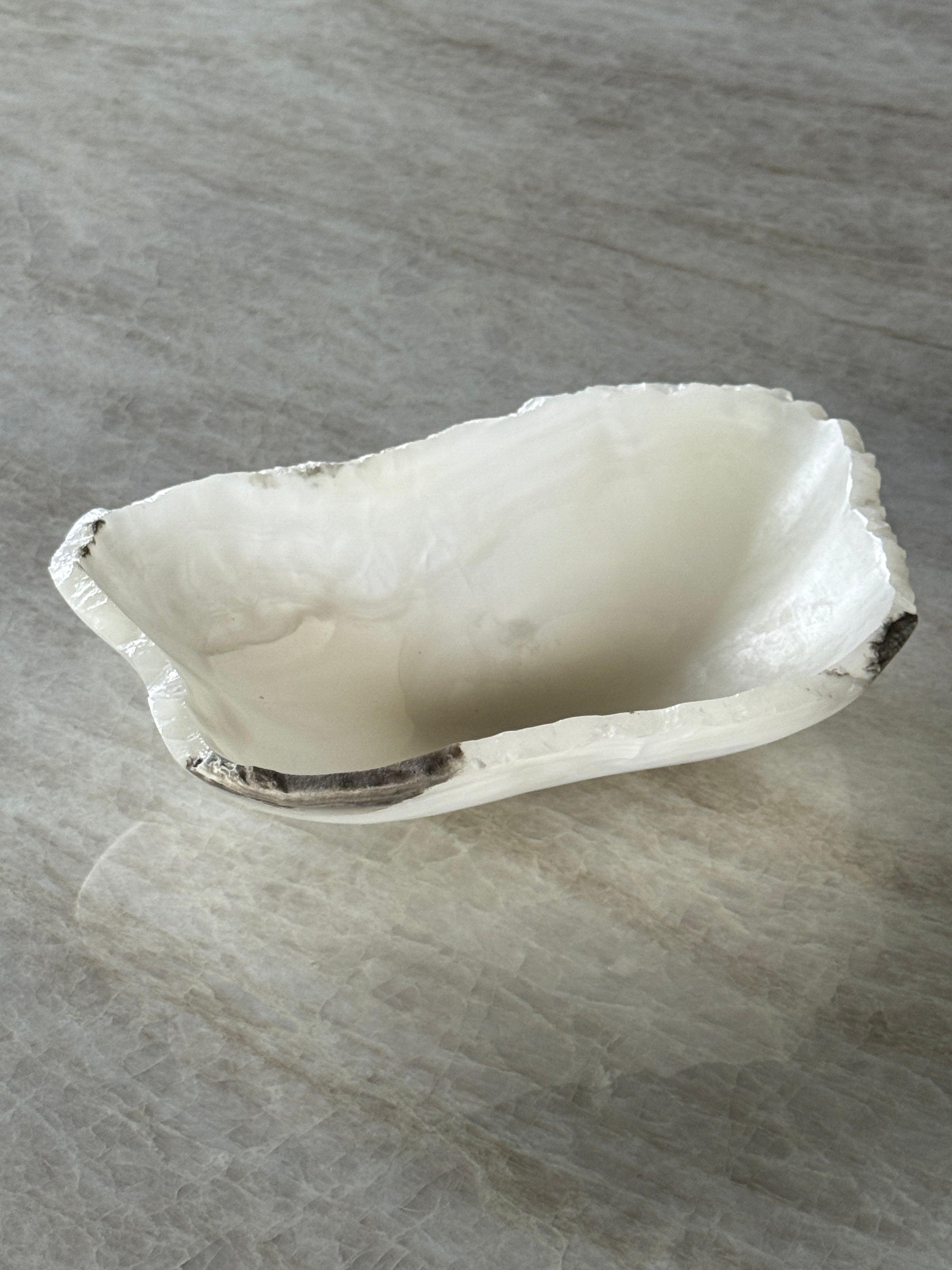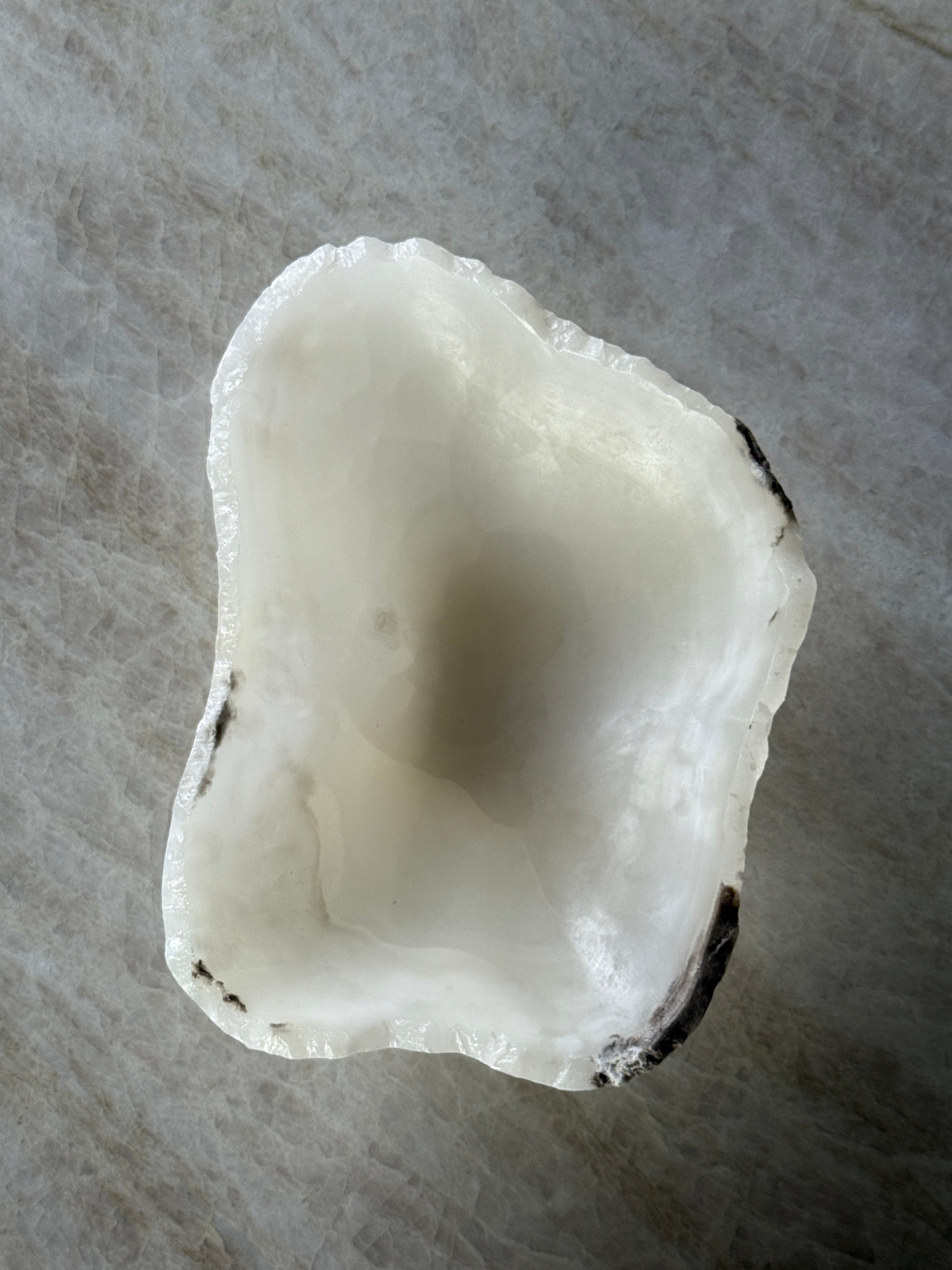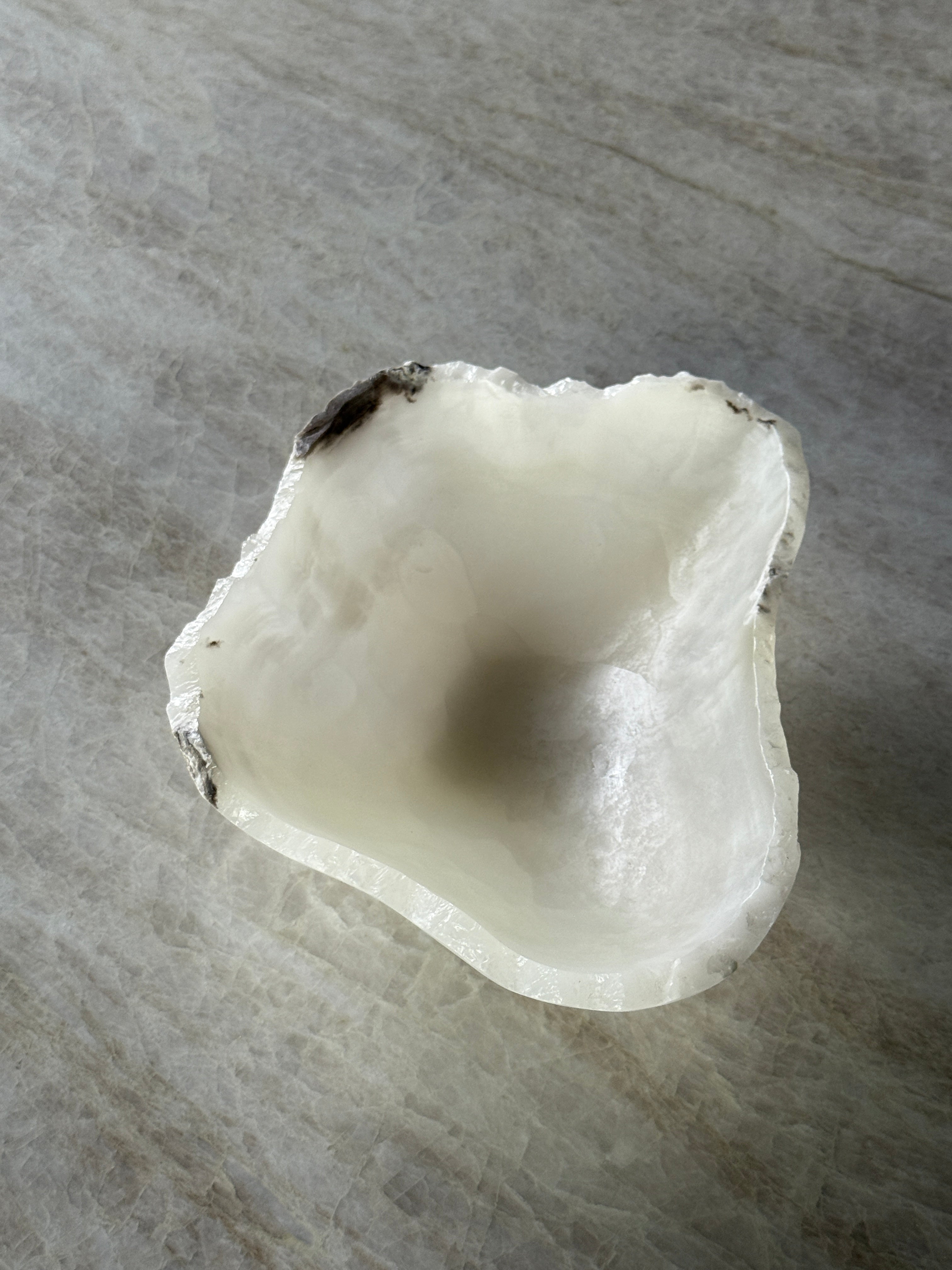 En unik vakker håndlaget skål i ren lys matt onyx! Et perfekt element som er like fin til dekor som til servering eller oppbevaring!