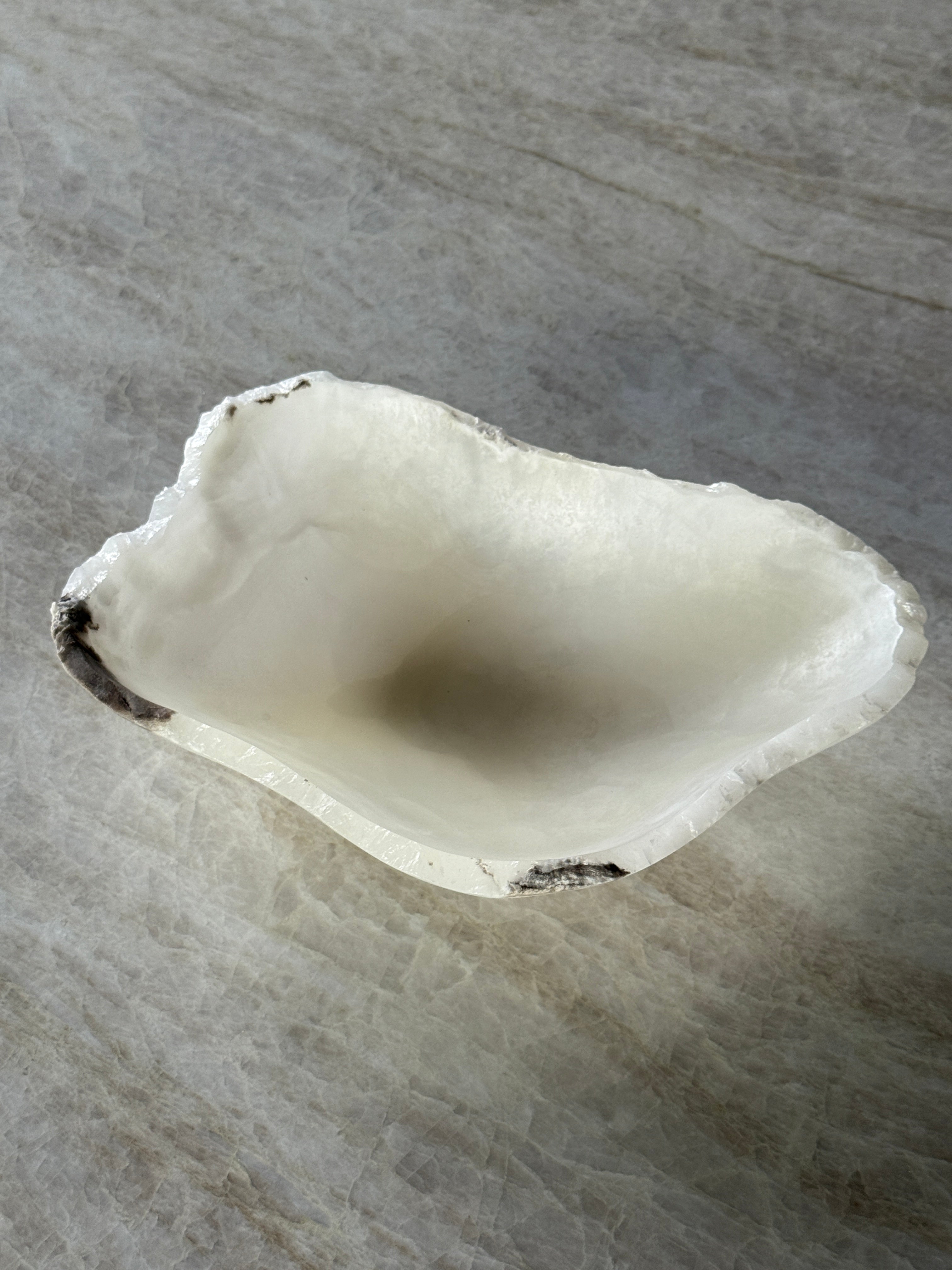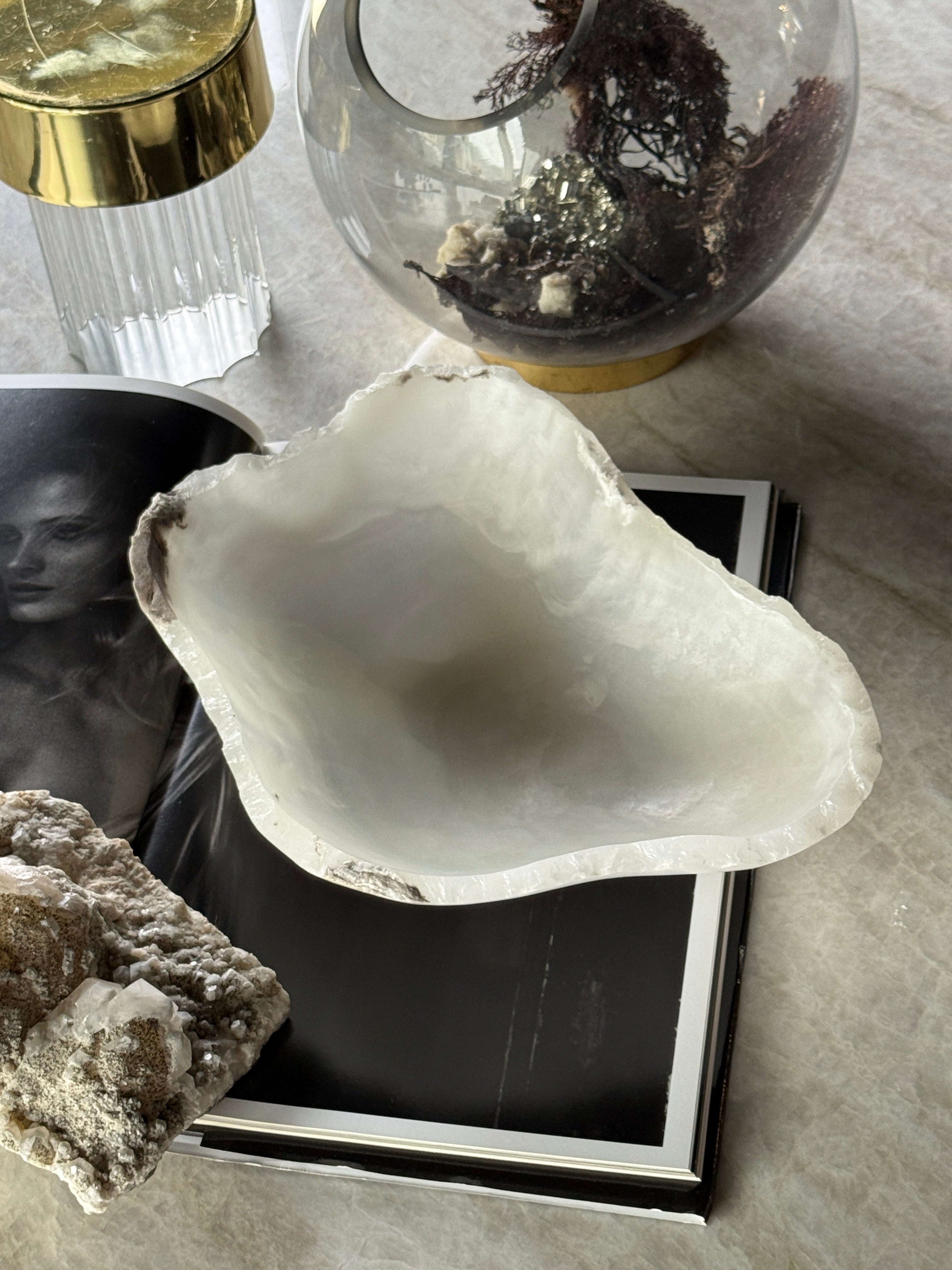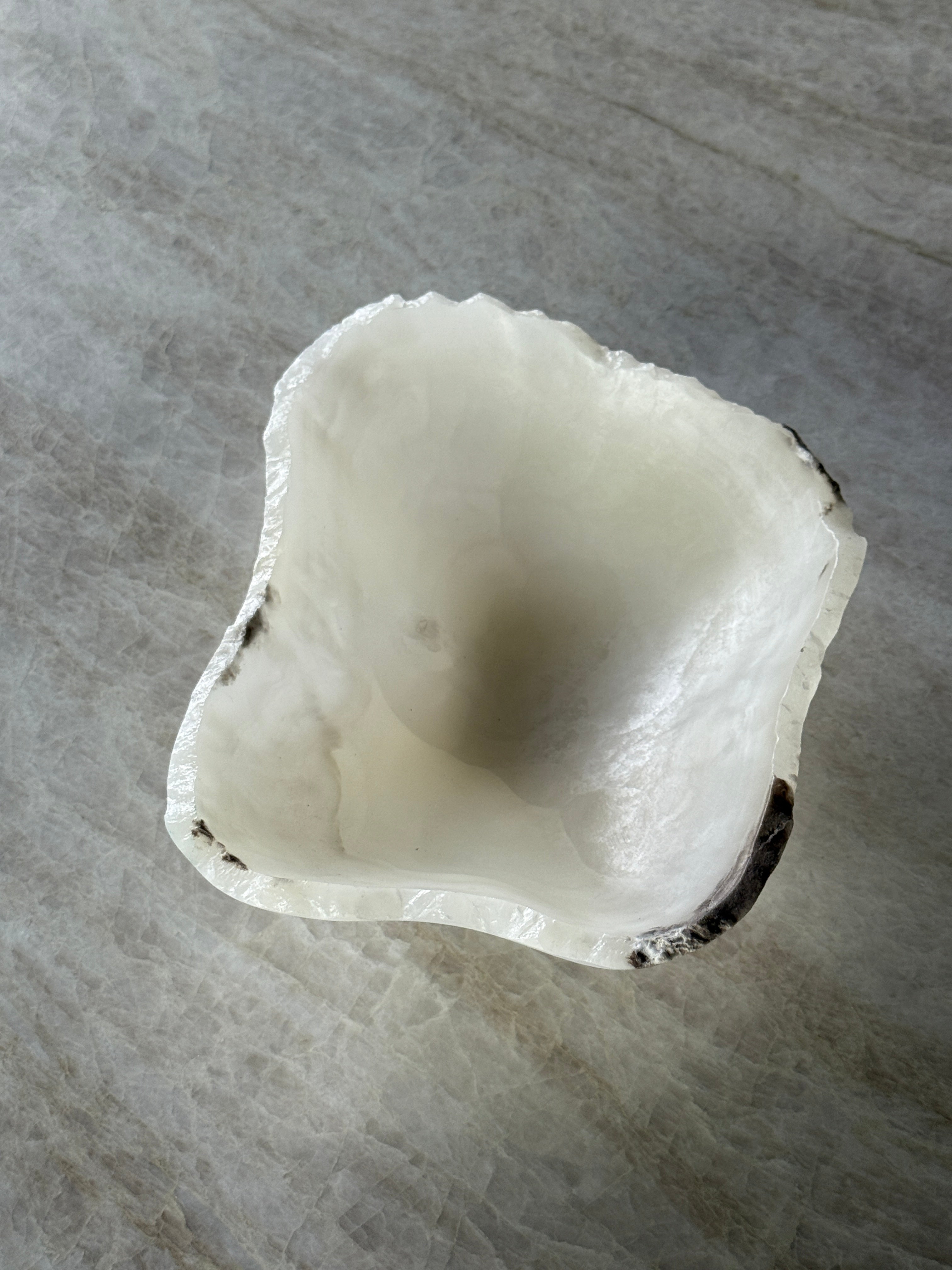 En unik vakker håndlaget skål i ren lys matt onyx! Et perfekt element som er like fin til dekor som til servering eller oppbevaring!