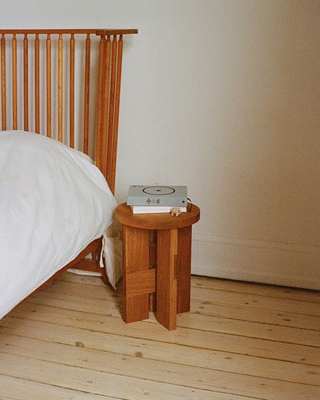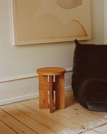 Mio Krakk & sidebord er en del av Thorups eksklusive møbelkolleksjon og er inspirert av utforskningen av treverk og den sømløse sammensmeltingen av enkle geometriske elementer – sirkelen og kvadratet. Dette flerbruksobjektet er designet med tanke på allsidighet og kan brukes som et sidebord ved sofaen, nattbord, lav krakk eller som et skulpturelt bord til å vise fram gjenstander, lamper, bøker eller kaffekoppen din.