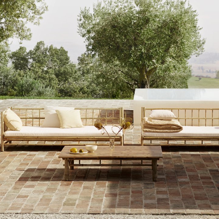 Tine K sine bambusmøbler er behandlet med en vannbasert naturlig treolje, som gjør møblene mer motstandsdyktige mot vind og vær. Les mer om behandling og vedlikehold av bambusmøbler her.