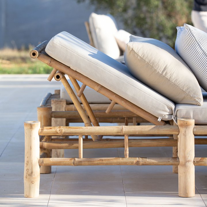 Denne solsengen i bambus er laget i en enkel skandinavisk design med vakre rette linjer. Enkelheten i designet gjør solsengen enkel å integrere i interiøret, og solsengen kan brukes utendørs så vel som innendørs. Tine K sine bambusmøbler er håndlagde, og gir de beste detaljene og et personlig preg. Bambusmøblene er representert over hele verden på hoteller, strandklubber, restauranter og private hjem.