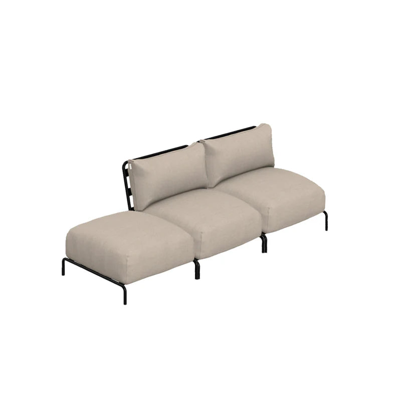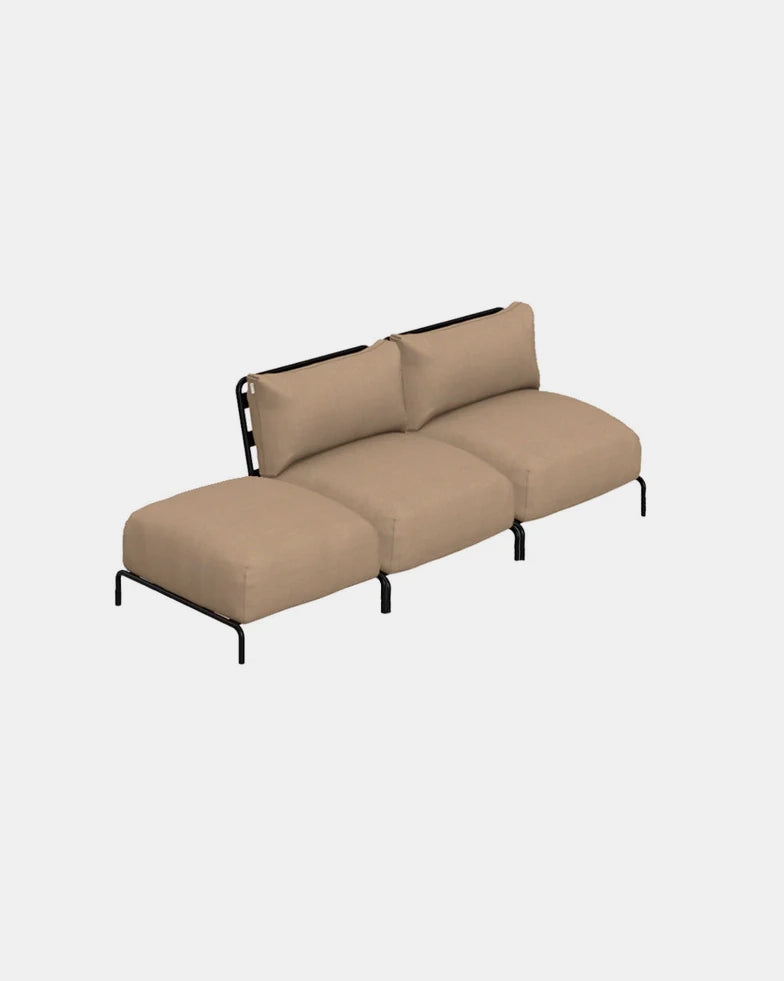 Brick 2-seters sofa med puff er en del av den allsidige Brick sofaserien, og tilbyr ulike utendørsmoduler som kan kombineres i mange konfigurasjoner. Du kan koble sofaen med andre deler fra serien, for eksempel Brick space modul eller Brick hjørnemodul ved å bruke de medfølgende klipsholderne for å lage en tilpasset uteservering.