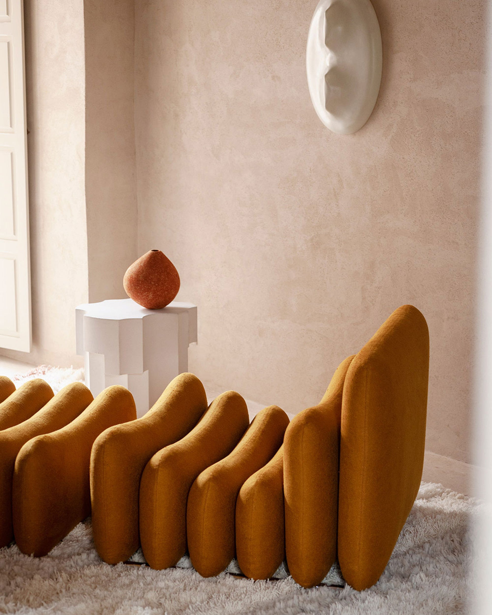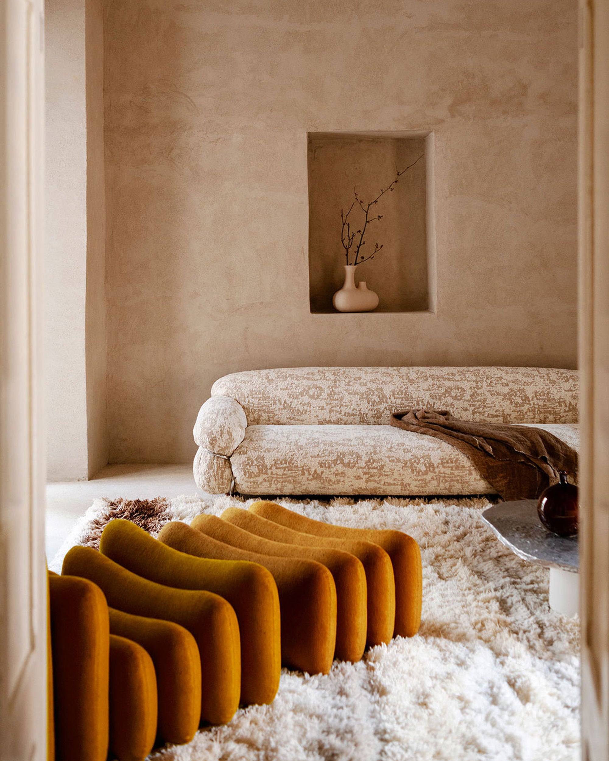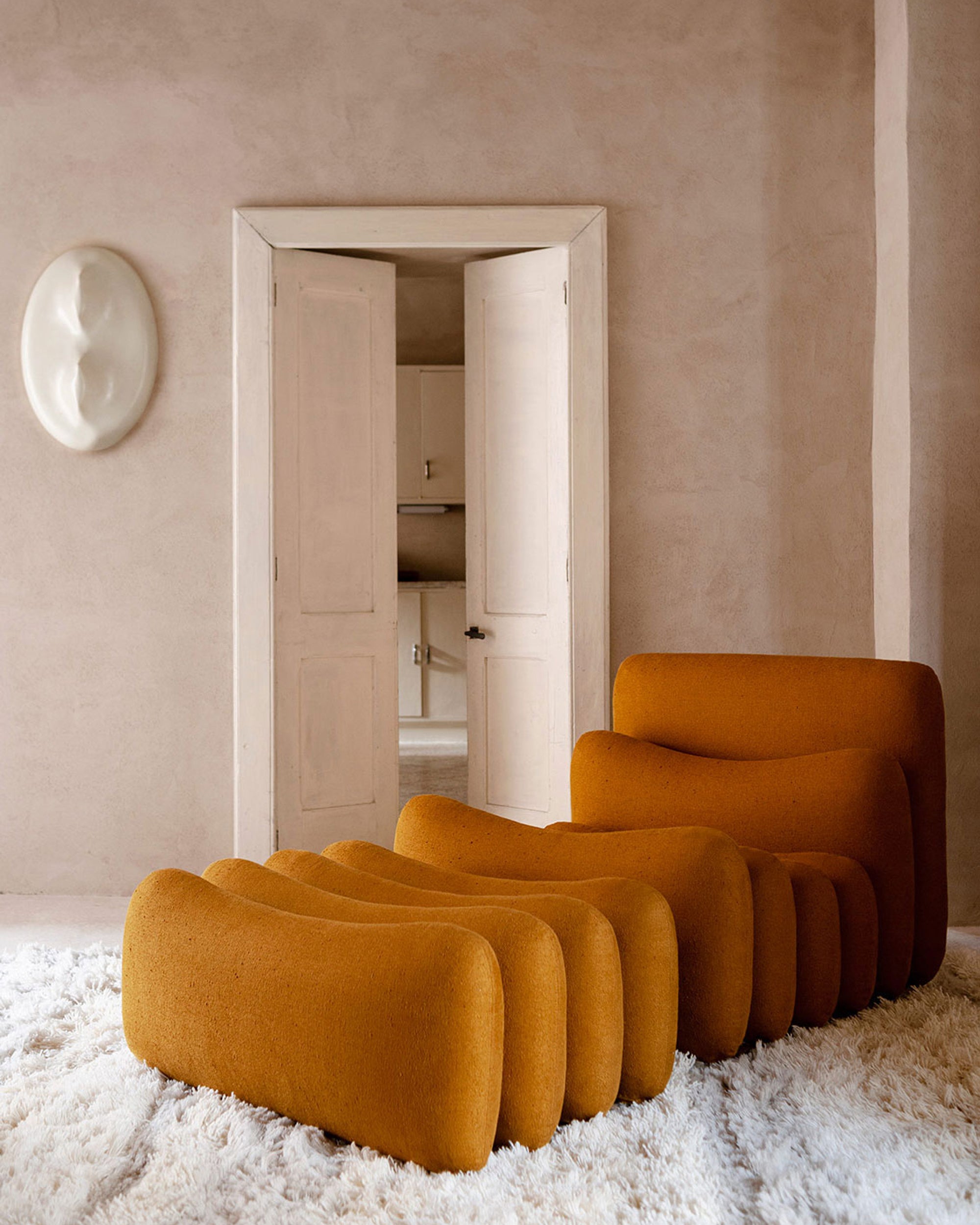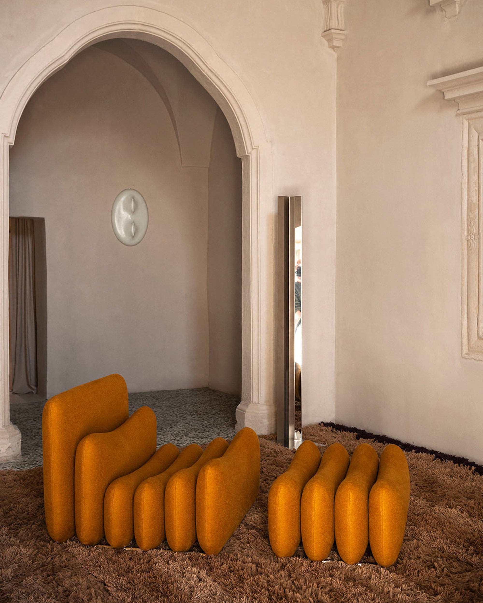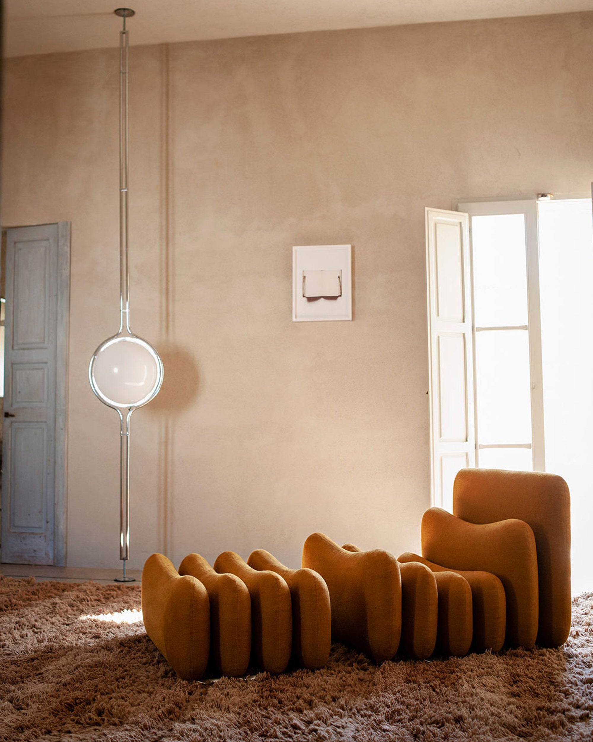 Additional System fra Tacchini er et prosjekt designet av Joe Colombo i 1967, et modulært system med tidløs sjarm som fortsatt fremstår "futuristisk" mer enn 50 år senere. Puter i ulike størrelser, inspirert av ergonomiske studier fra 1960-tallet, settes sammen i dynamiske og fleksible kombinasjoner ved å variere antall elementer og hvordan de plasseres.