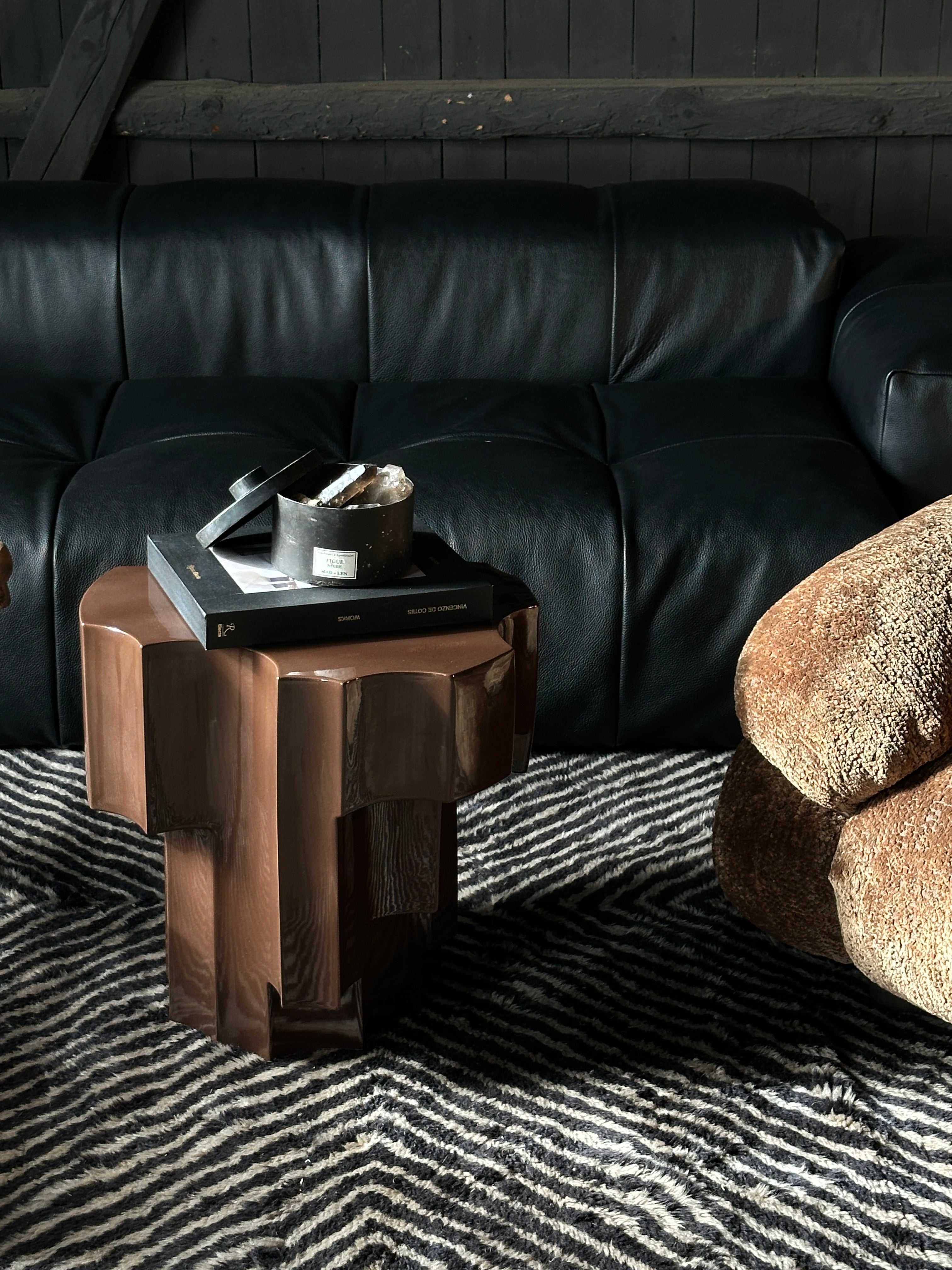 Skulptur og funksjonalitet kommer sammen for å gjenoppdage den rike meksikanske håndverksarven gjennom innovative virkemidler og språk. Ordentlig håndverk etterlater merker og baner i de flate og uberørte overflatene, mens sansene tiltrekkes av gjenvinningen av naturlige materialer og de enestående sansekontrastene som stammer fra dem. Inspirert av pre-spanske altere, markerer disse lave bordene, som kan finnes i et bredt spekter av utførelser: keramikk, betong og sedertre, det første samarbeidet mellom Tacchini og EWE Studio, et prosjekt der tradisjon gjenspeiles i design for å skape ideer som har substans og mening.