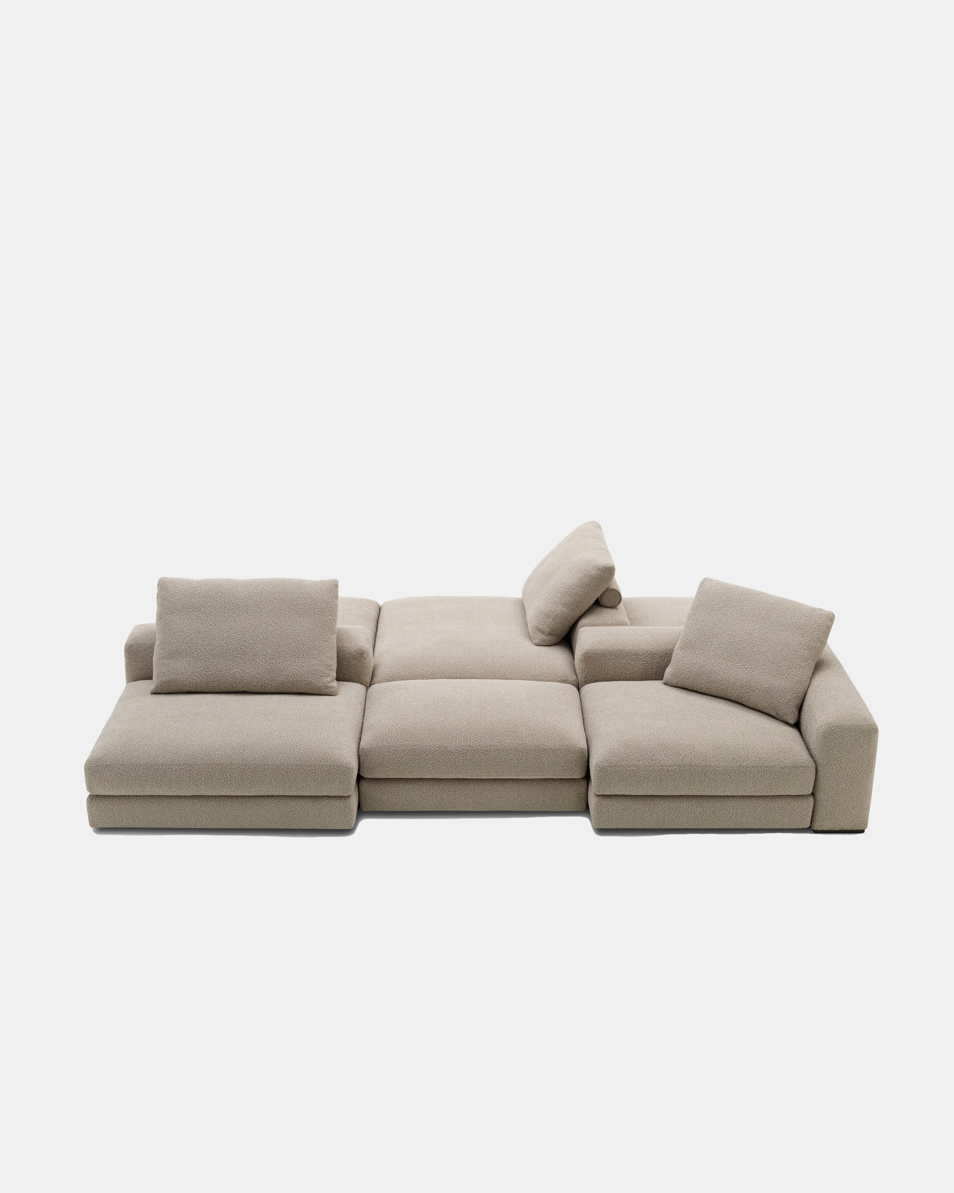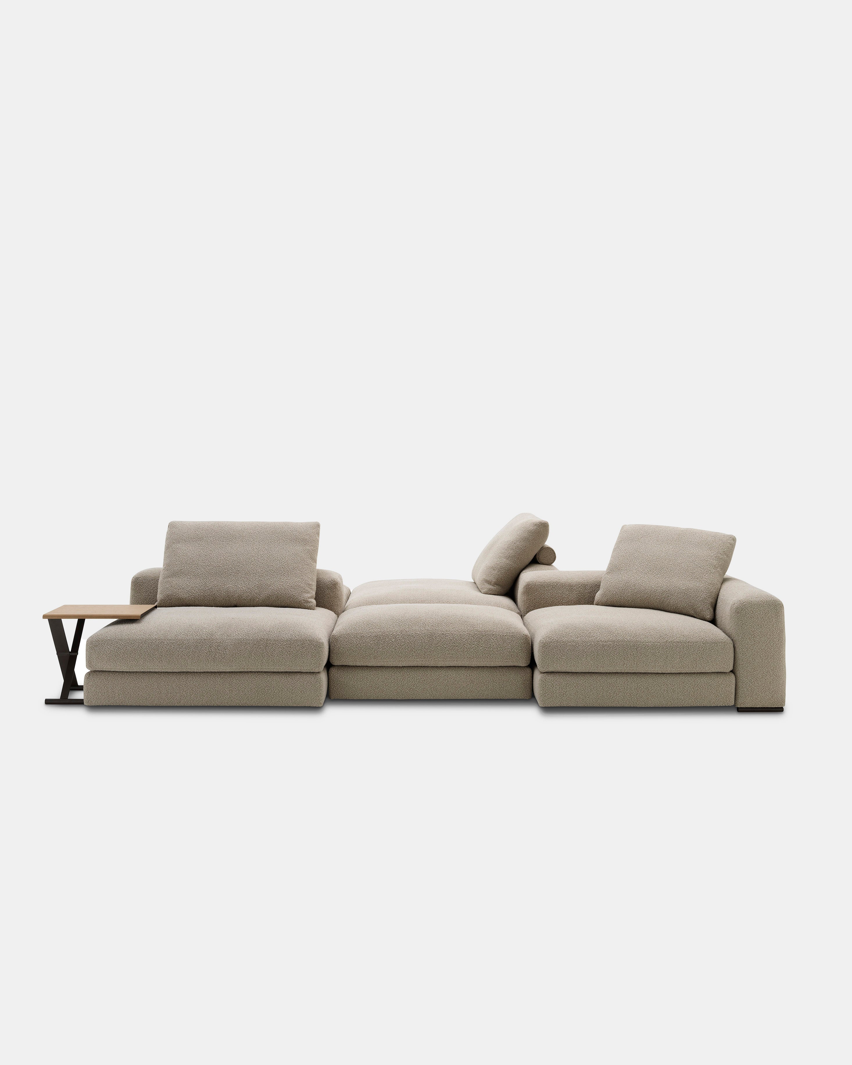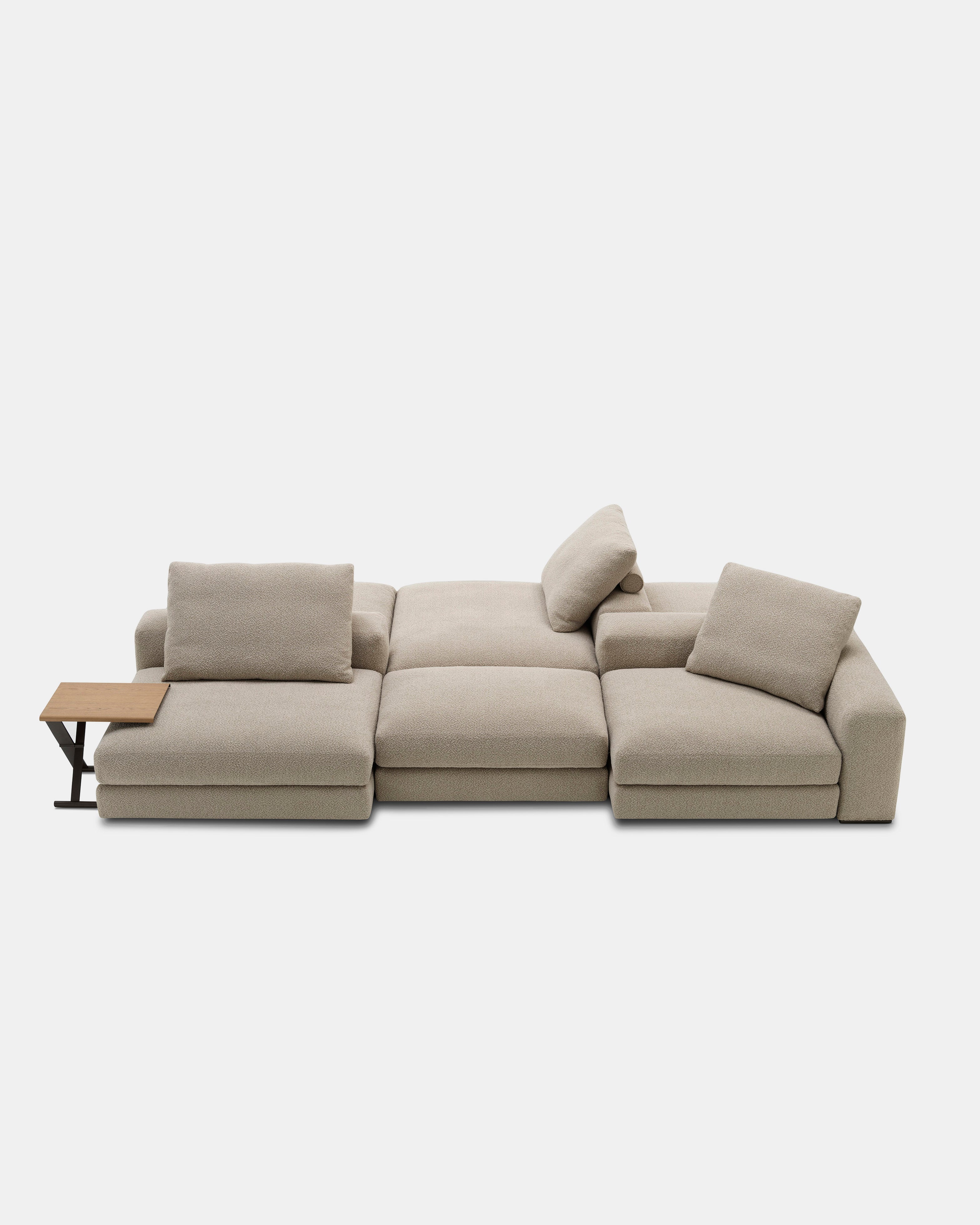 I den nyeste oppdateringen er setene nå utformet for å kunne festes i alle retninger, og putene har blitt enda mykere for maksimal komfort. I tillegg er det lagt til nye puffelementer til det allerede varierte utvalget av moduler, og en ny, myk trefinish har blitt integrert i kaffebordstilbehøret.