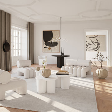 Arc Spisebord passer perfekt sammen med Brutus spisestoler for å skape et brutalistisk og arkitektonisk utseende.