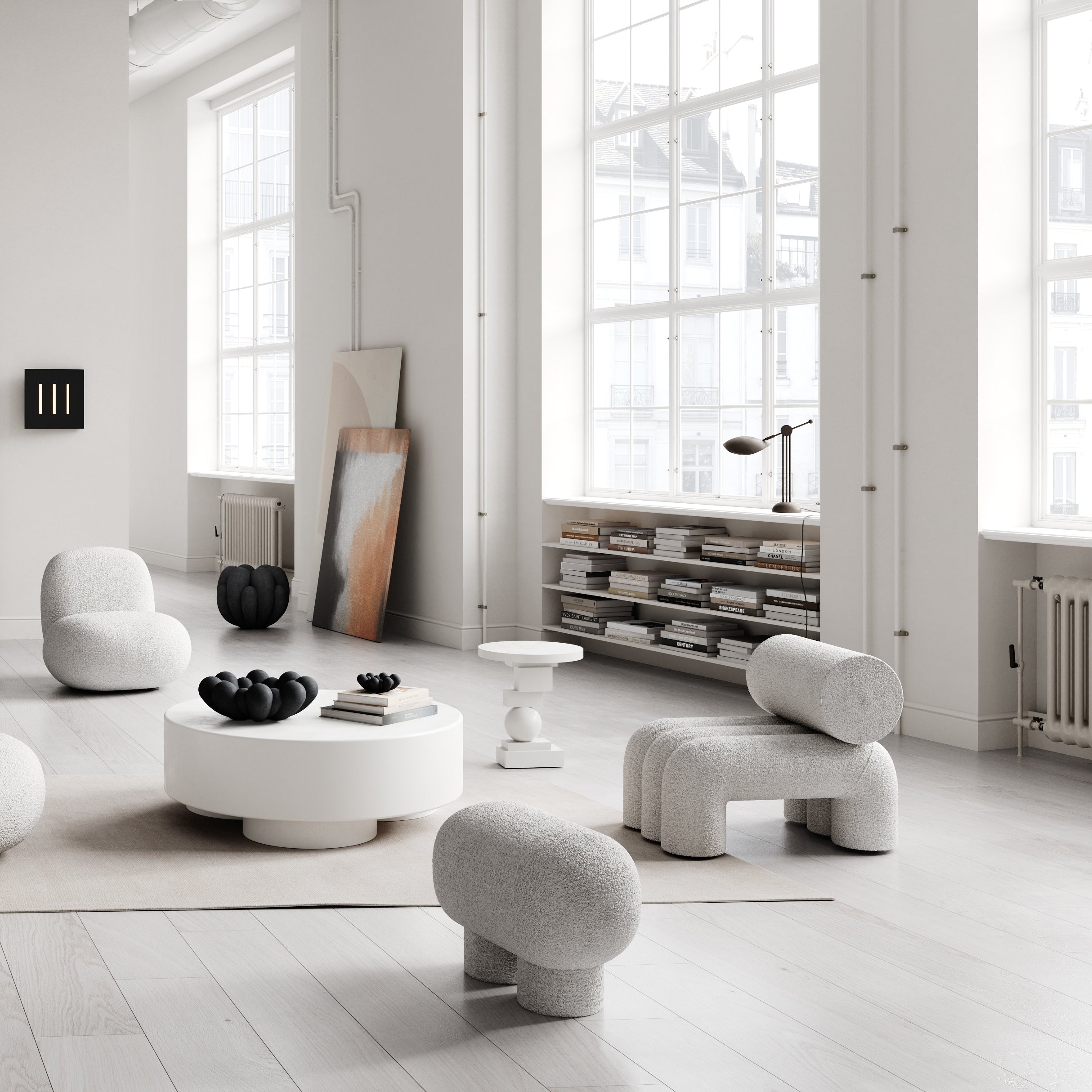 Dette bordet reiser seg fra gulvet som en kunstskulptur, og handler om å balansere geometriske former for å skape et betydningsfullt og vokalt punkt i rommet. Serieninkluderer også et spisebord. Serien er laget av støpt fiberbeton og på grunn av at produktet er støpt og etterpå håndmalt, er hvert produkt unikt. Artist sidebord er støpt i ett stykke.