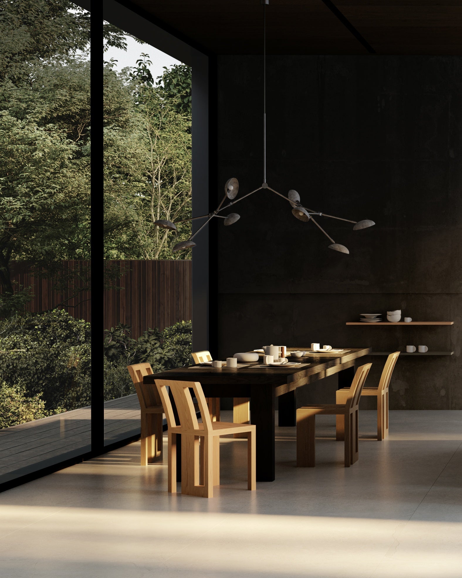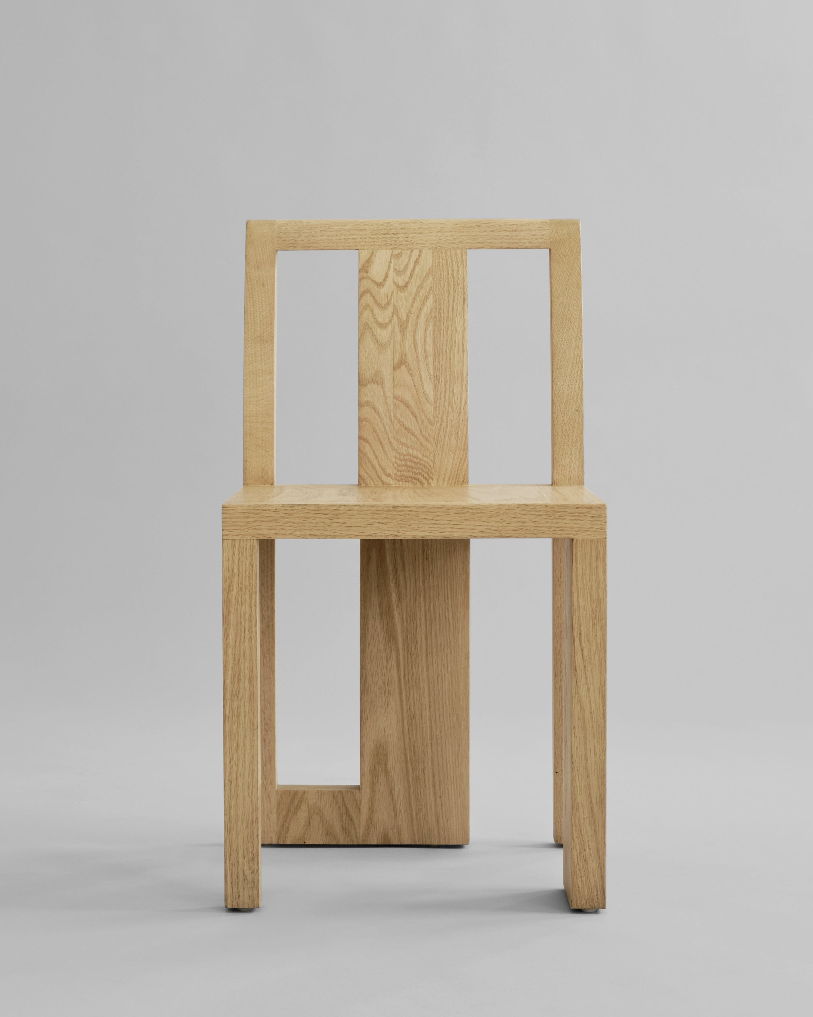 101 Copenhagen introduserer Atsu spisestol, et minimalistisk design inspirert av tradisjonelle kinesiske stoler. Håndlaget av dyktige håndverkere, hver del av Atsu-stolen sikrer feilfri utførelse med sømløse forbindelser mellom hver komponent, og utstråler en minimal og ren estetikk. Atsu sin asymmetriske struktur fungerer som et skulpturelt uttrykk ved å bruke massive eikeplanker som danner det ene fremre benet og midtryggen.