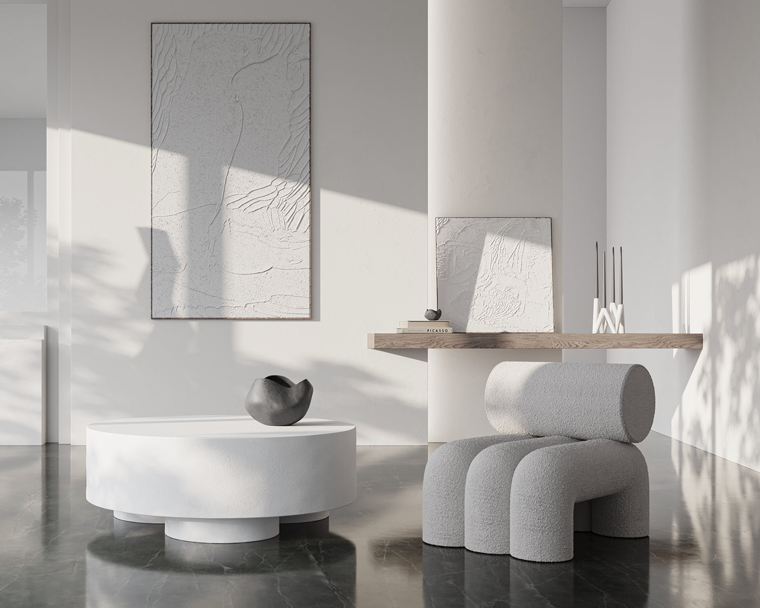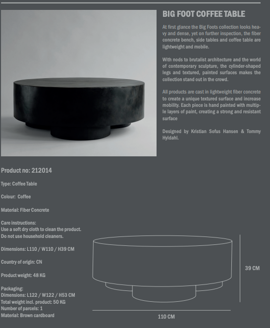 Ved første øyekast ser Big Foots-kolleksjonen tung og tett ut, men ved videre inspeksjon er fiberbetongbenken, sidebordene og salongbordet lette og mobile. Med nikk til brutalistisk arkitektur og samtidsskulpturens verden, får de sylinderformede bena og teksturerte, malte overflater kolleksjonen til å skille seg ut i mengden - som er det vi alle ønsker, ikke sant?