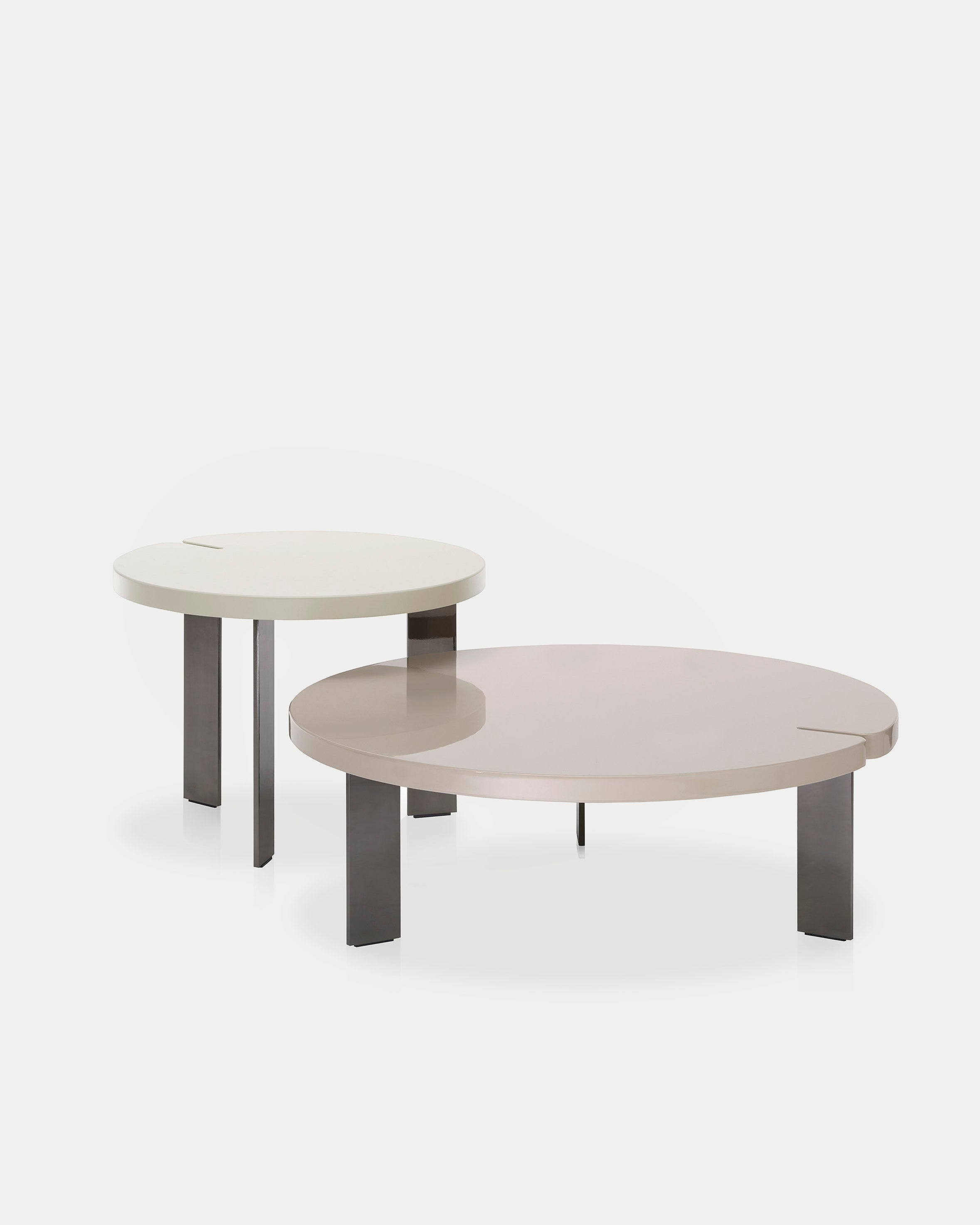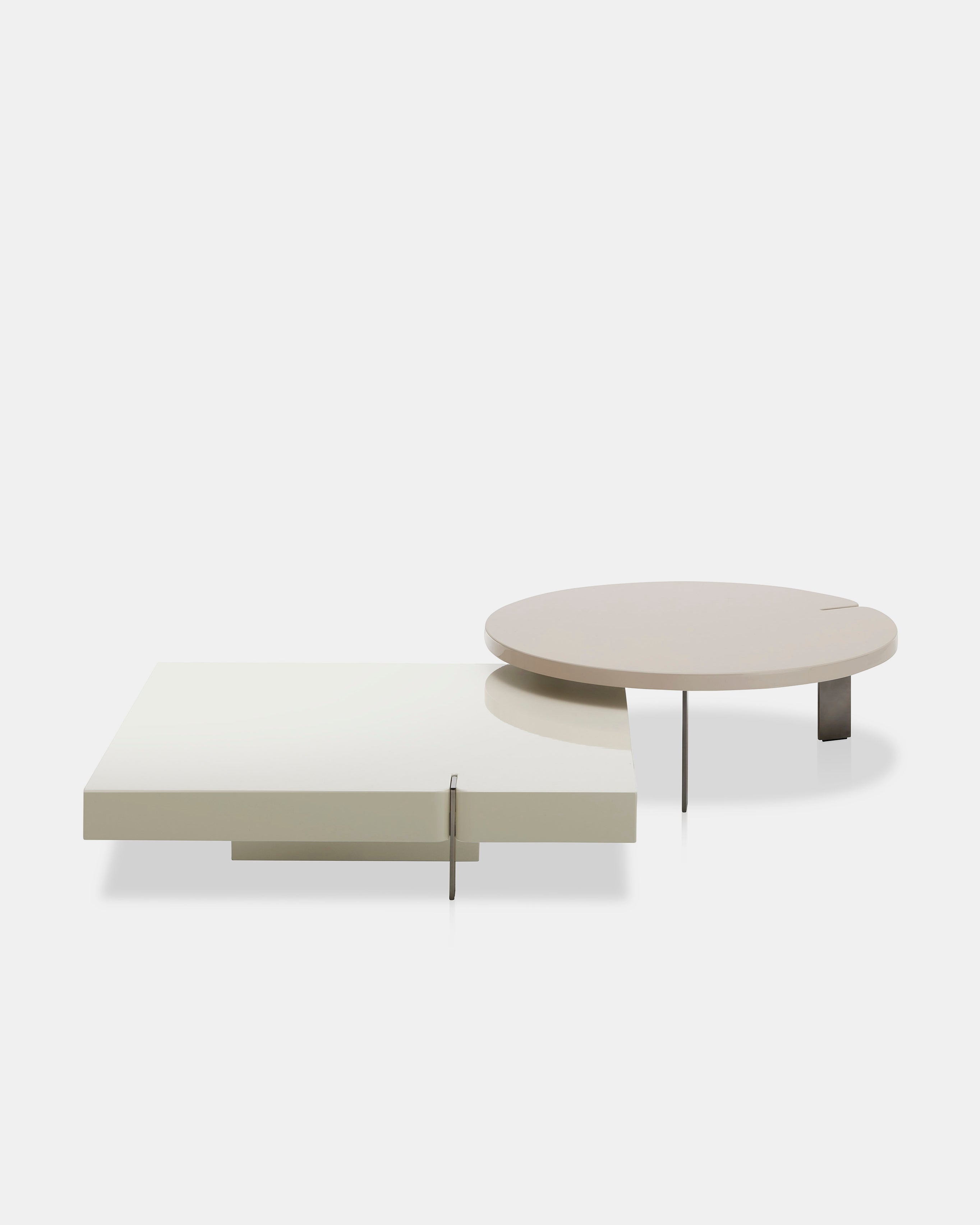 Bordene kommer i både kvadratisk og rund form, og er tilgjengelige i ulike størrelser og høyder. Dette gir mulighet for å skape dynamiske rom, ved å leke med skygger og overflater i enten blank eller matt finish.