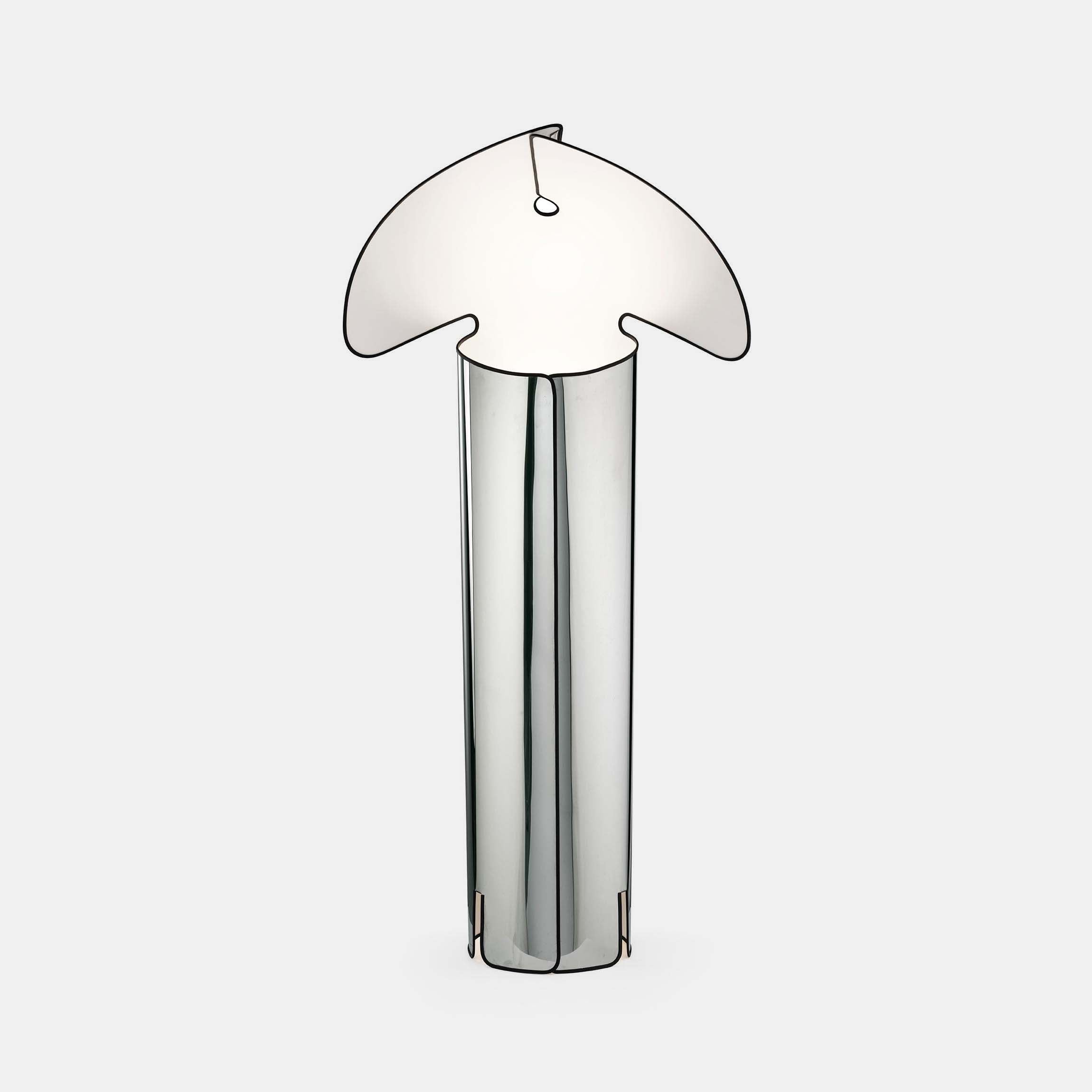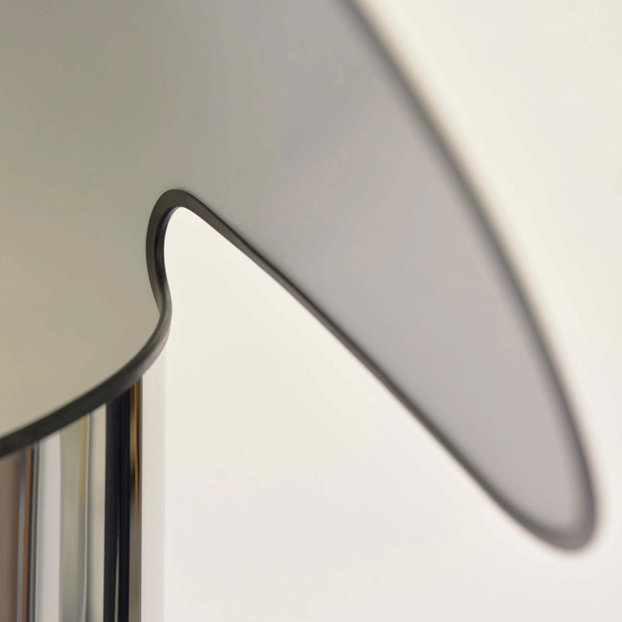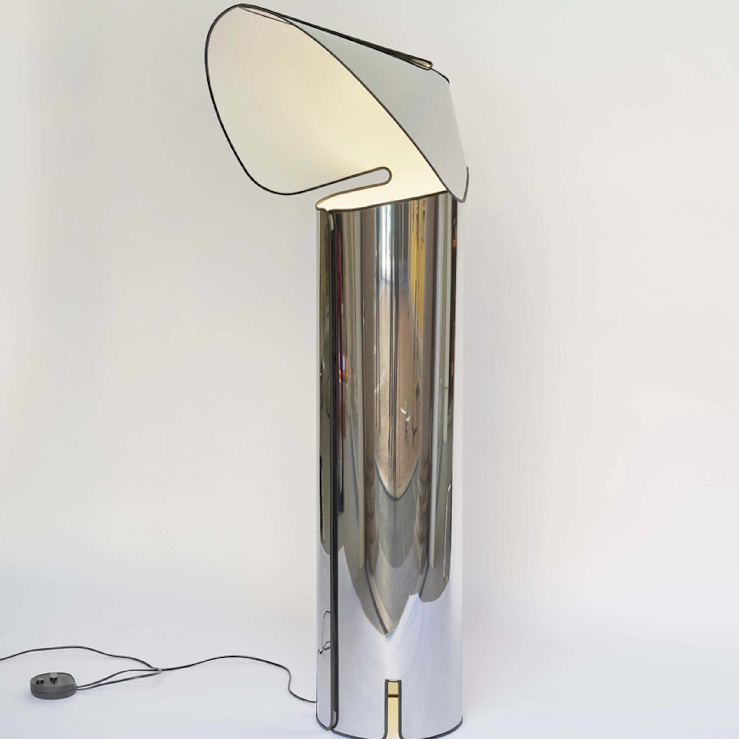 Gulvlampen Chiara ble designet i 1969 av Mario Bellini for italienske Flos. Denne voluminøse armaturen består av en 145 cm høy, sylindrisk lampefot i form av en reflekterende kropp av laserskåret, rustfritt stål i ett eneste stykke. Chiara Floor har en skjult lyskilde som belyser den buede skjermen som minner om et slør, og sprer et fint lys. Lampen er beriket med en kontrasterende, antrasittfarget gummikant. Chiara Floor blir en slående vakker interiørdetalj i hjemmet, og er like interessant selv når den er slukket. Armaturen har en 1,9 meter lang ledning med dimmer for å kunne justere ønsket lysstyrke. Chiara-kolleksjonen inkluderer også en bordlampe i tre forskjellige fargekombinasjoner.