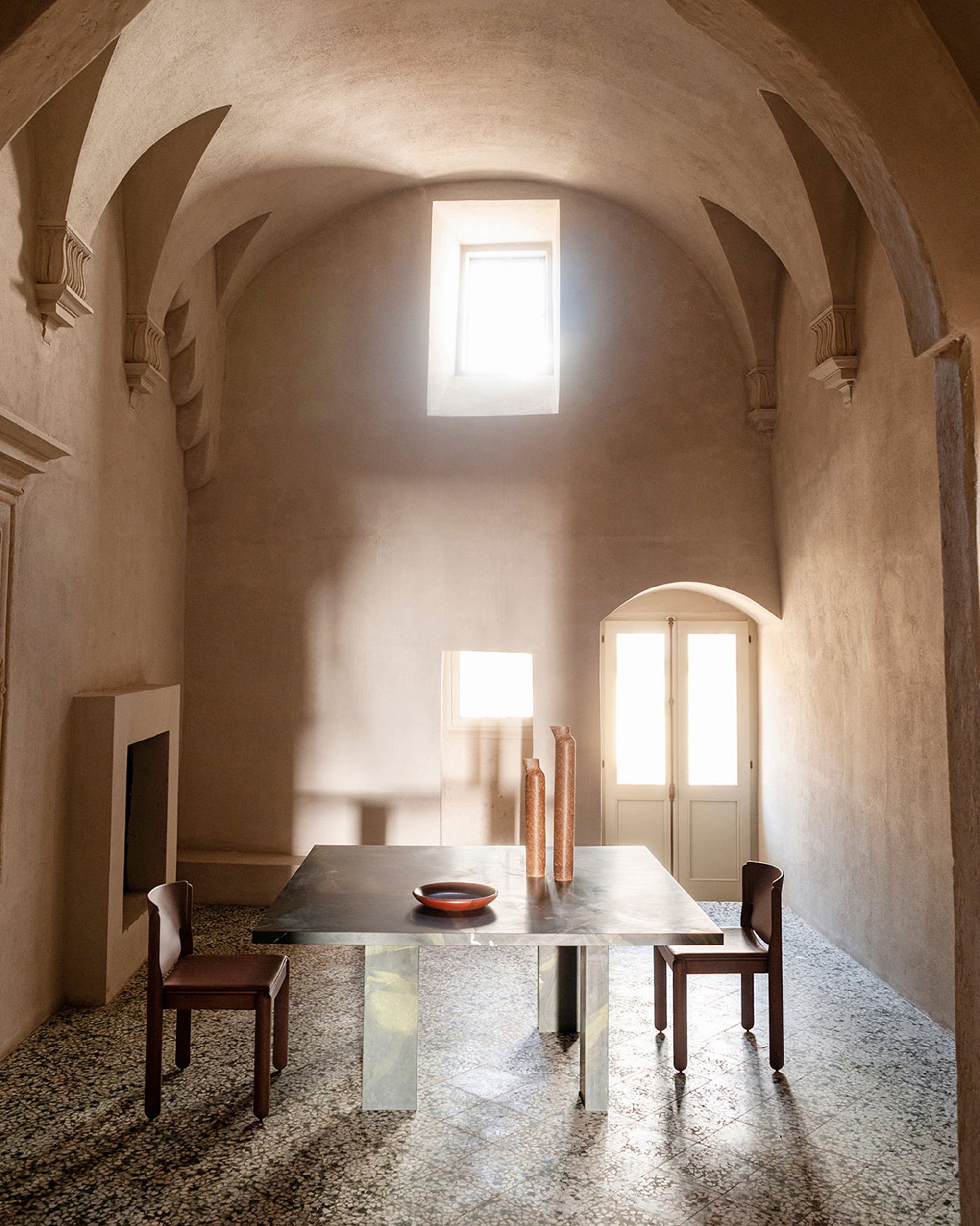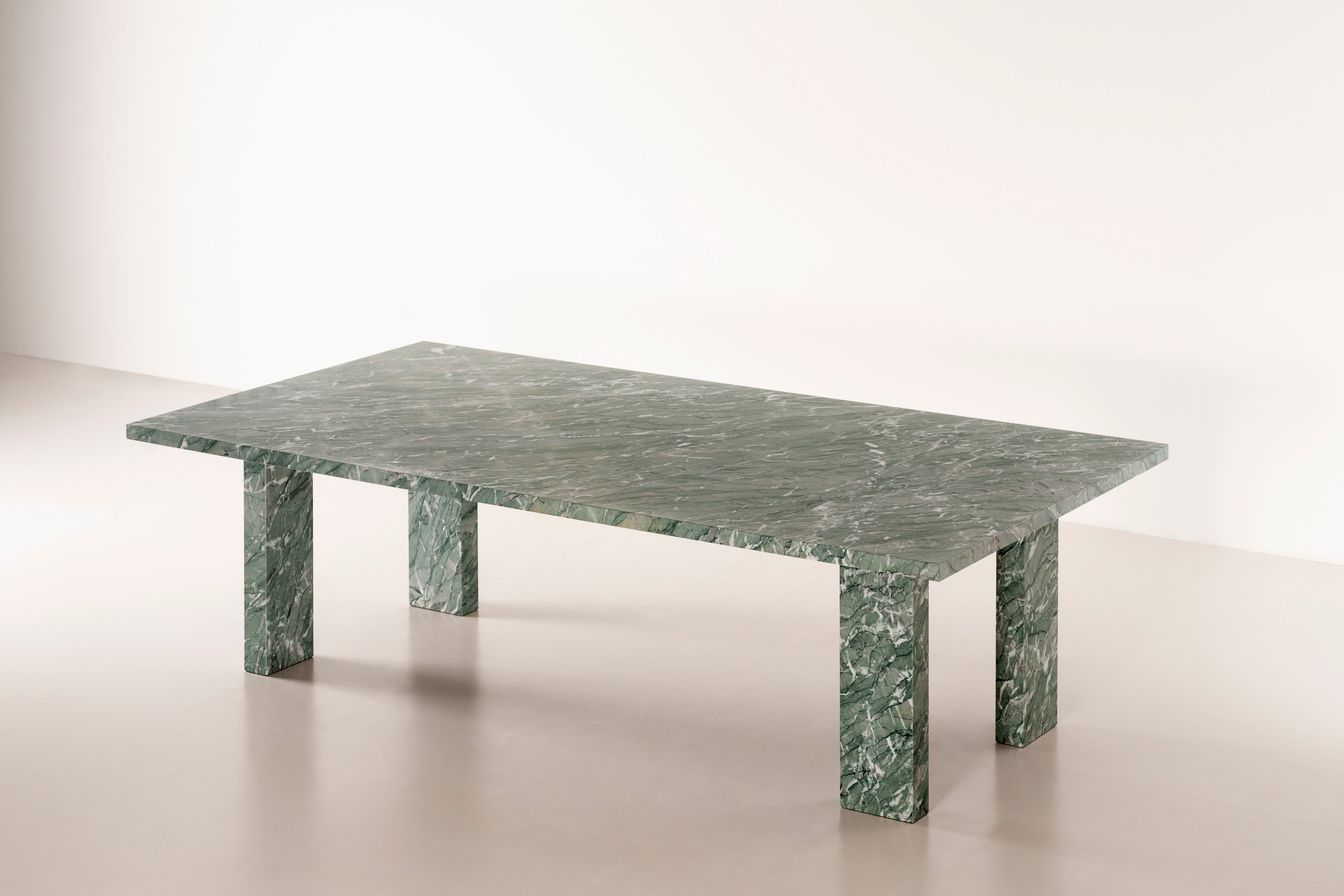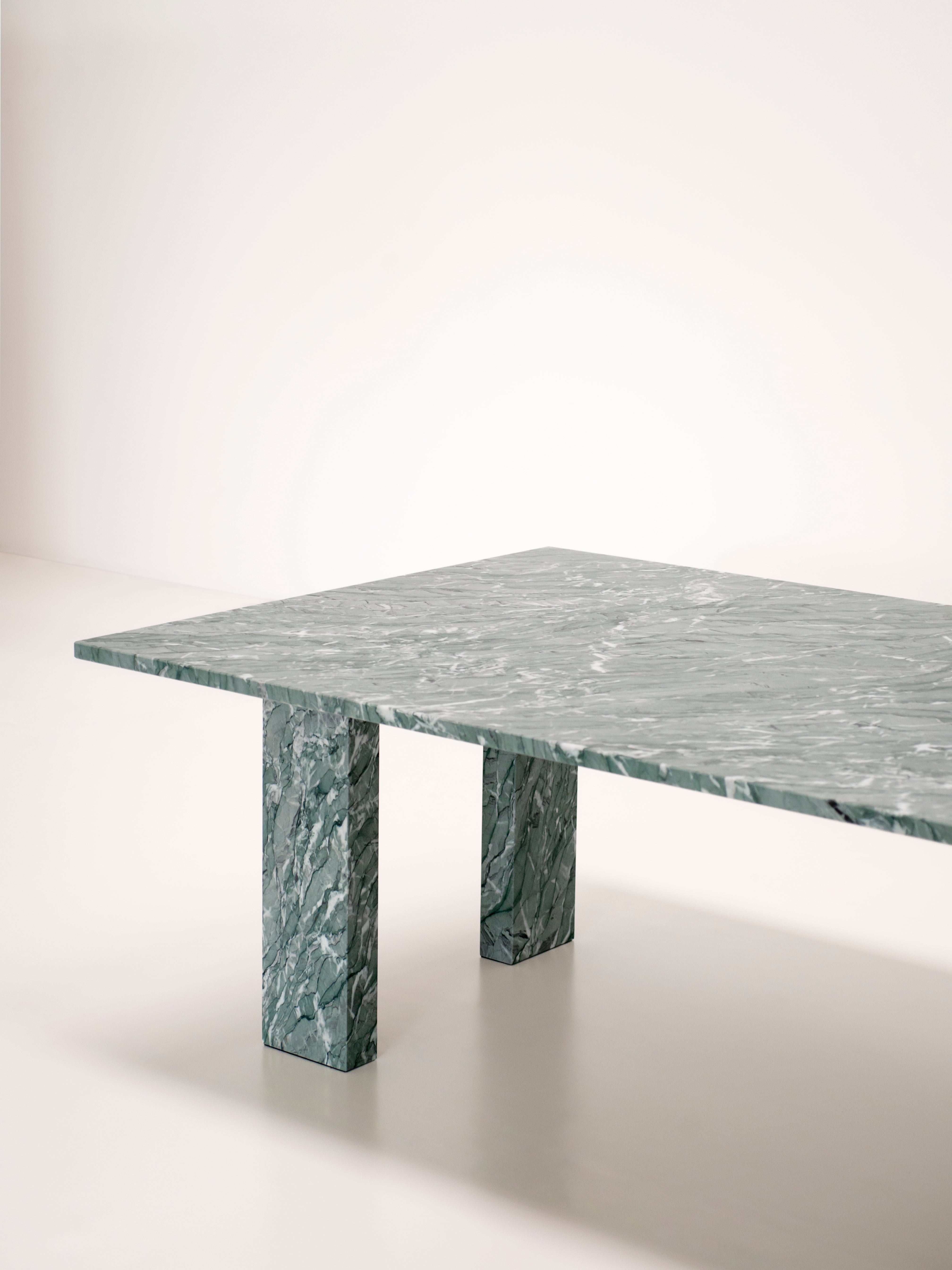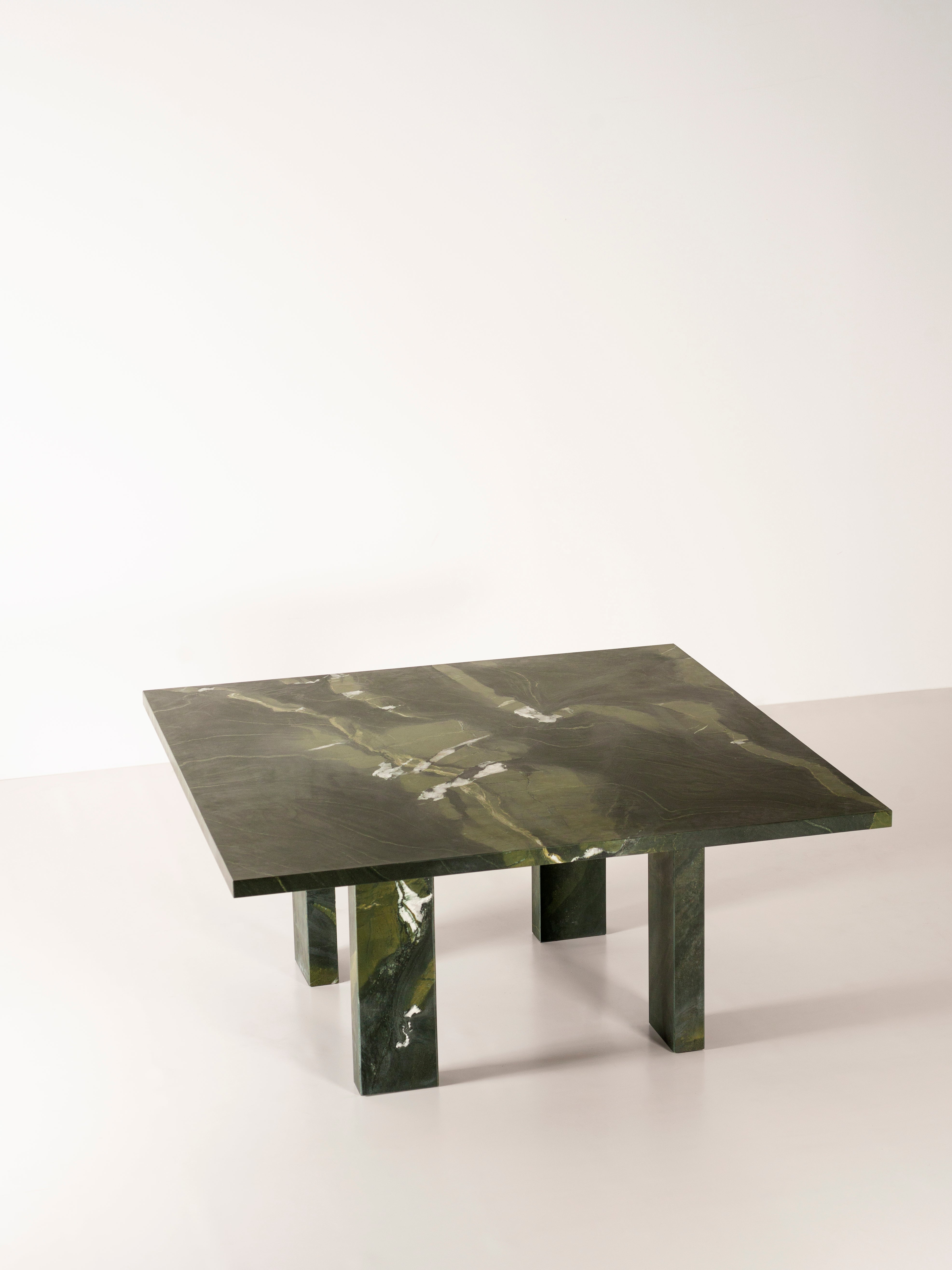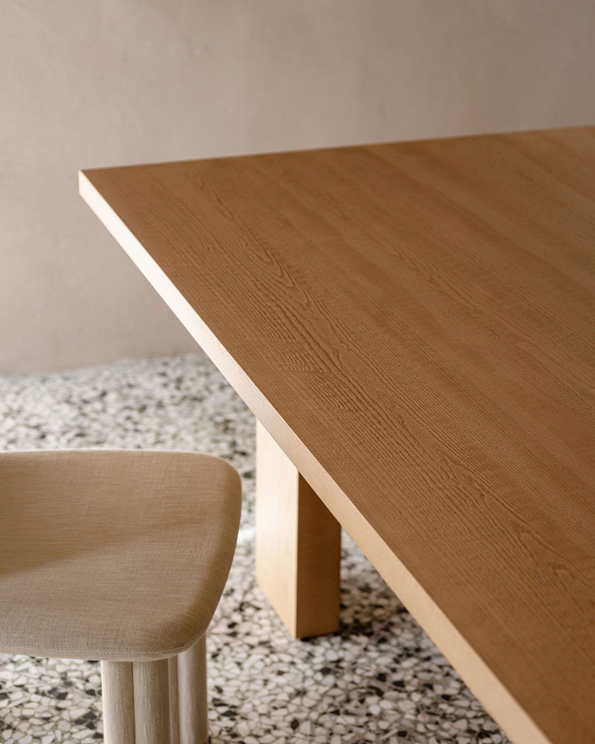 Enkelt og monumentalt, Clockwise er et klassiskt spisebord med en vri med benas posisjon og vekslingen mellom deres plassering i hjørnene bordplaten. Født fra det første samarbeidet mellom Tacchini og designer Michael Anastassiades, er dette et bord med en viktig tilstedeværelse, som samtidig fremkaller en følelse av letthet i bena som jager hverandre nesten dansende, roterende rundt en koreografi som antyder den rette dansen trinn for å oppleve det fullt ut. I ulike rytmer, etter metaforen til en gest, kan bevegelsene og aktivitetene som foregår rundt bordet dermed fortelles fra tid til annen uventet, like flytende og uformelle som miljøene selve bordet kan plasseres i.