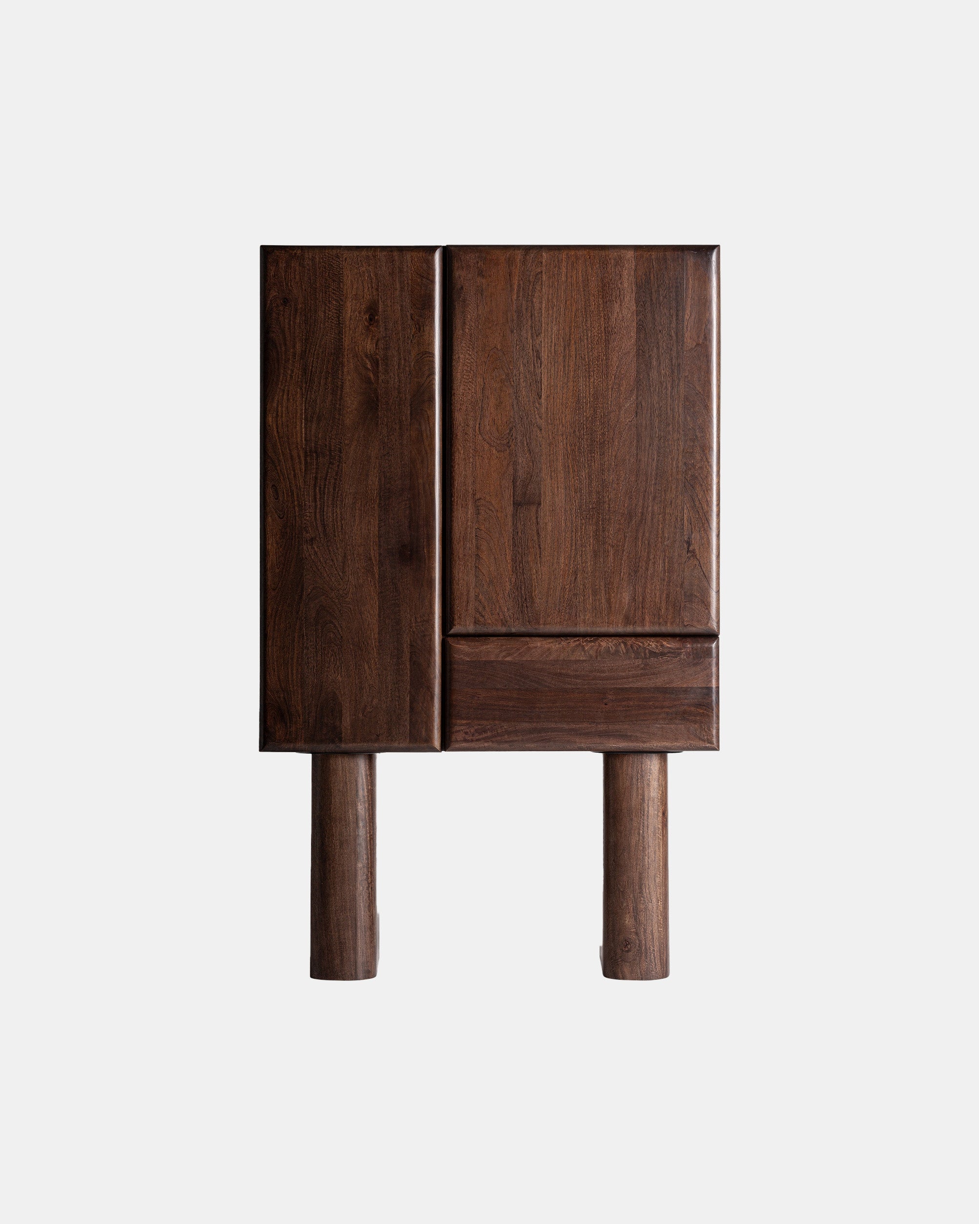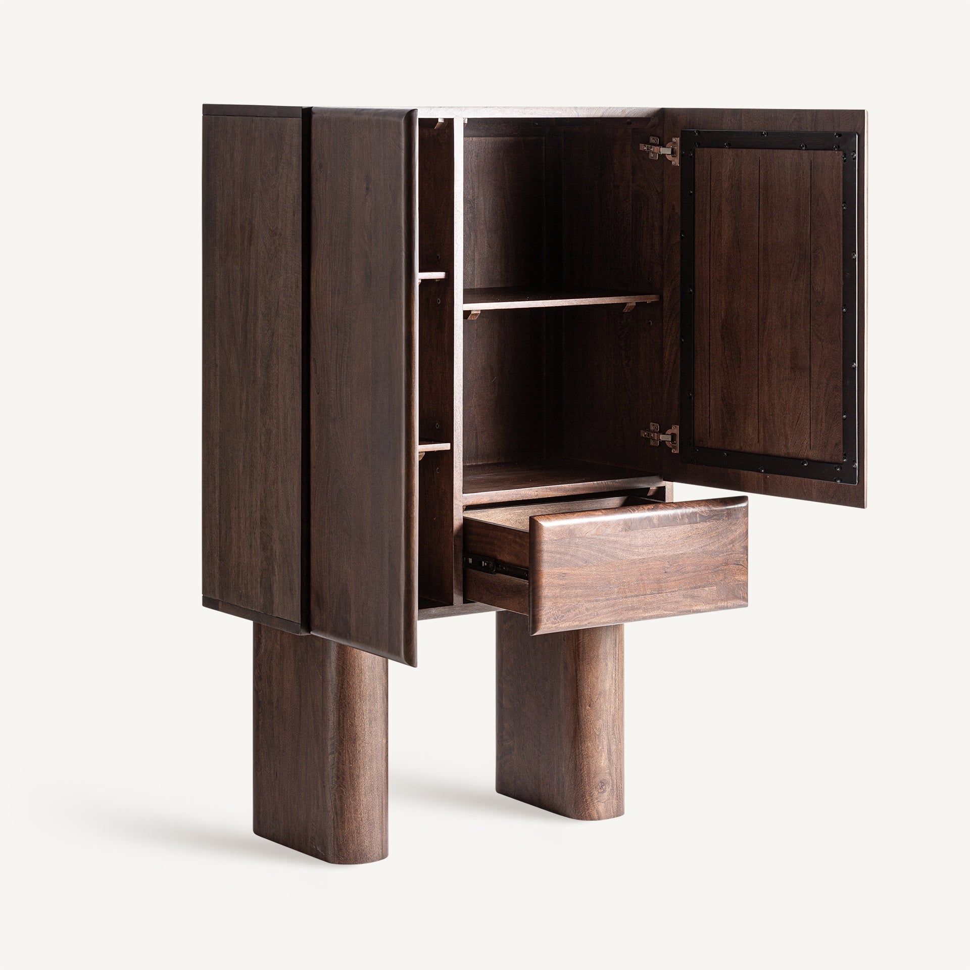 Bring et snev av eleganse og raffinement til interiøret ditt med Craigh skap i nydelig mangotre. Dette eksepsjonelle møbelet kombinerer sofistikert design med materialer av høy kvalitet, og gir både praktisk oppbevaringsplass og et fremtredende dekorativt element.