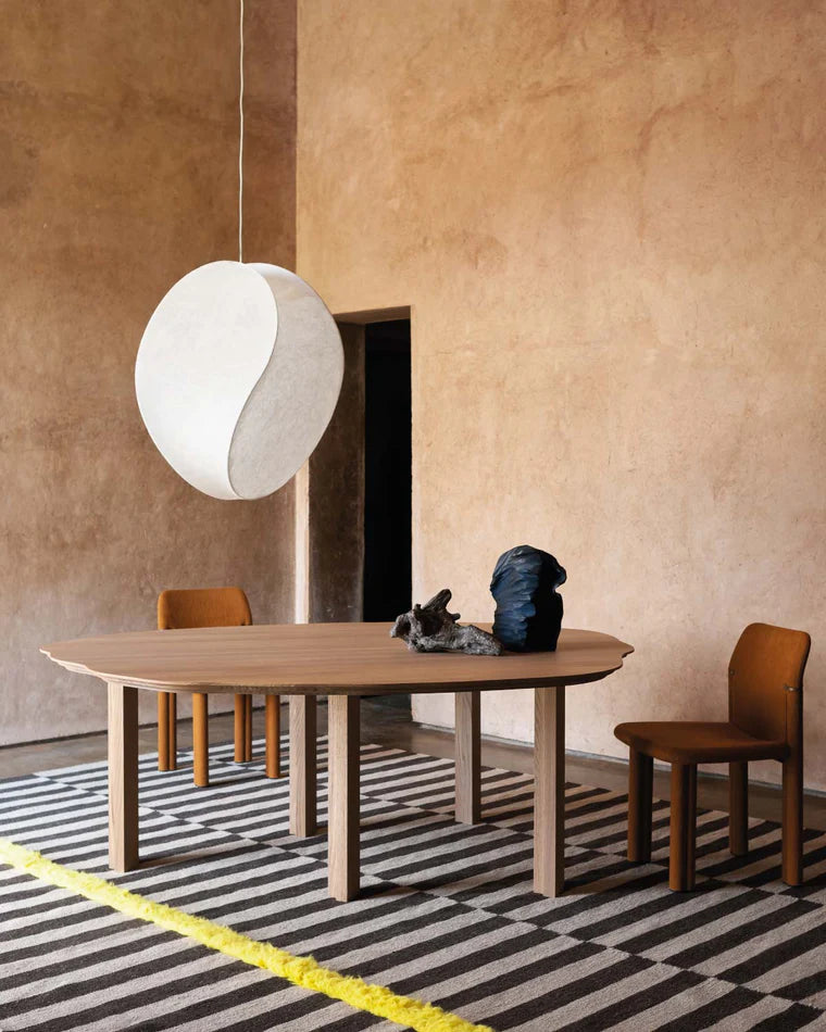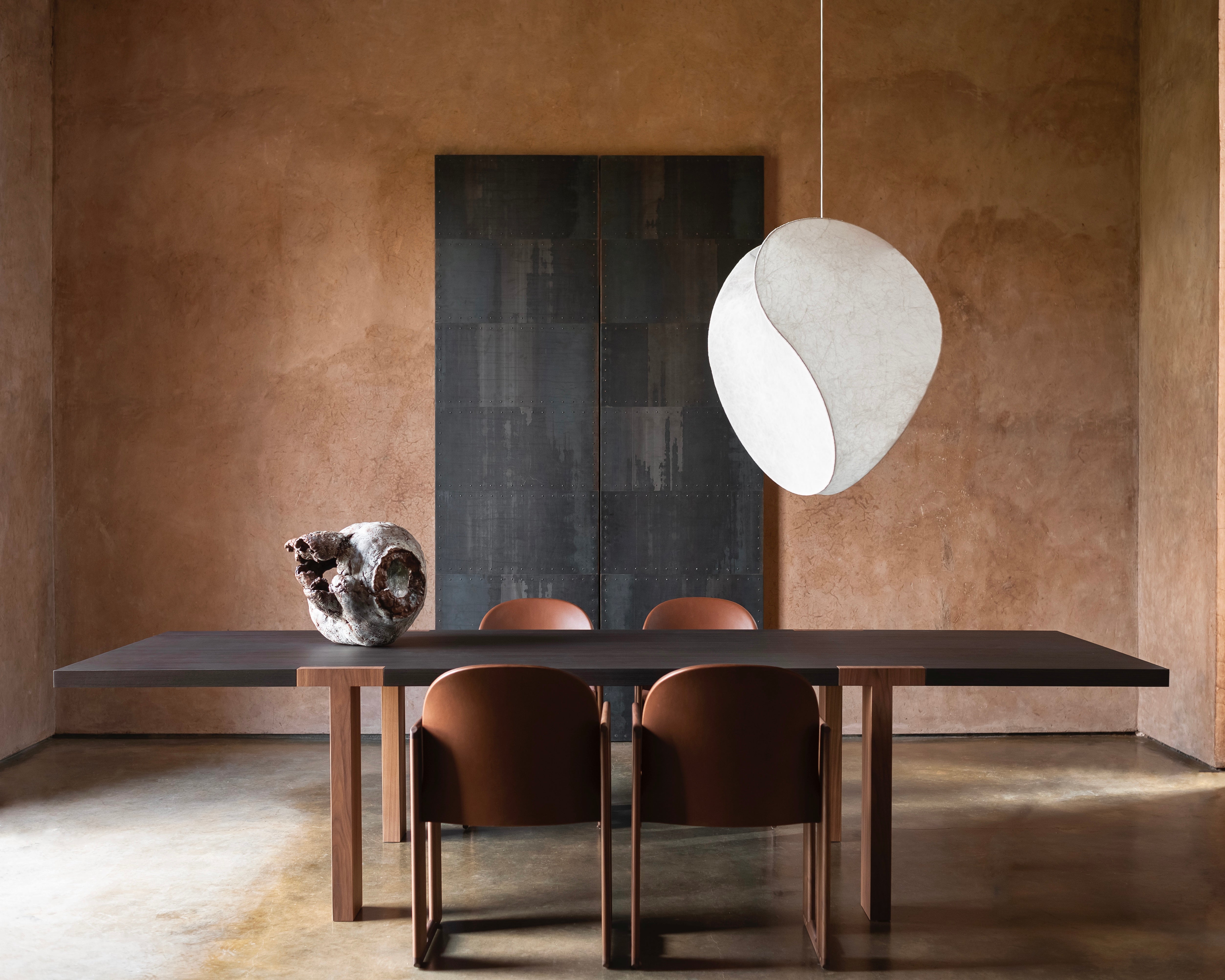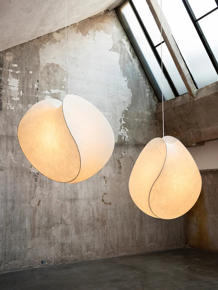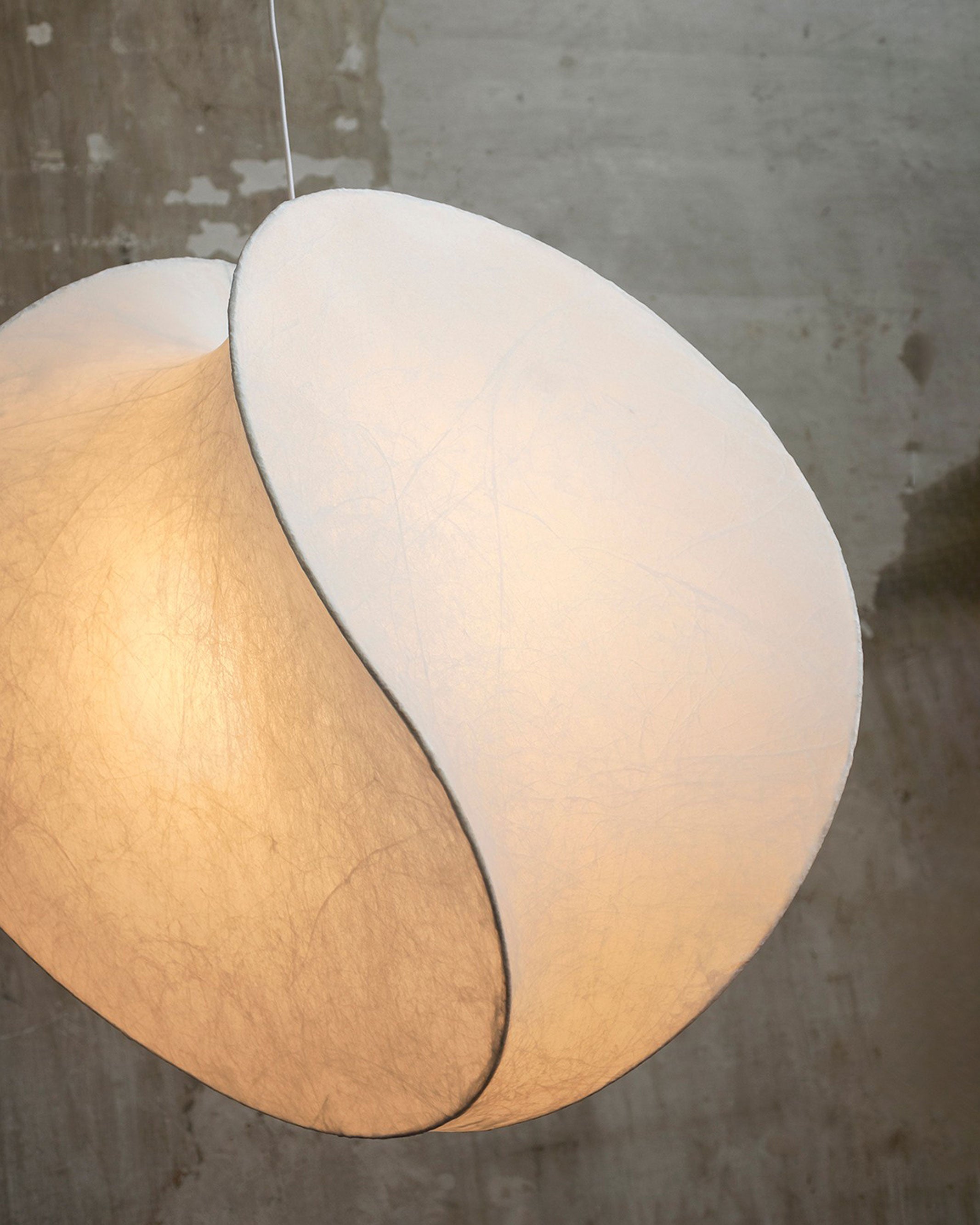 Et tett, nesten mystisk lys filtreres gjennom myke og omsluttende materialer. Lysstyrke og transparenter svinger, og skaper repetisjoner av lys og skygger, faste stoffer og tomrom. Inspirert av Object Art og spesielt av verkene til Enrico Castellani, forsterker disse elegante glassfiberskulpturene – Solstice applique – og Equinox pphengslampe – den sterke forståelsen mellom Tacchini og Studiopepe.
