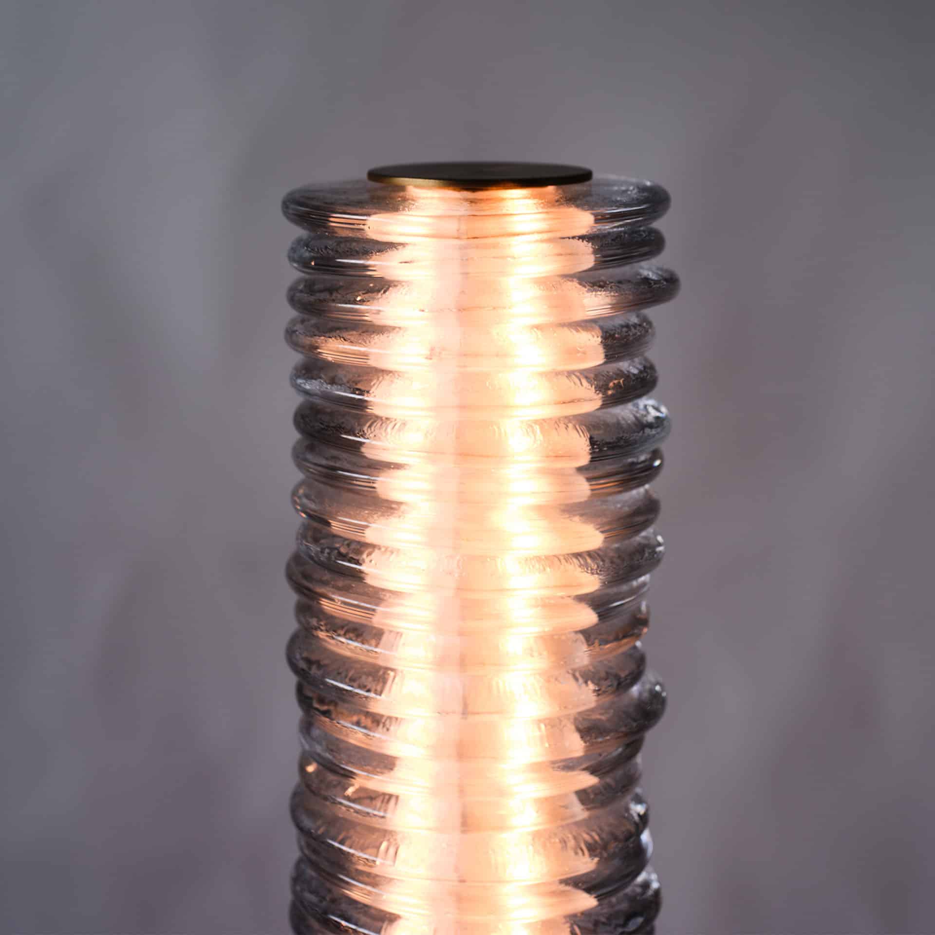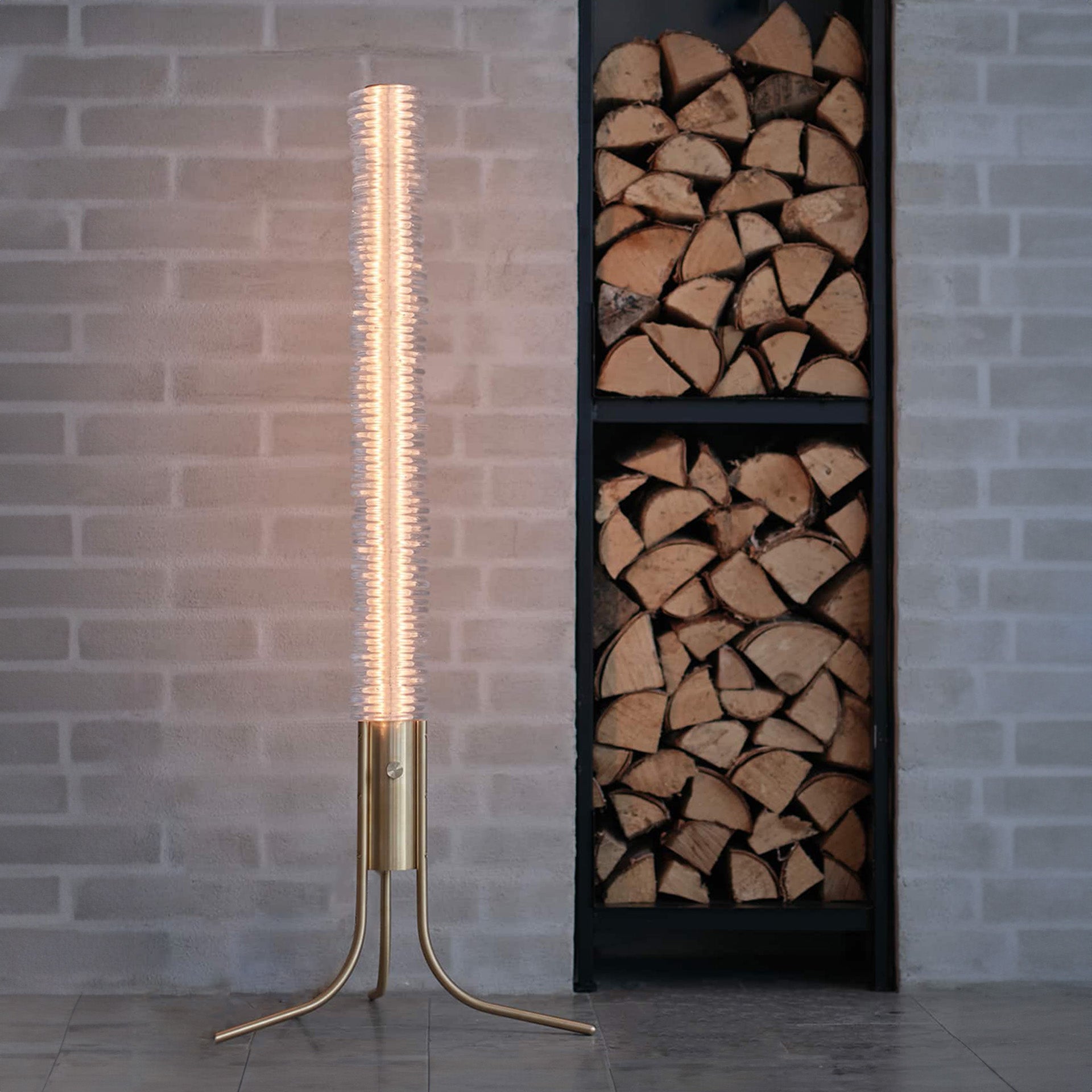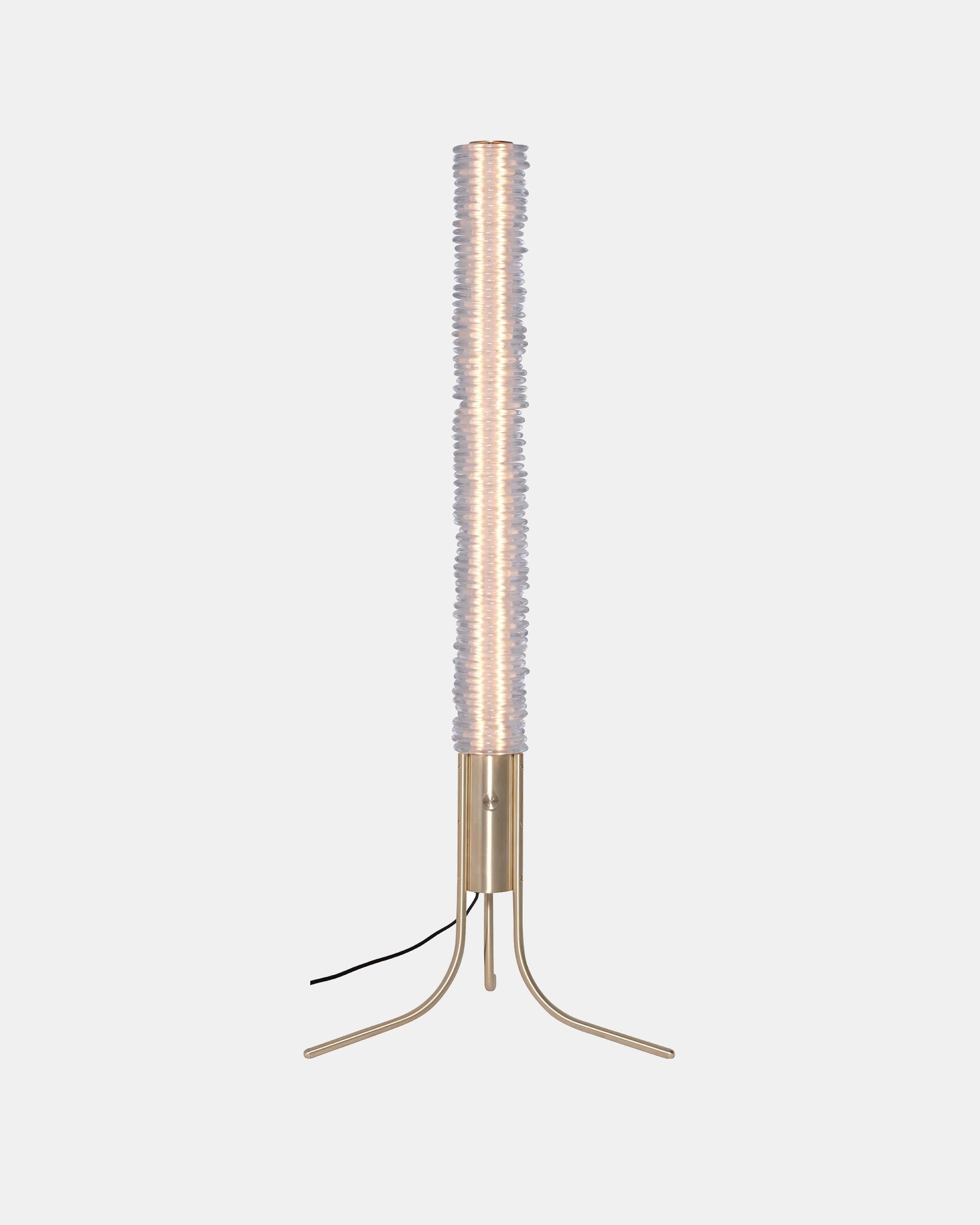 Håndlaget i Sverige, er de 82 glassplatene et bevis på eksepsjonelt håndverk, og skaper et lysende samspill av lys og tekstur. Plassert på en elegant messingbase med integrert dimmer, blander Erie funksjonalitet med kunstnerskap.