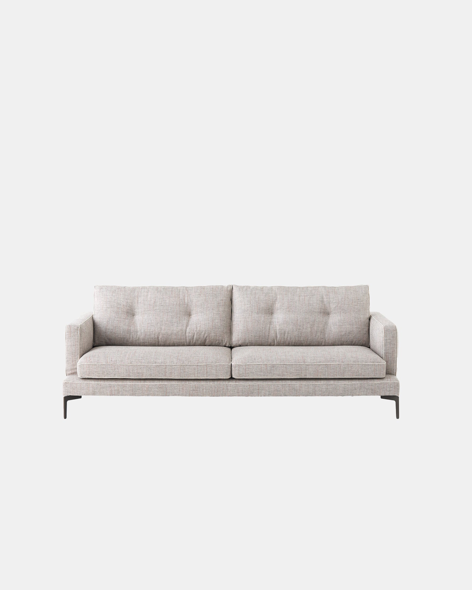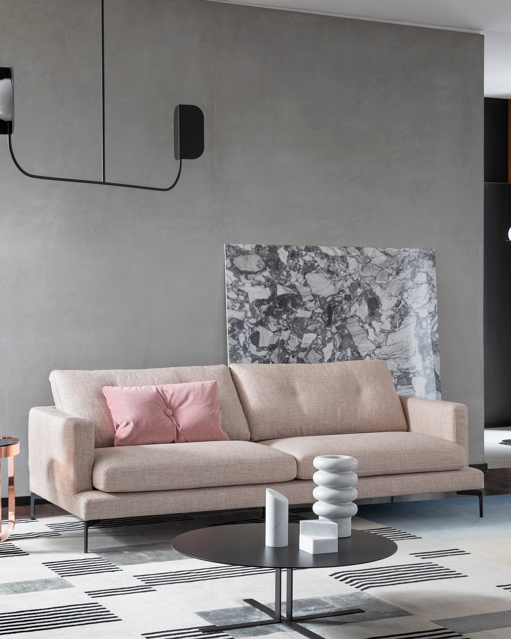 Essentiel-sofaen utstråler enkel eleganse og komfortabel ergonomi, og forener italiensk eleganse med nordiske trekk i en harmonisk helhet. Dette designet viser Sabas kjente oppmerksomhet på detaljer, som ses i den quiltede ryggputen og grosgrain-kantingen. Sofaen har rene, tilpassbare linjer, og ryggputene på 67 cm og 77 cm kan også fås i en høyere versjon med støttevalser. Essentiel-sofaen tilbys i størrelsene: 154, 190, 220 og 250 cm.