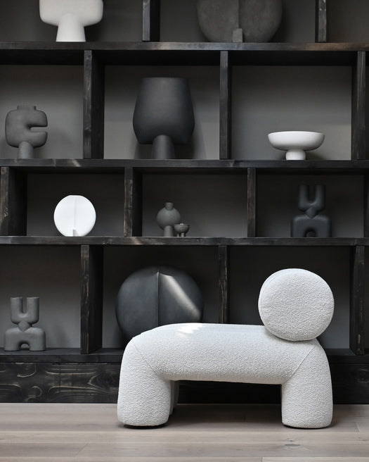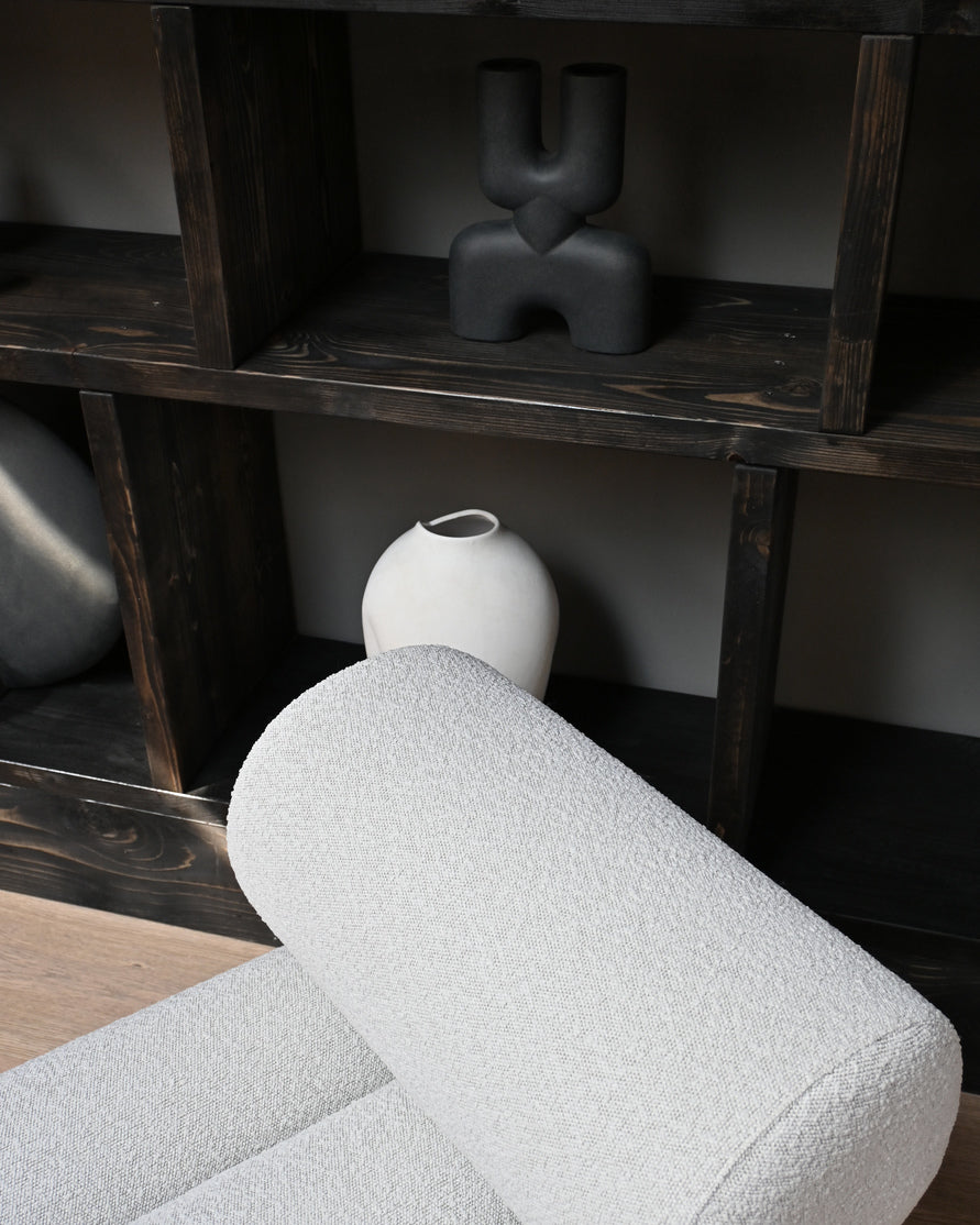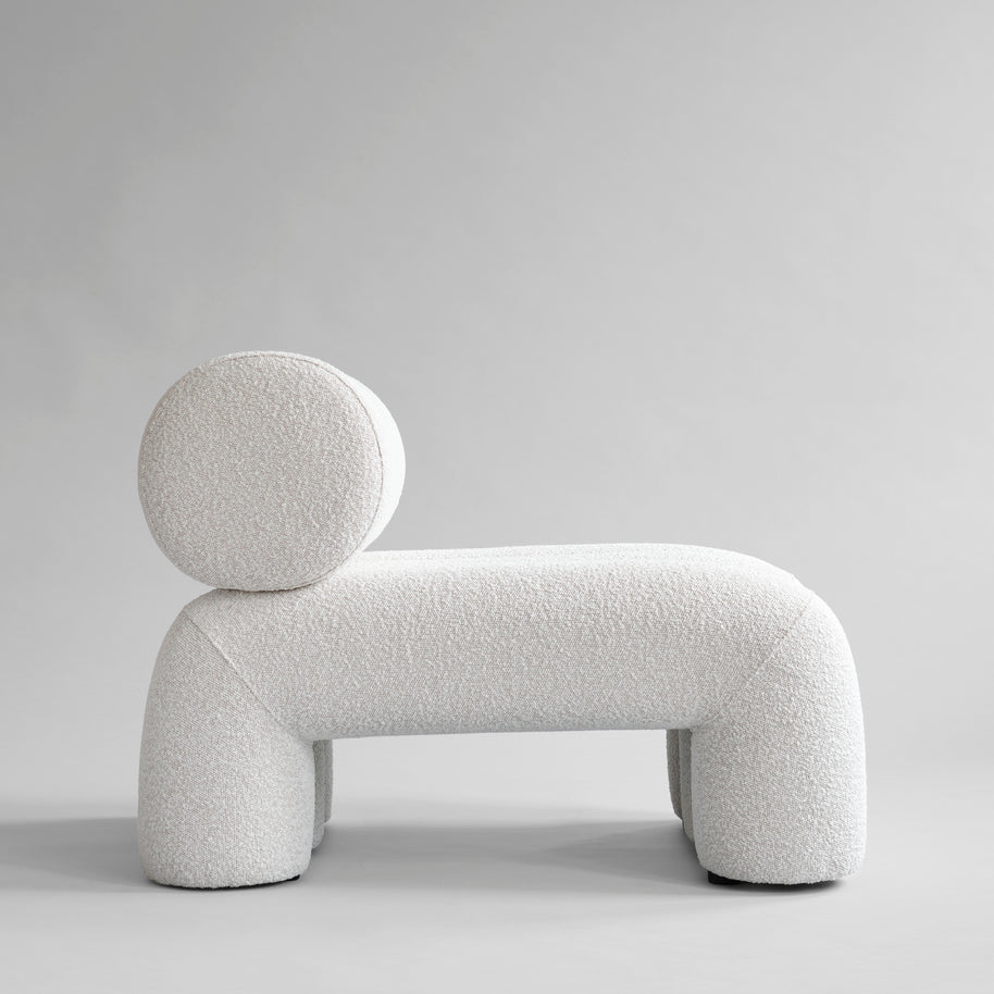 Foku kommer i Off-White Bouclé og et Taupe-stoff fra Sunproof. Taupe Sunproof-stoffet er egnet for både innendørs og utendørs bruk. Stoffet er svært motstandsdyktig mot flekker, vann og sollys. Samt veldig lett å rengjøre.