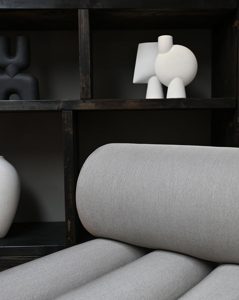 Foku kommer i Off-White Bouclé og et Taupe-stoff fra Sunproof. Taupe Sunproof-stoffet er egnet for både innendørs og utendørs bruk. Stoffet er svært motstandsdyktig mot flekker, vann og sollys. Samt veldig lett å rengjøre.