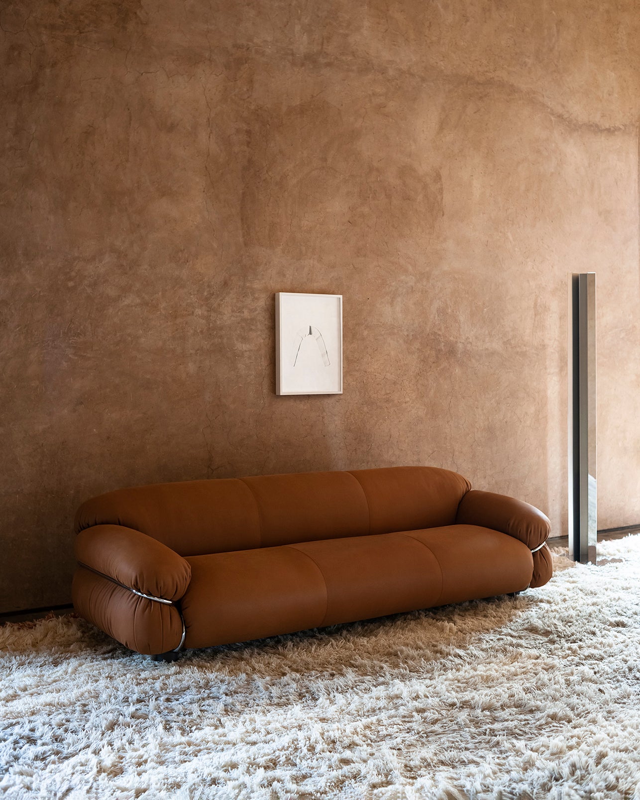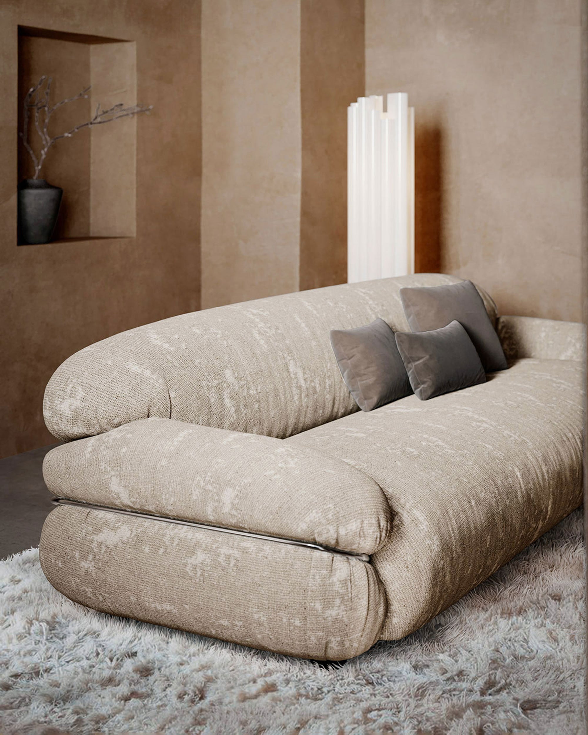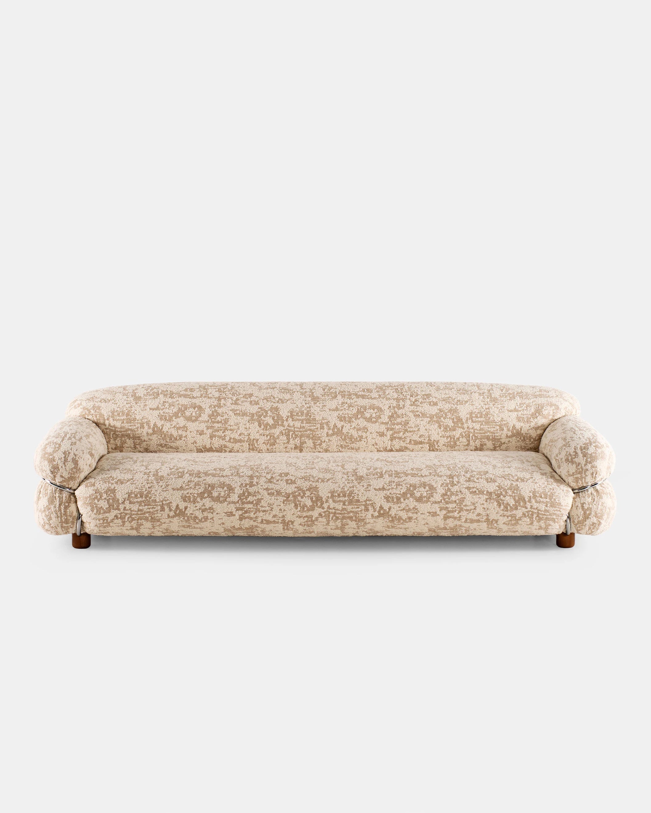 Sesann-sofaen fra Tacchini gjenoppstår i nye dimensjoner for å tilby større komfort og sensualitet med et dypt og innbydende sete som ytterligere fremhever de viktige volumene til denne historiske sofaen. Sofaen har myke, koselige former som vekker følelser av varme og sensualitet. Formen fremheves av den rørformede metallrammen, som fungerer som en arkitektonisk struktur som omslutter, holder på og fremhever polstringen. Sesann dominerer rommet med sine dristige volum og elegante, sofistikerte design.