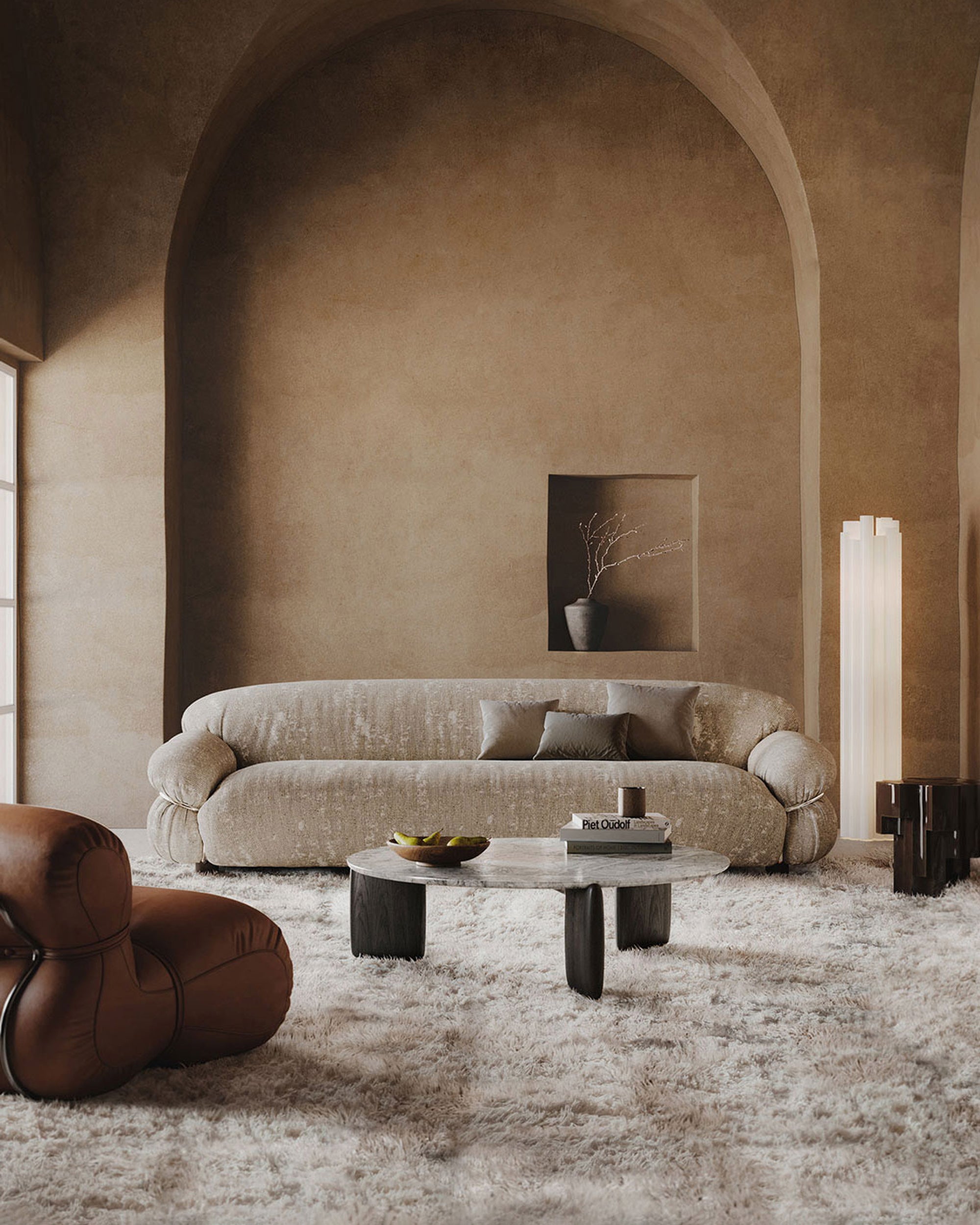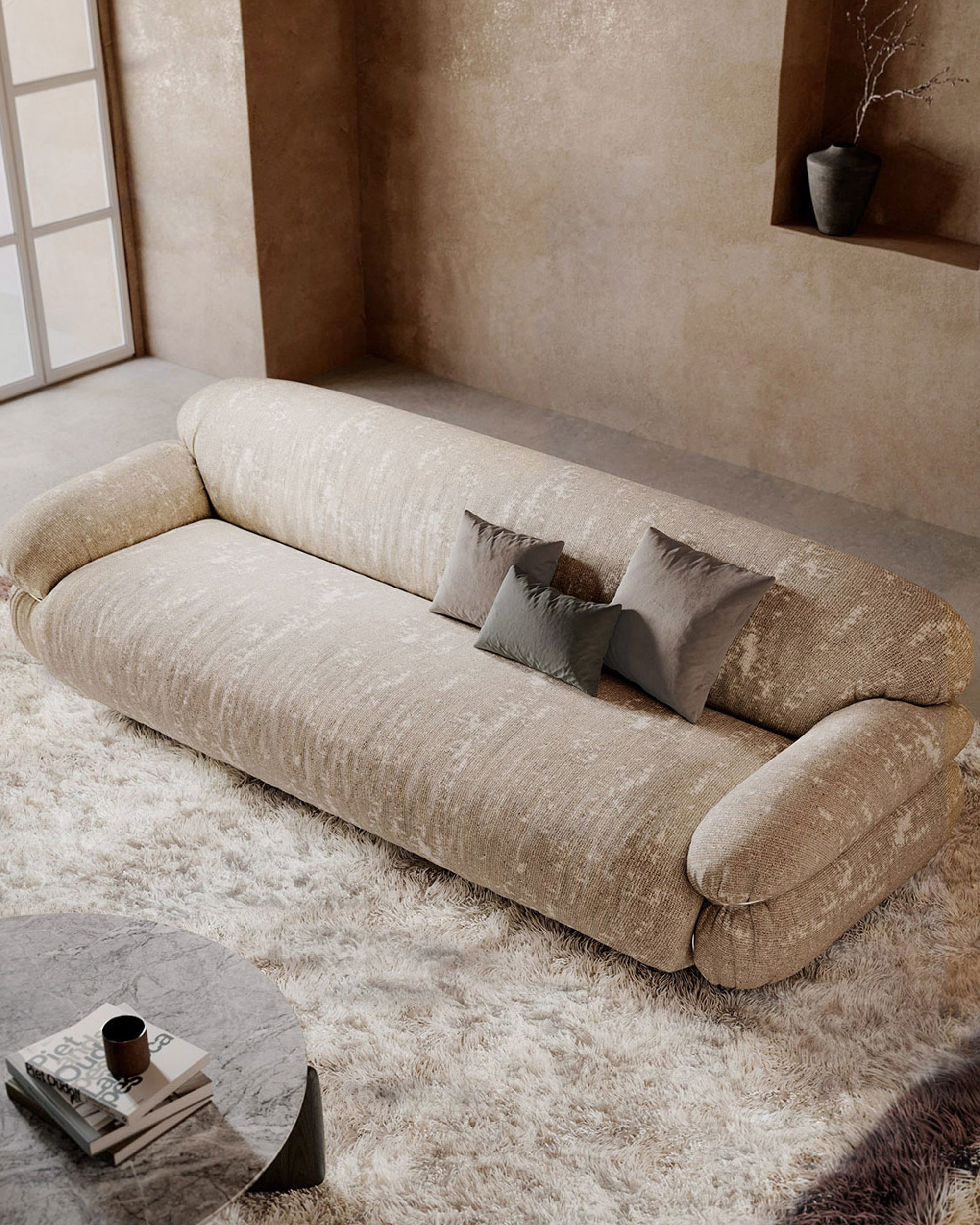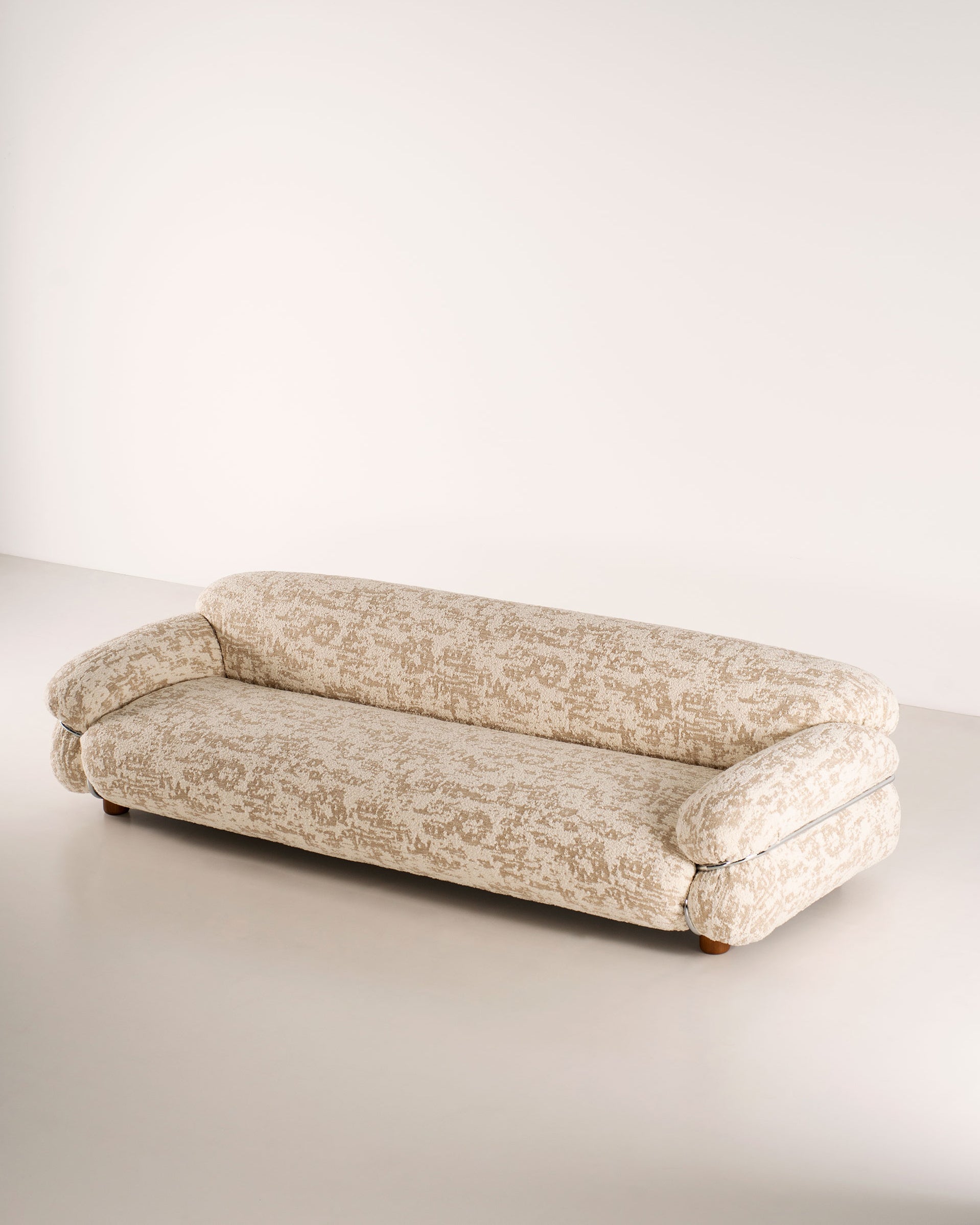 Sesann-sofaen fra Tacchini gjenoppstår i nye dimensjoner for å tilby større komfort og sensualitet med et dypt og innbydende sete som ytterligere fremhever de viktige volumene til denne historiske sofaen. Sofaen har myke, koselige former som vekker følelser av varme og sensualitet. Formen fremheves av den rørformede metallrammen, som fungerer som en arkitektonisk struktur som omslutter, holder på og fremhever polstringen. Sesann dominerer rommet med sine dristige volum og elegante, sofistikerte design.