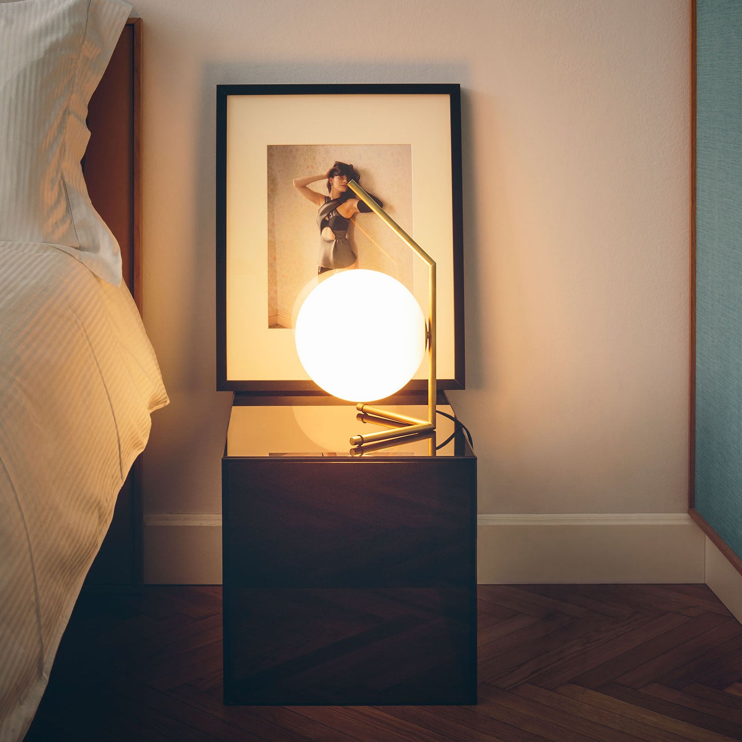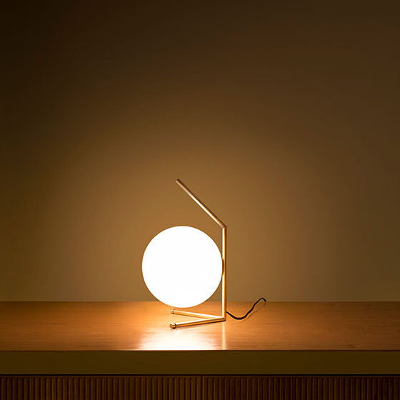 IC Lights T1 Low er en bordlampe designet i 2014 av Michael Anastassiades for italienske Flos. Lampen er den lavere varianten av IC Lights T1 bordlampe, som er en del av IC Lights lampekolleksjon. Lampen er laget av en håndblåst kule av opalglass. Armen er laget av messing eller stål og kommer totalt i tre utførelser. Velg mellom børstet messing, krom eller svart finish. IC T1 sprer en diffus og myk glød. Ideell for bruk i hjemmet eller i offentlige miljøer.