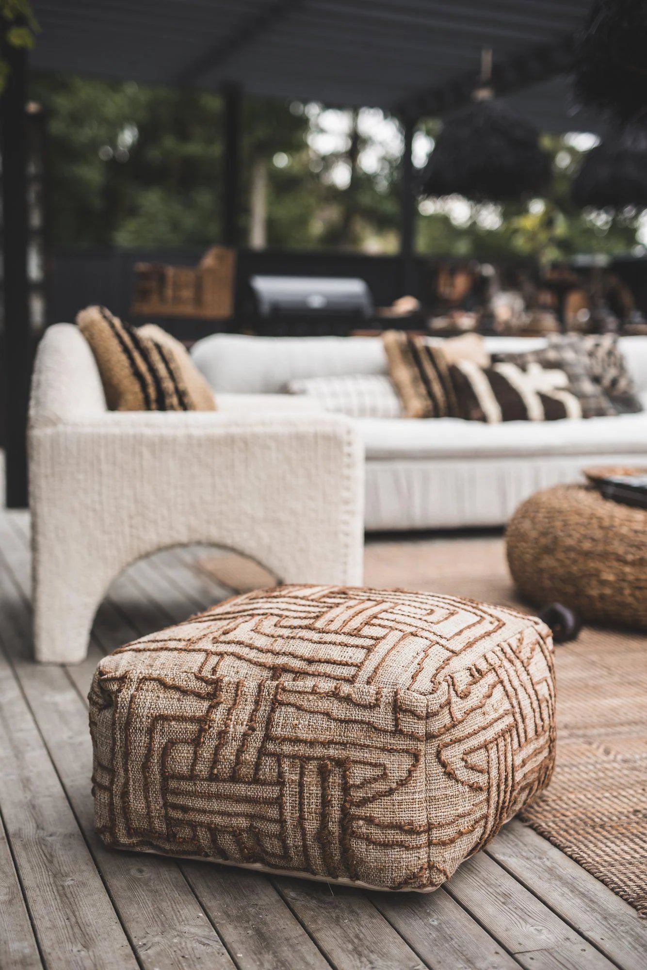 Denne stilige jutepuffen er som et kunstverk for hjemmet ditt - med sitt spennende og abstrakte mønster blir Kiana-puffen i størrelsen 60x60x30 cm en iøynefallende interiørdetalj i hjemmet ditt. Puffens jordfarger og materialer sprer en ro til omgivelsene. Det er som å få en dose naturlig skjønnhet og harmoni rett i stua eller soverommet. Men denne puffen er ikke bare vakker, den er også praktisk! Den fungerer perfekt som et ekstra sete når du har gjester, eller hvorfor ikke som fotstøtte når du vil slappe av og lene deg tilbake.