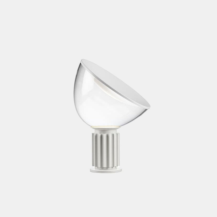 Taccia er en bordlampe designet av brødrene Achille og Pier Castiglioni i 1962, og den produseres av italienske Flos. Lampen er laget av aluminium og glass og gir et indirekte reflekterende lys. Velg mellom fargene svart, eloksert bronse eller eloksert aluminium. Taccia kan med fordel plasseres både på et skrivebord eller på gulvet, takket være størrelsen. Taccia er tilgjengelig i både liten og stor utgave.