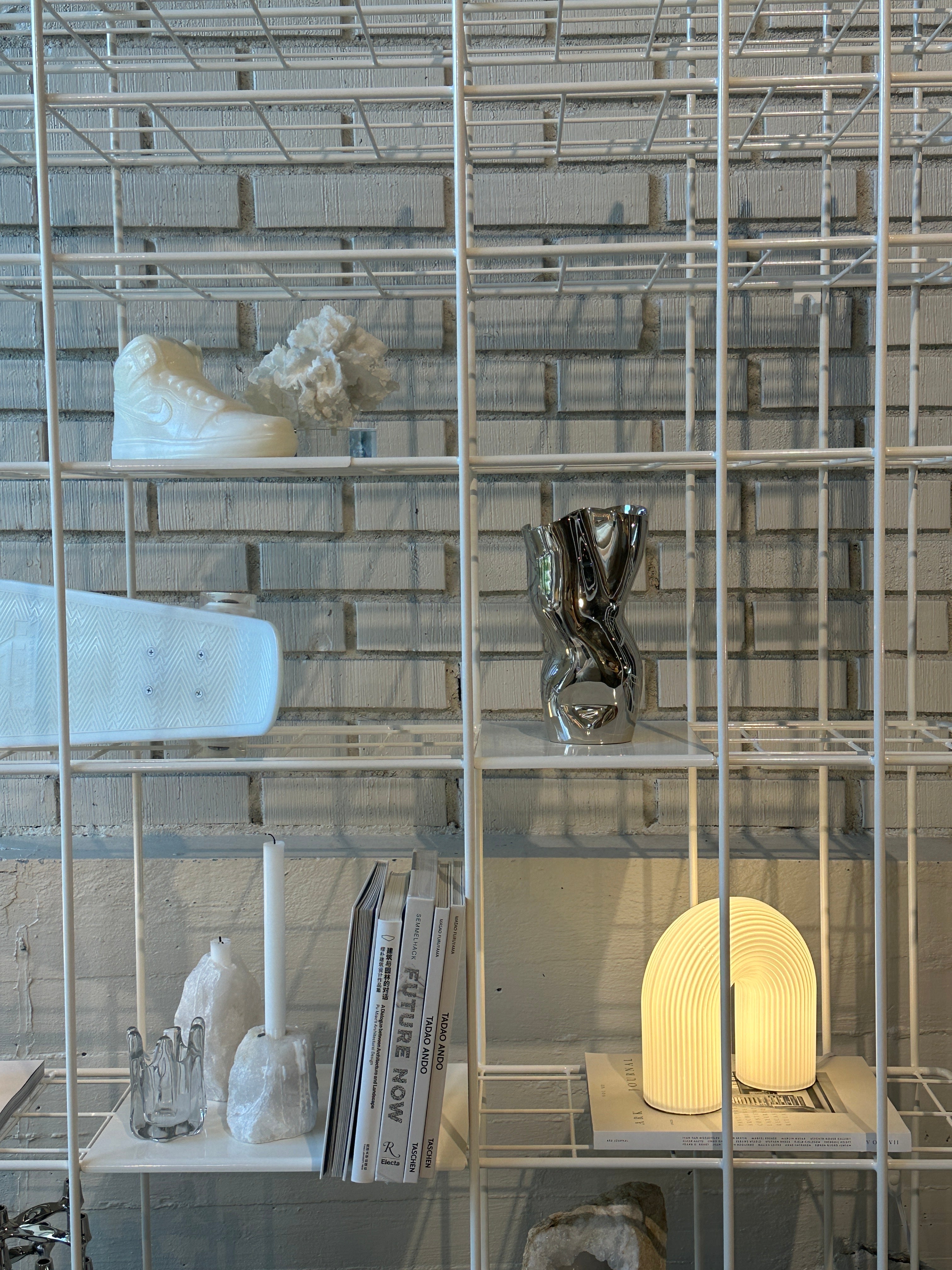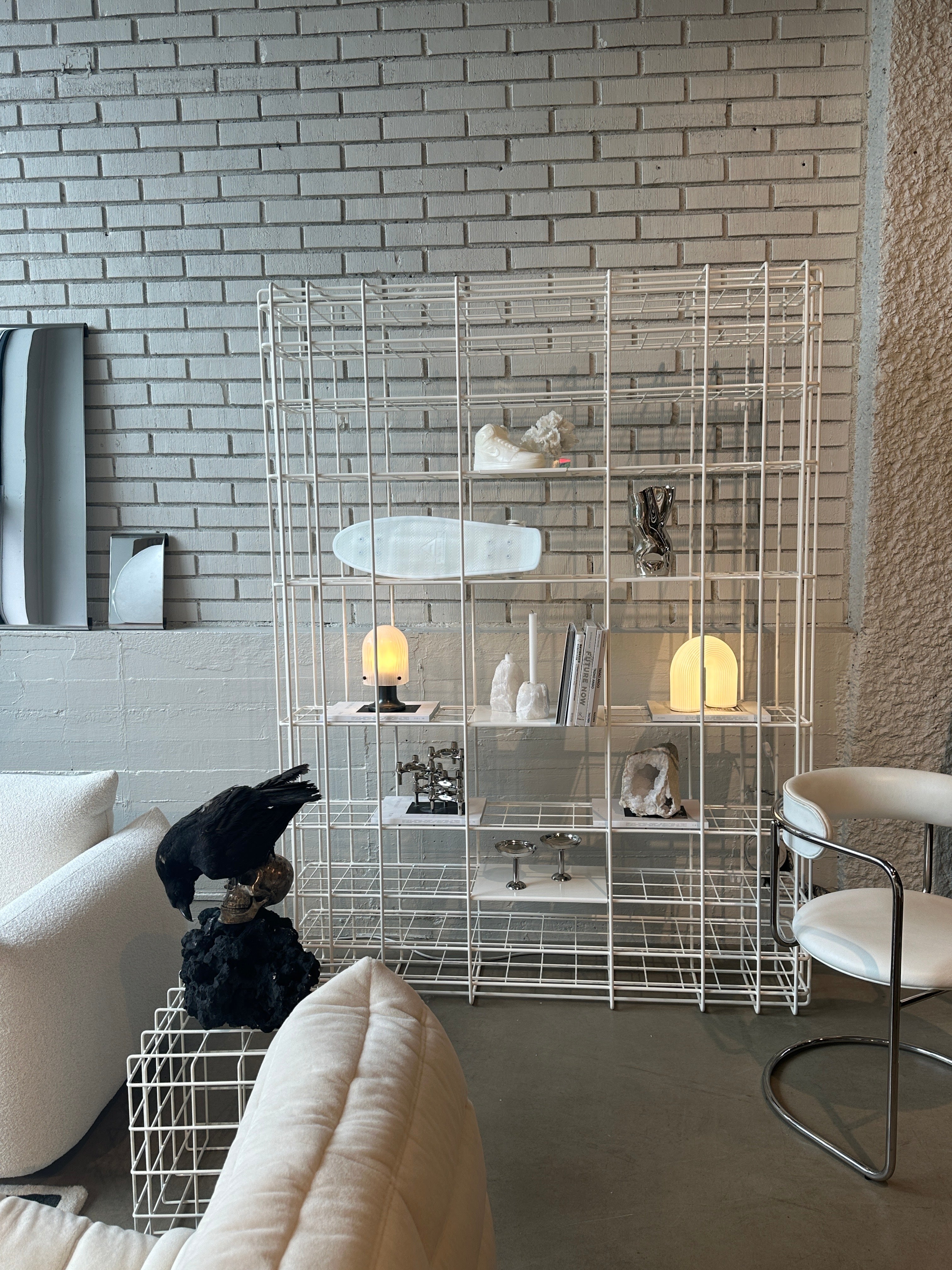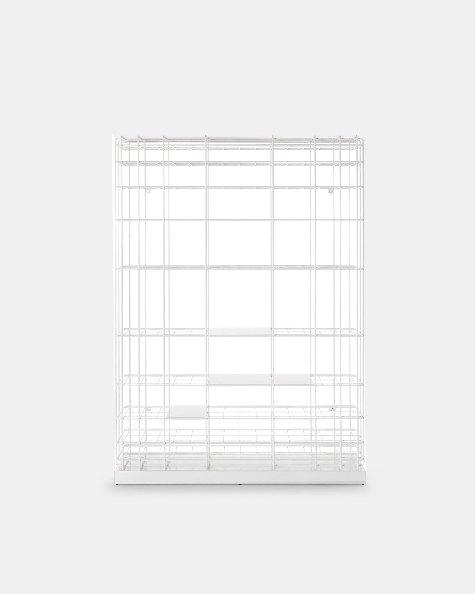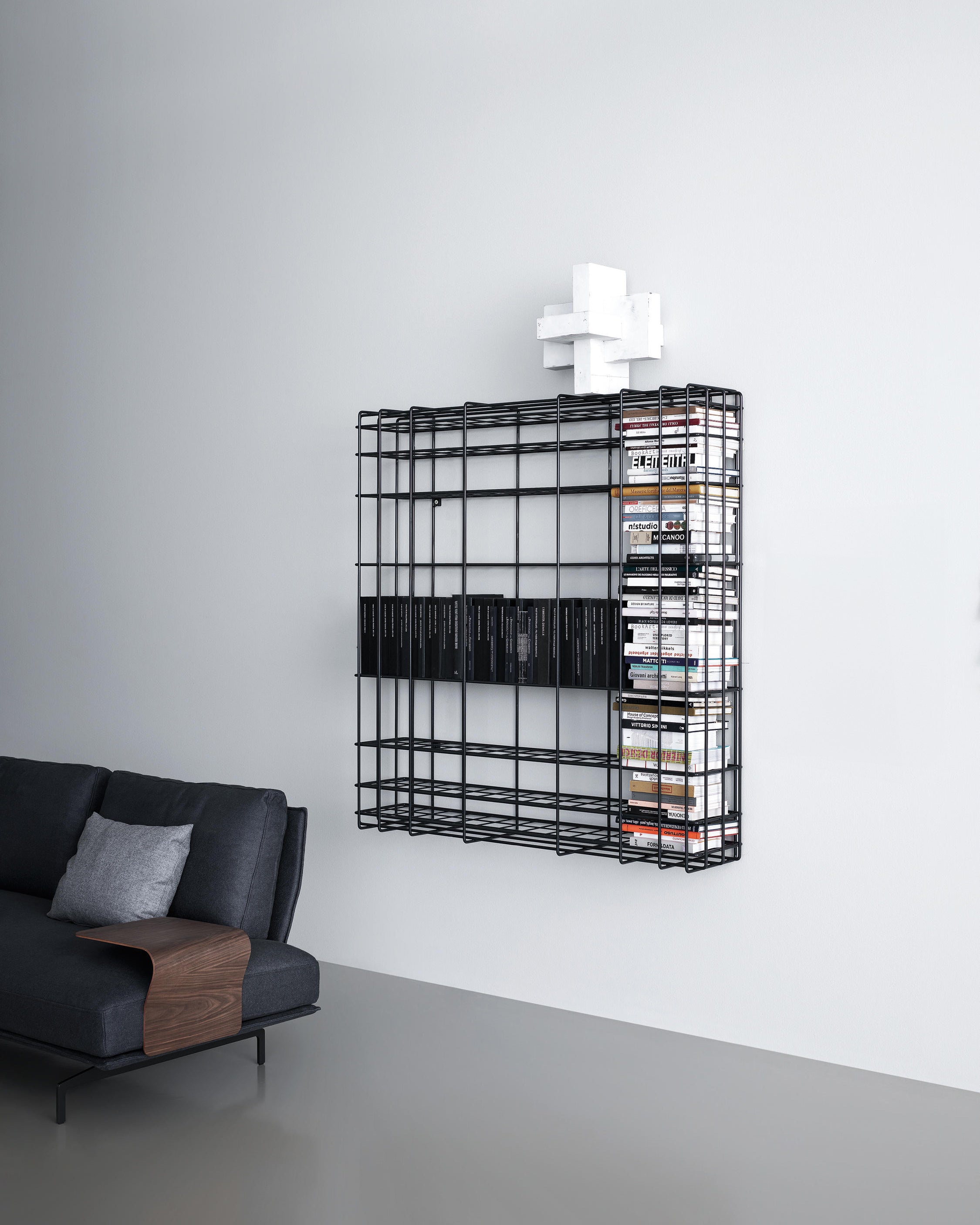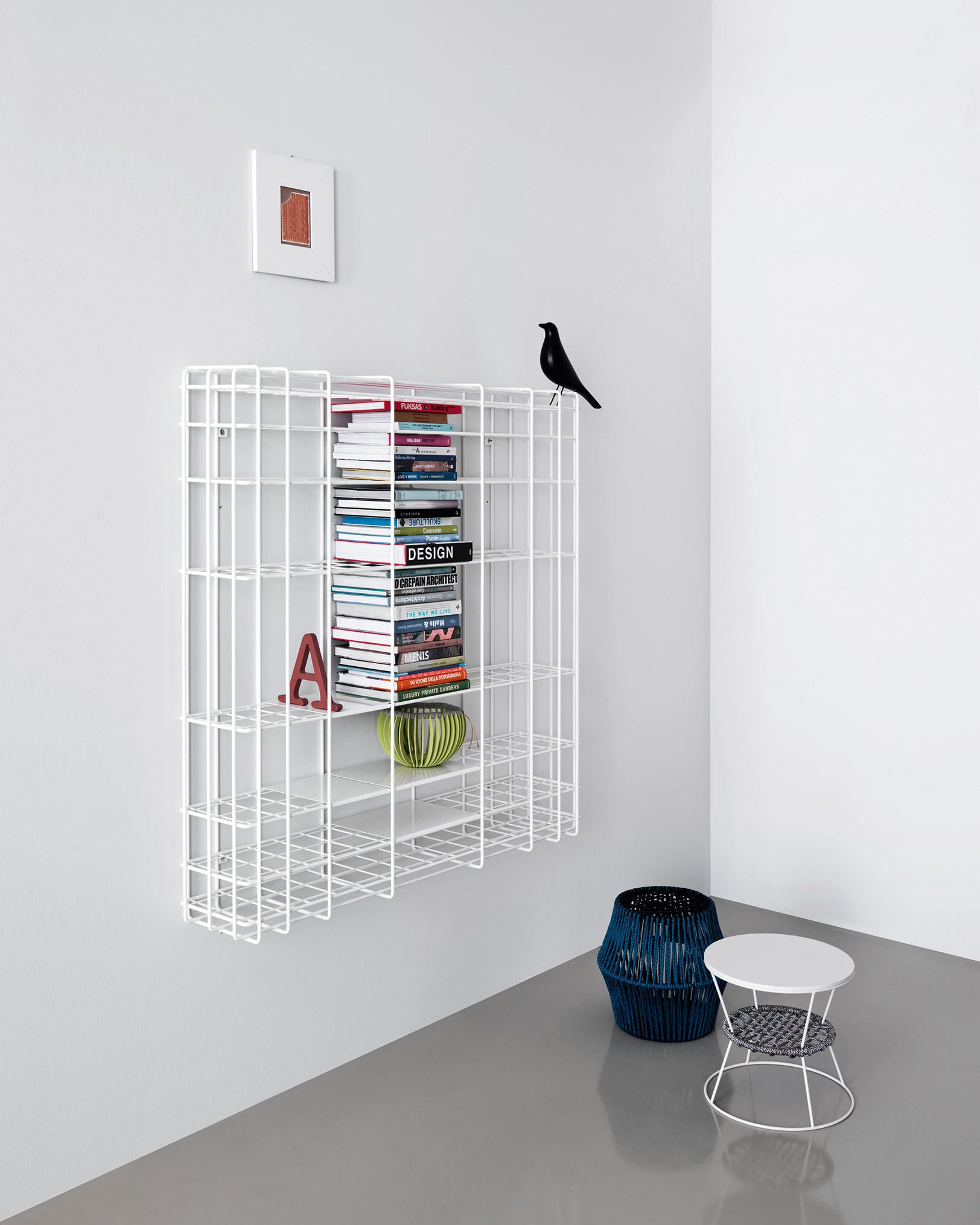 Leyva-bordet er laget av malt jernstang sveiset inn i et gitter av ensartede firkanter. Sofistikert og lite påtrengende dekorerer Leyva stuen med et lett, moderne preg. Leyva-kolleksjonen inkluderer også en bokhylle med gitterverk med samme design, en ren og essensiell silhuett. Dens pilaktige minimale konturer fremkaller en luftig letthet. Perfekt for moderne omgivelser og en sømløs løsning for industrielle omgivelser, den kan også gi en uventet vri på mer klassisk innredning.