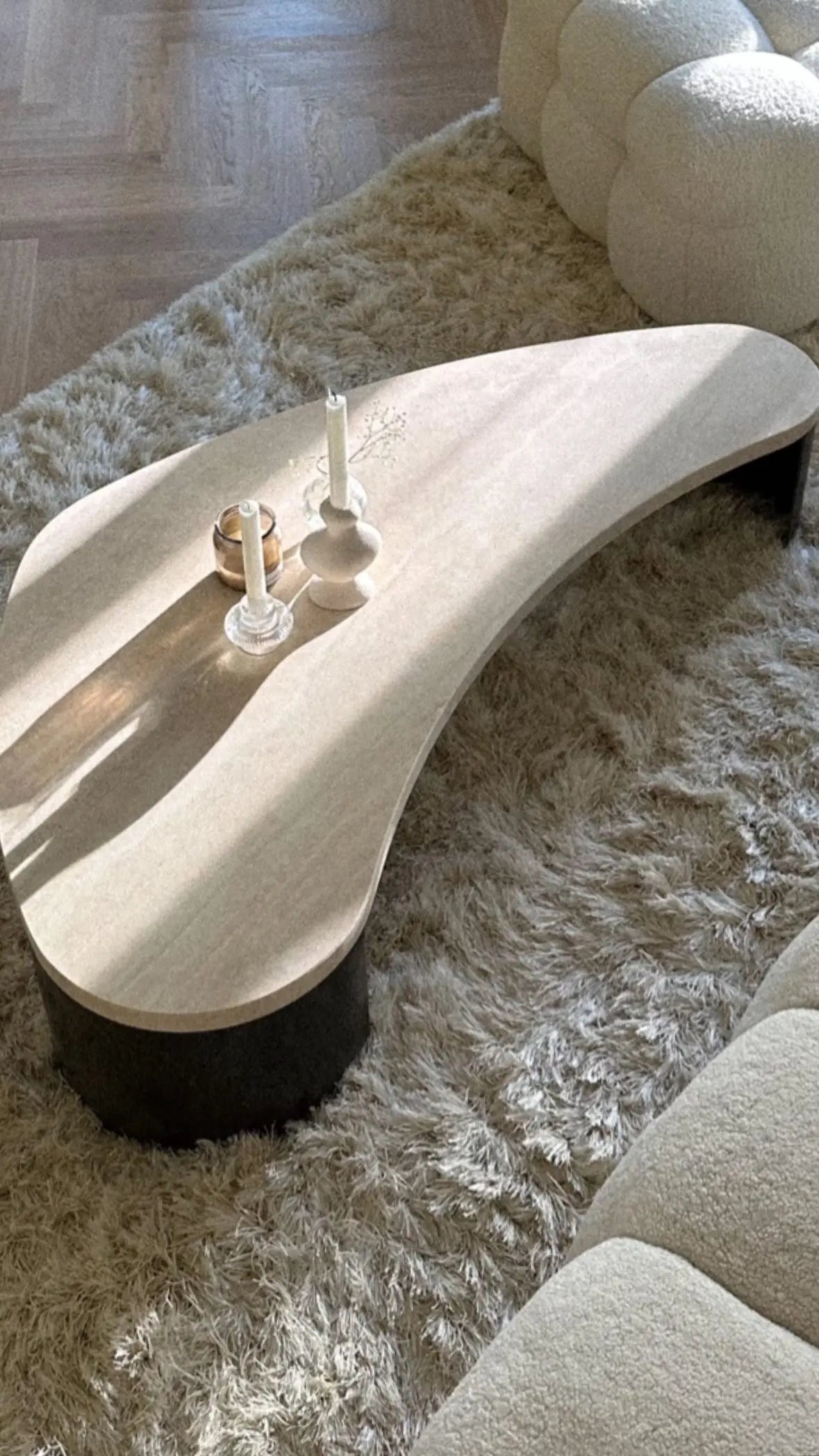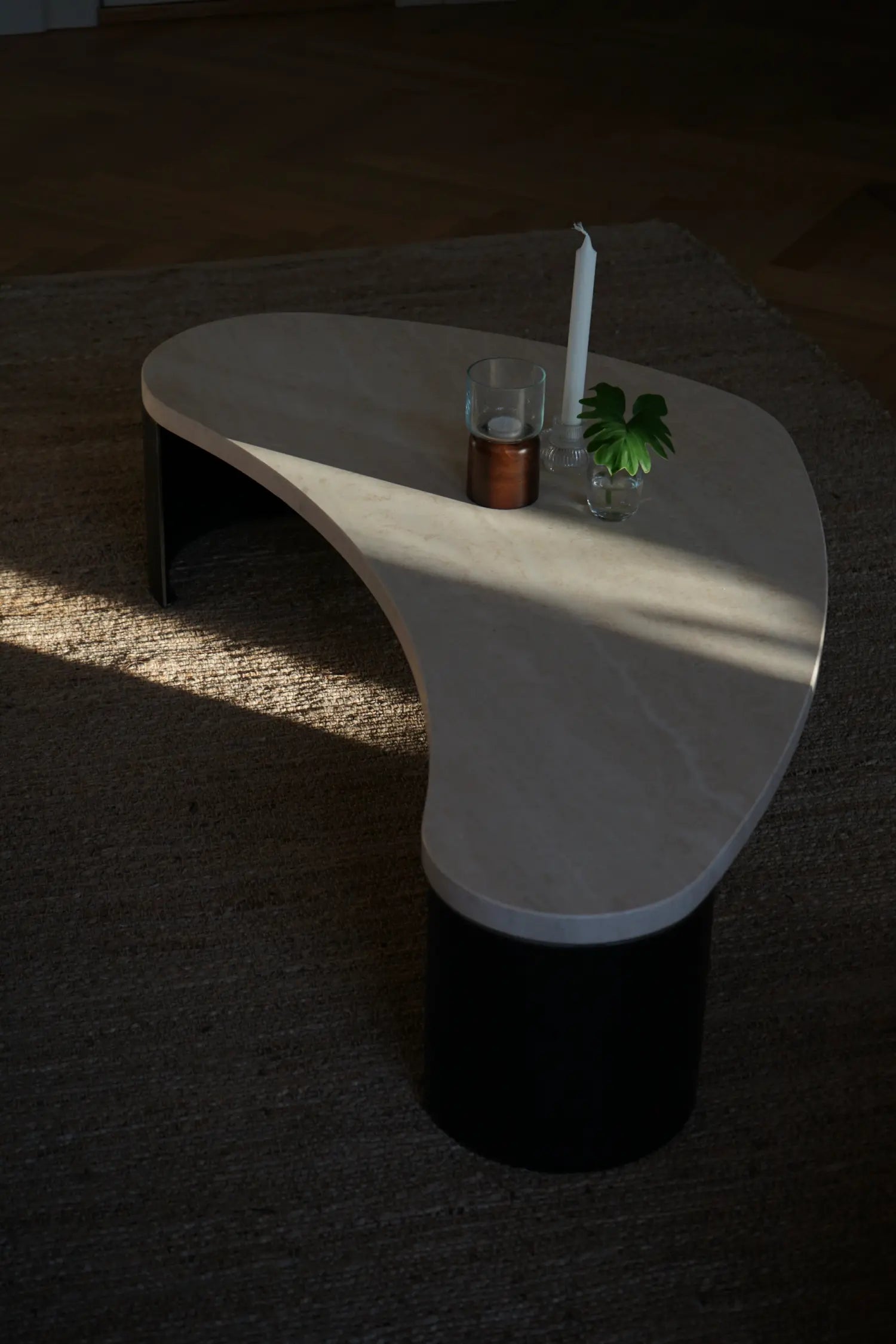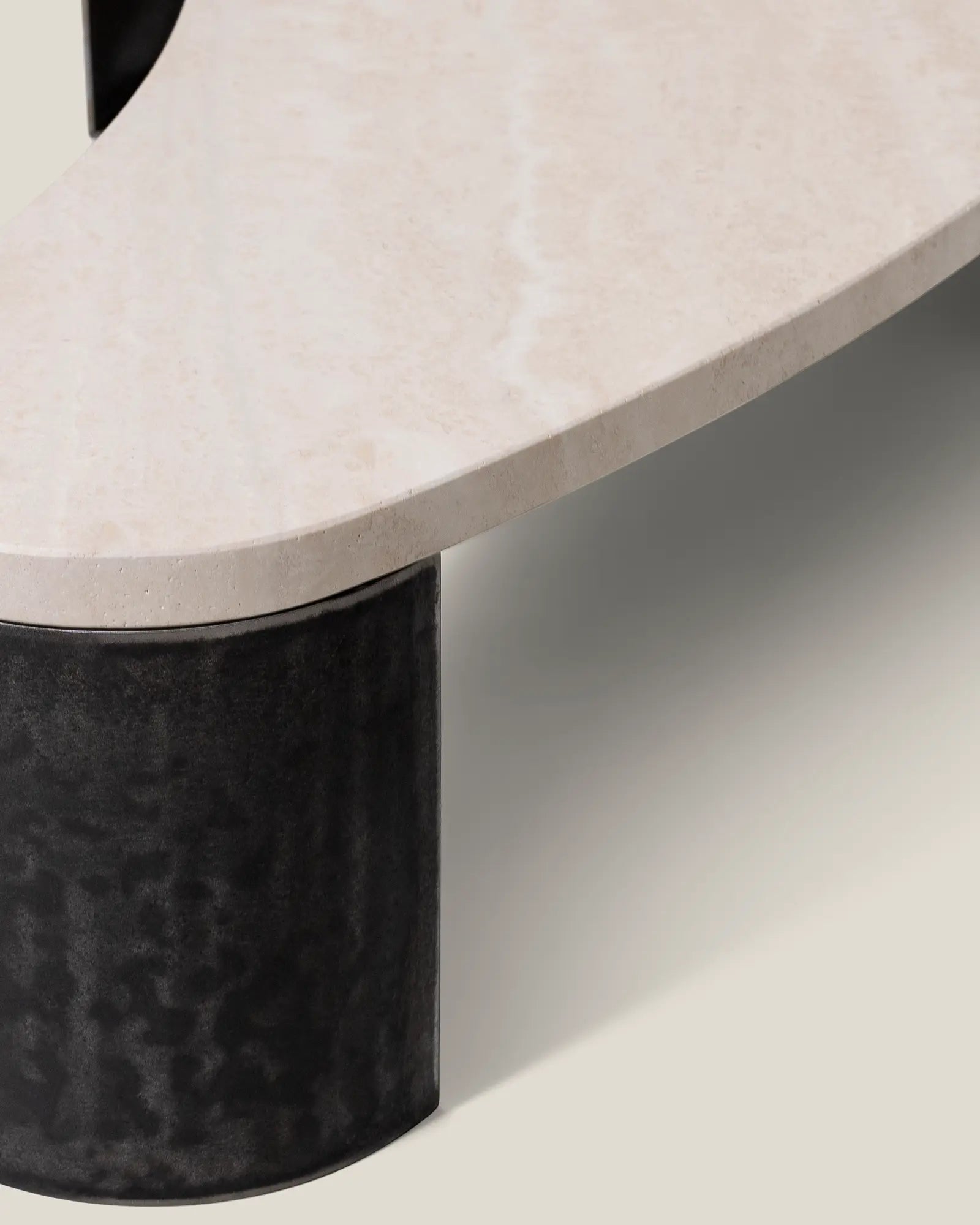 Dette salongbordet bærer preg av tre dedikasjoner: kreativitet, nytte og skjønnhet. Laget med italiensk travertin, støttet av råstål, og inspirert av tradisjonell landlig estetikk, fungerer dette organisk formede bordet som et samlingspunkt i ethvert oppholdsrom. Et sofistikert og funksjonelt arvestykke ment å vare livet ut