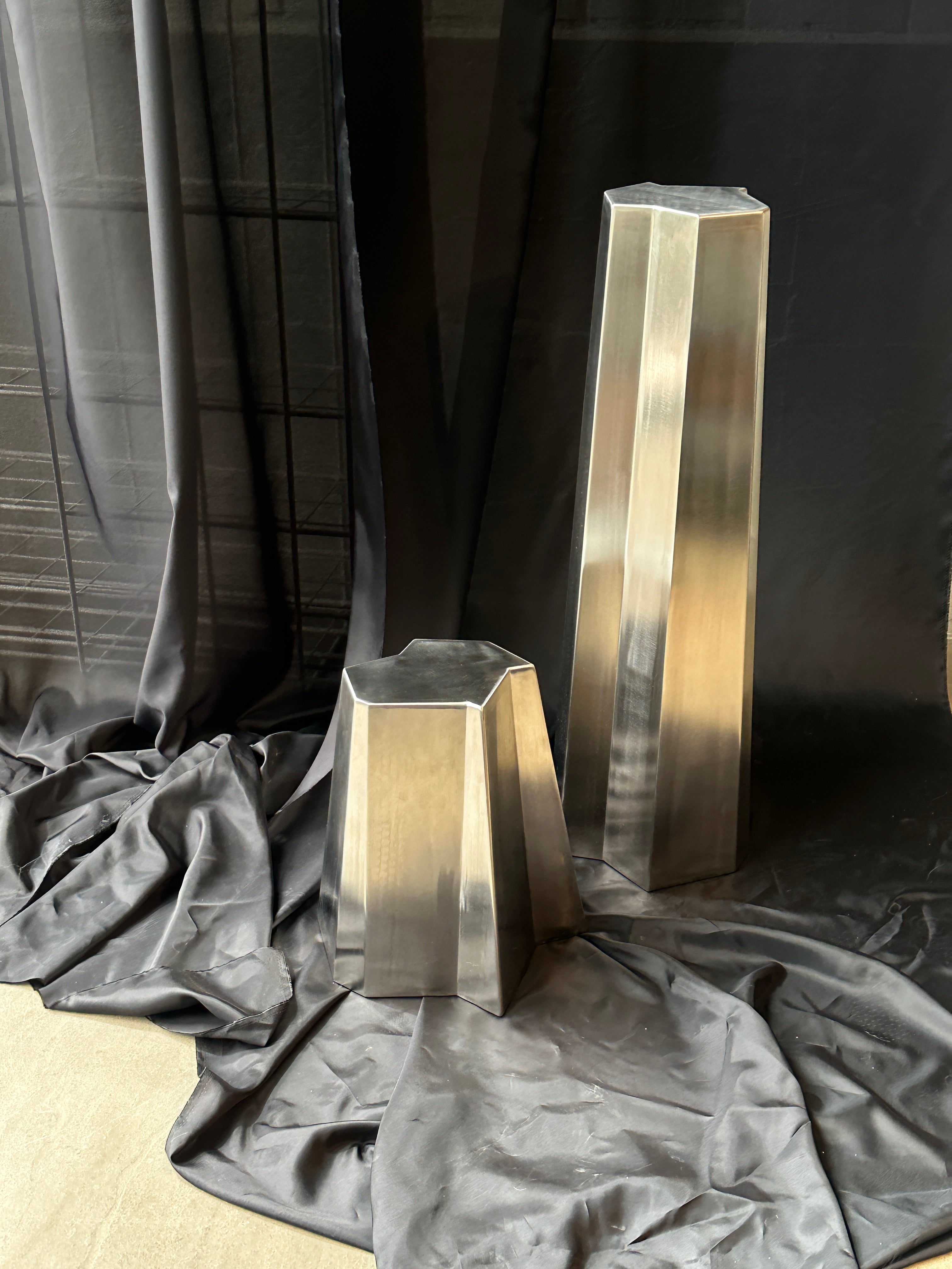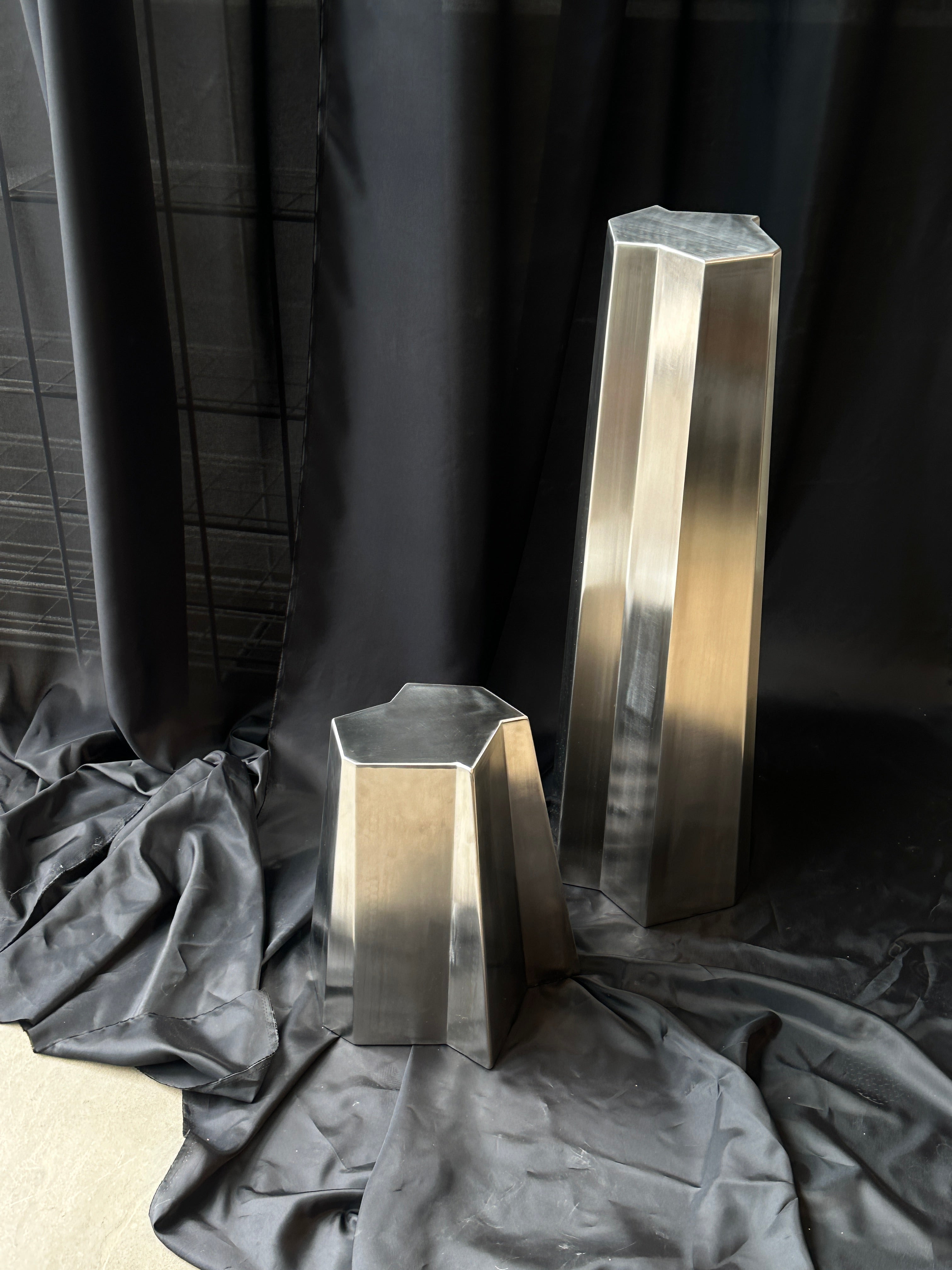 Pidestalene er laget i rustfritt stål. De er hule inne i- så derfor relativ lette i vekt.