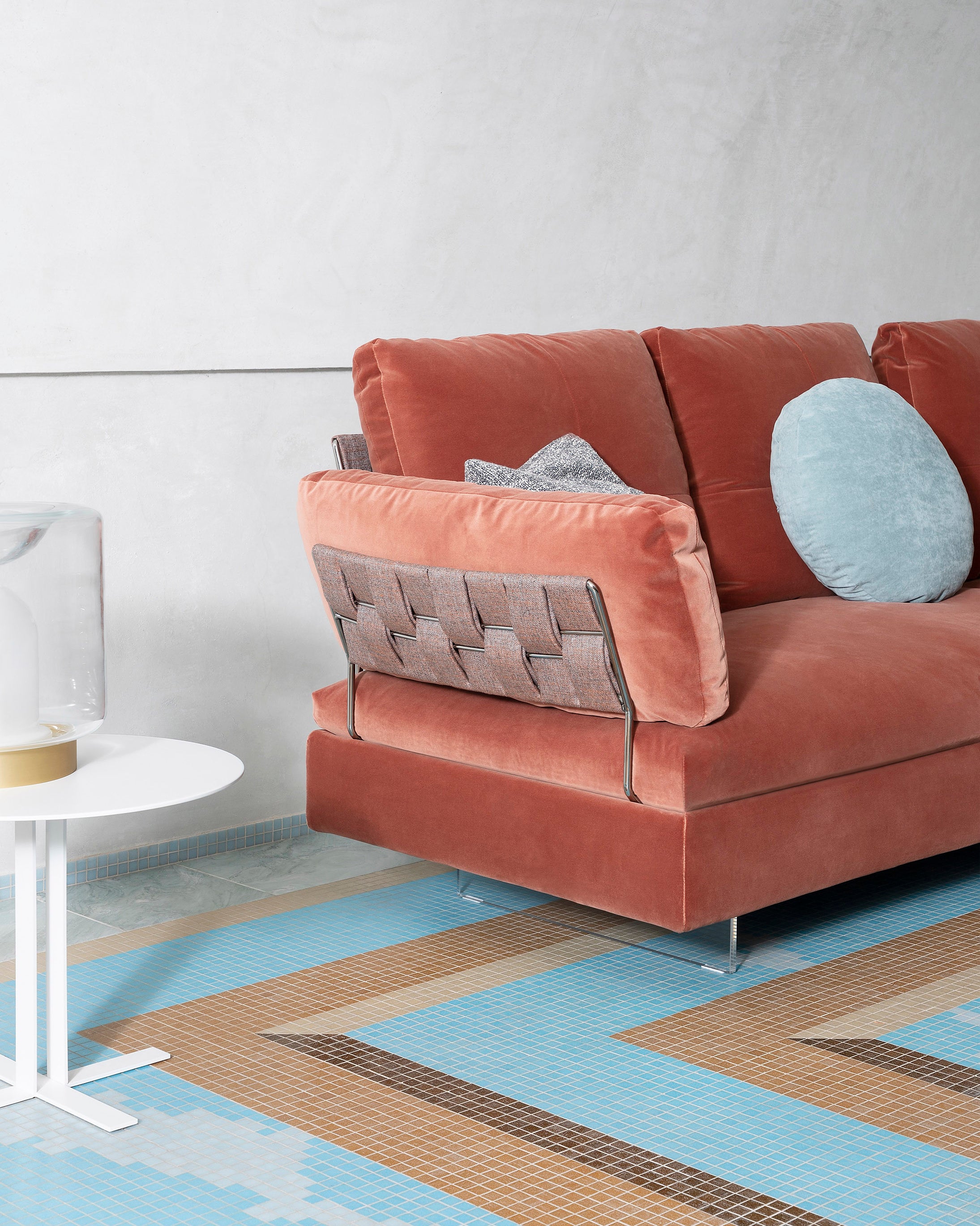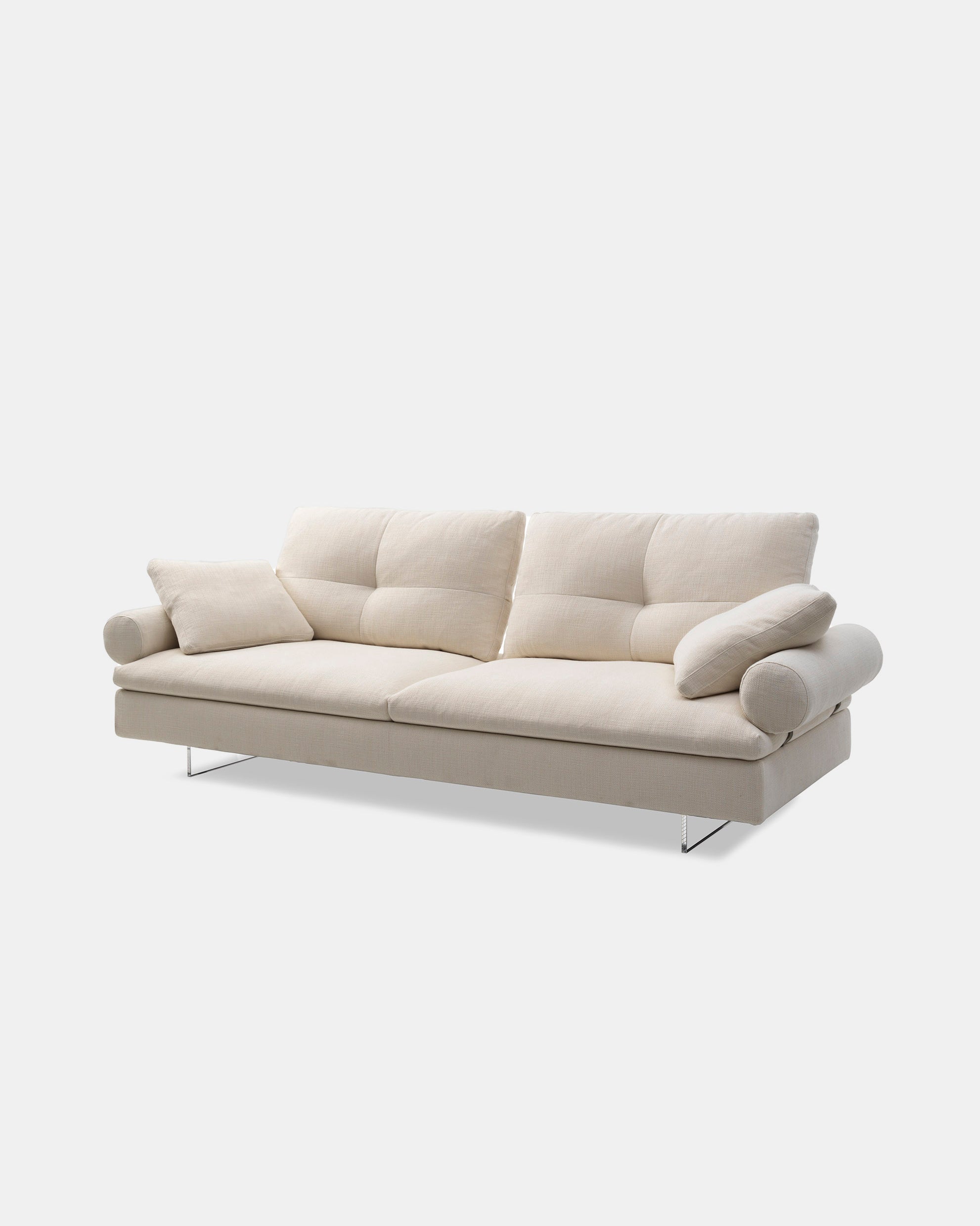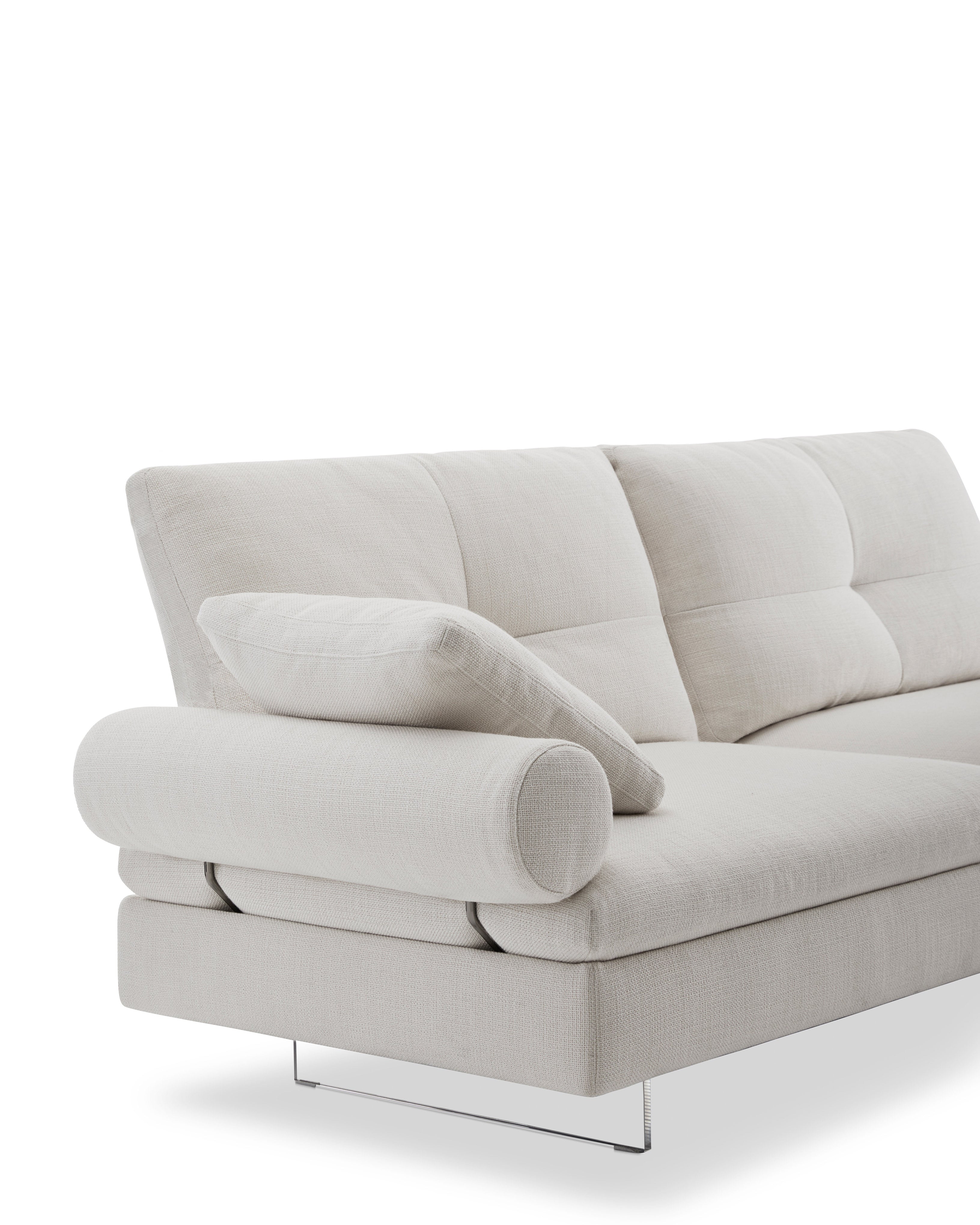 Polstring: Sitteputene er laget av skum med variabel tetthet (43IP og 38IM), trukket med fløyel kombinert med polyesterfiber (280 gr/kvm). Rygg- og rektangulære armlenputer er fylt med vasket og steriliserte gåsefjær og 100 % polyesterfiber delt i seksjoner, trukket med 100 % hvitt bomullsstoff. De sylindriske armlenene har en kjerne av 30IP skum og er trukket med bomullsfodera og polyesterfiber (380 gr/kvm). De kvadratiske armlenputene er laget av silikonisert mikrofiber (100 % polyester), sydd i seksjoner og trukket med 100 % hvitt bomullsstoff.