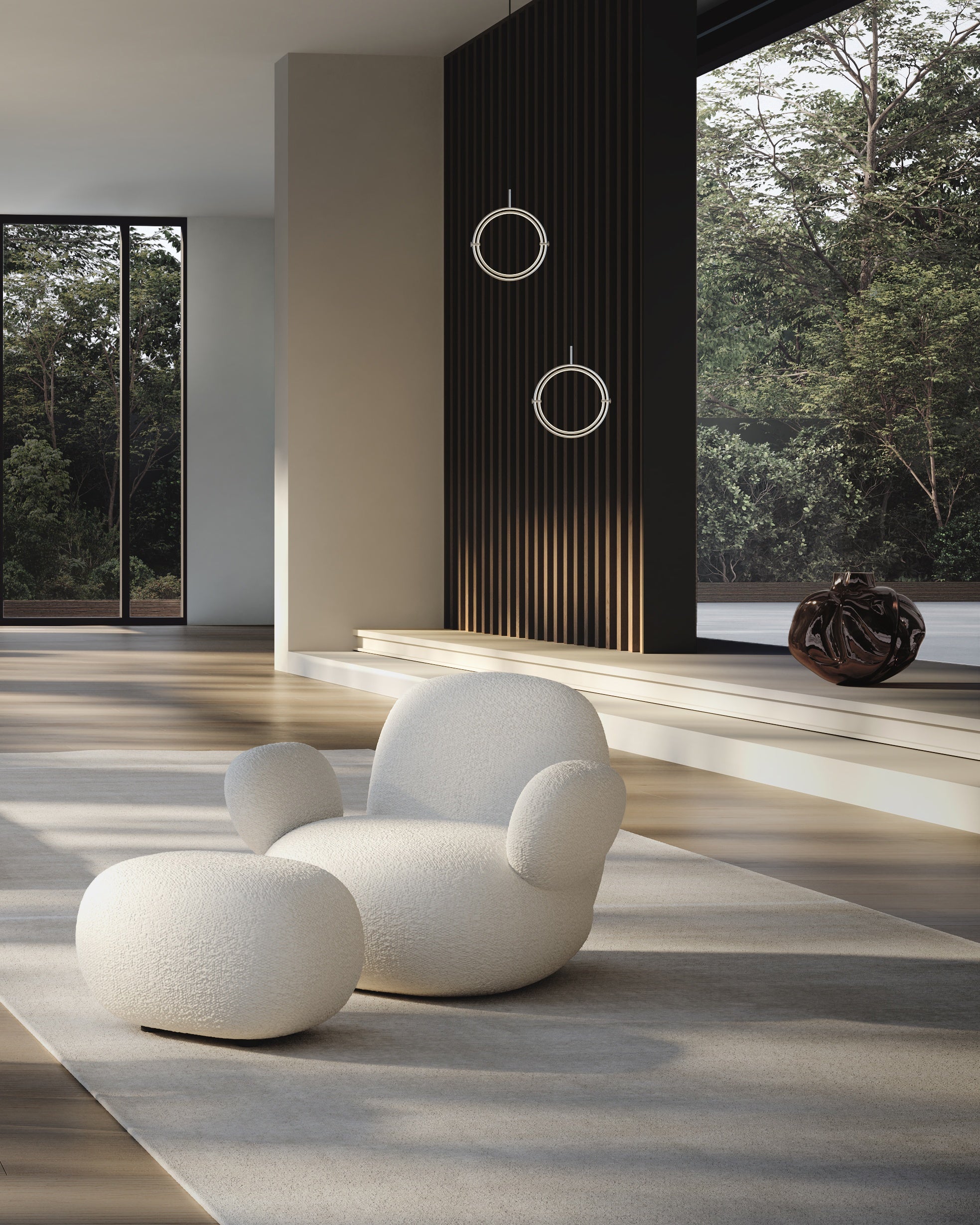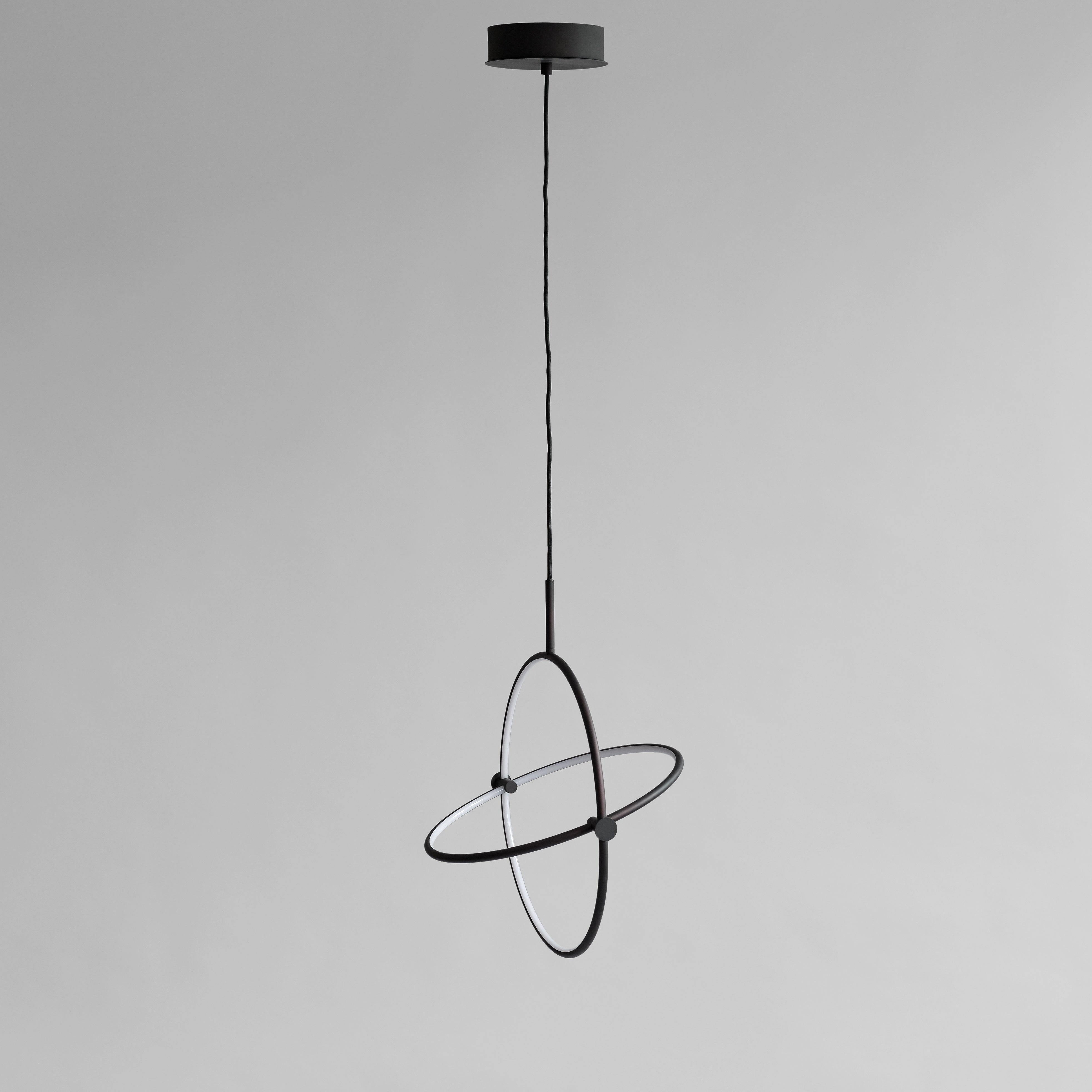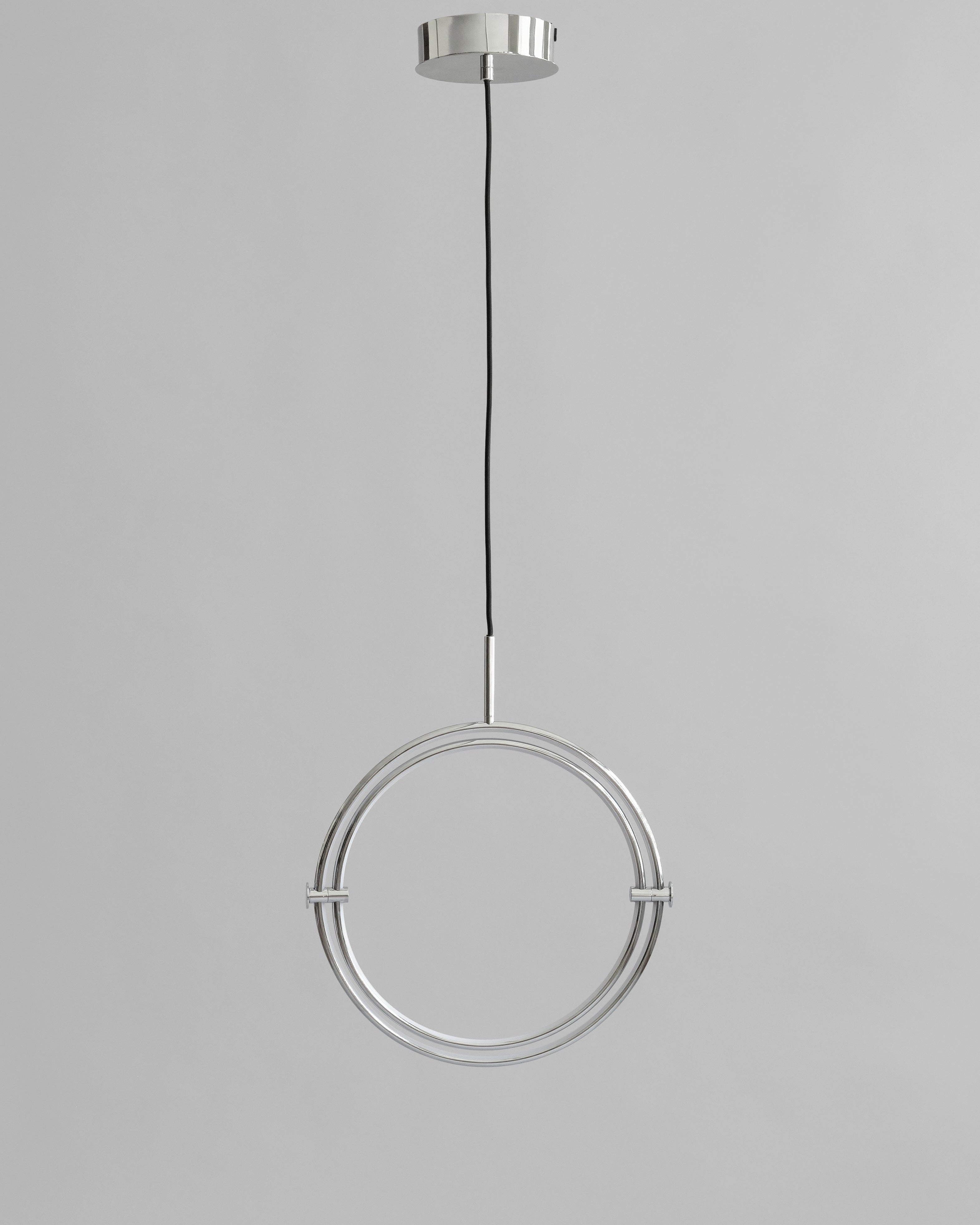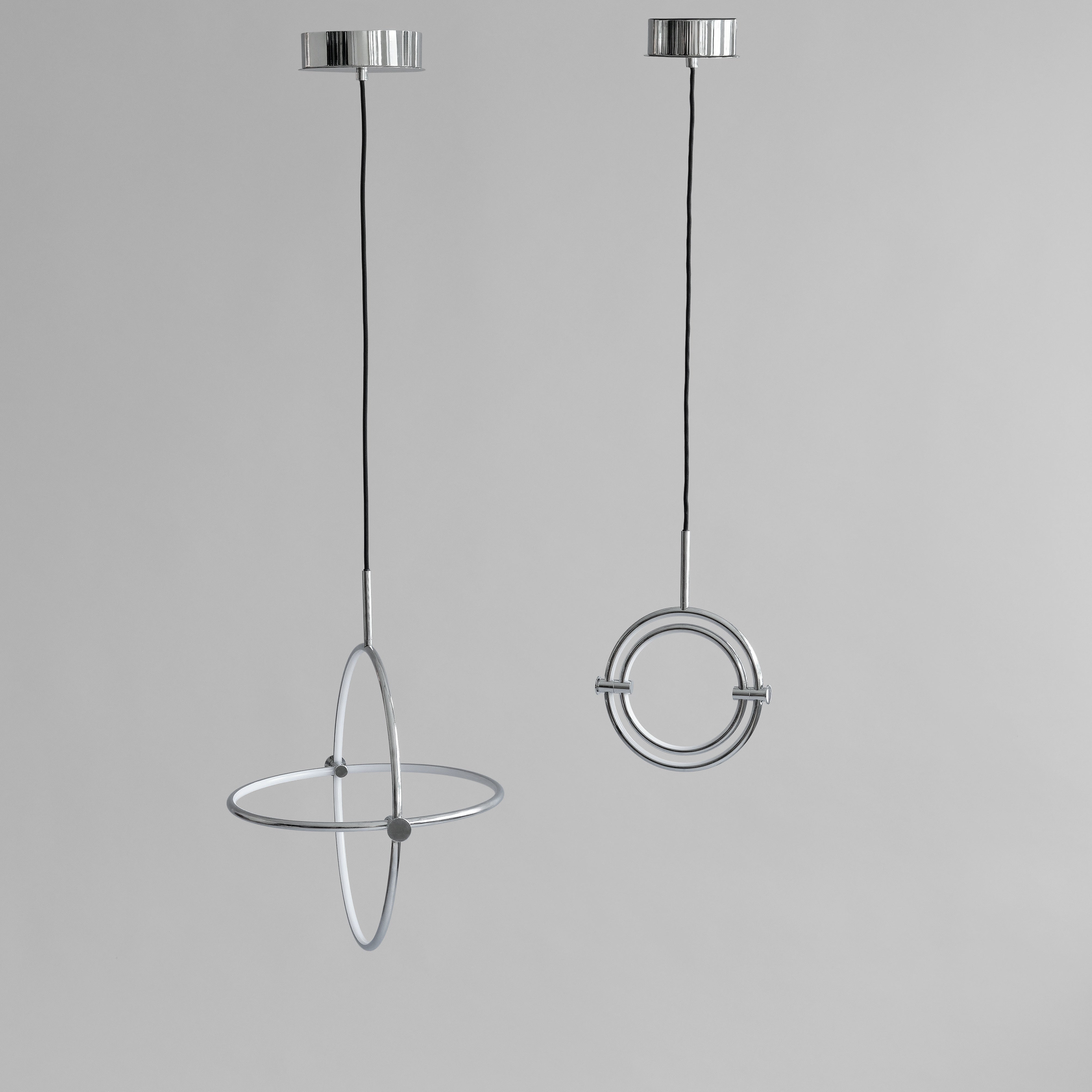 Oppkalt etter det japanske ordet for sirkel eller omkrets, er Maru lampen inspirert av minimalismekunst. Maru viser frem to omhyggelig utformede aluminiumsirkler, hver installert med et varmt LED-lys som lyser opp den indre delen av den sirkulære formen. Enkelheten til den geometriske designen gir ikke bare et moderne preg, men forbedrer også allsidigheten til disse anhengene. En bevegelig skjøt på hver side av sirklene gjør at den indre sirkelen kan snu seg inne i den andre, og legger til et lag med fleksibilitet til anhenget. Flere lamper kan grupperes sammen for å skape en dynamisk lysskjerm, eller de kan henge som skulpturelle anheng alene. Maru kommer i to størrelser for å passe til et bredt spekter av interiøroppsett. Tilgjengelig i to utførelser, kommer Maru i en kromfinish med speil som tilpasser omgivelsene med en viss flyt, og en sofistikert Burned Black som tilfører interiøret en distinkt skulpturell estetikk. Maru-kolleksjonen blander harmonisk geometrisk enkelhet med en varm atmosfære. Enten de brukes individuelt eller i en gruppe, inviterer disse anhengene til kreativitet og tilbyr en tidløs eleganse som utfyller enhver setting.