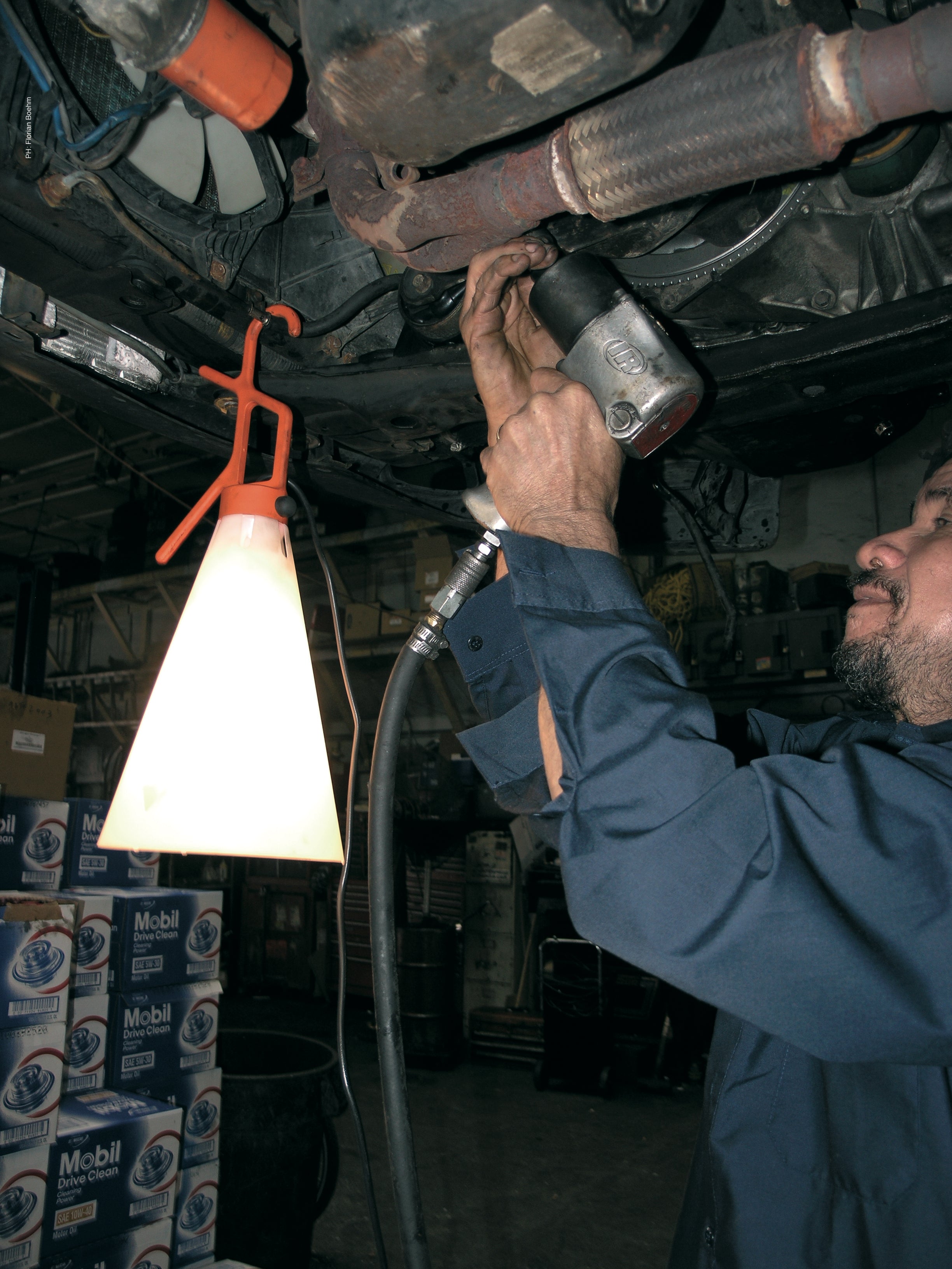 Den multifunksjonelle lampen May Day ble designet i 2000 av Konstantin Grcic for italienske Flos. Både skjerm og håndtak er laget av polypropylen, og håndtaket er tilgjengelig i oransje eller svart. Lampen sprer varm og behagelig belysning i rommet. På håndtaket er en av- og på-knapp.