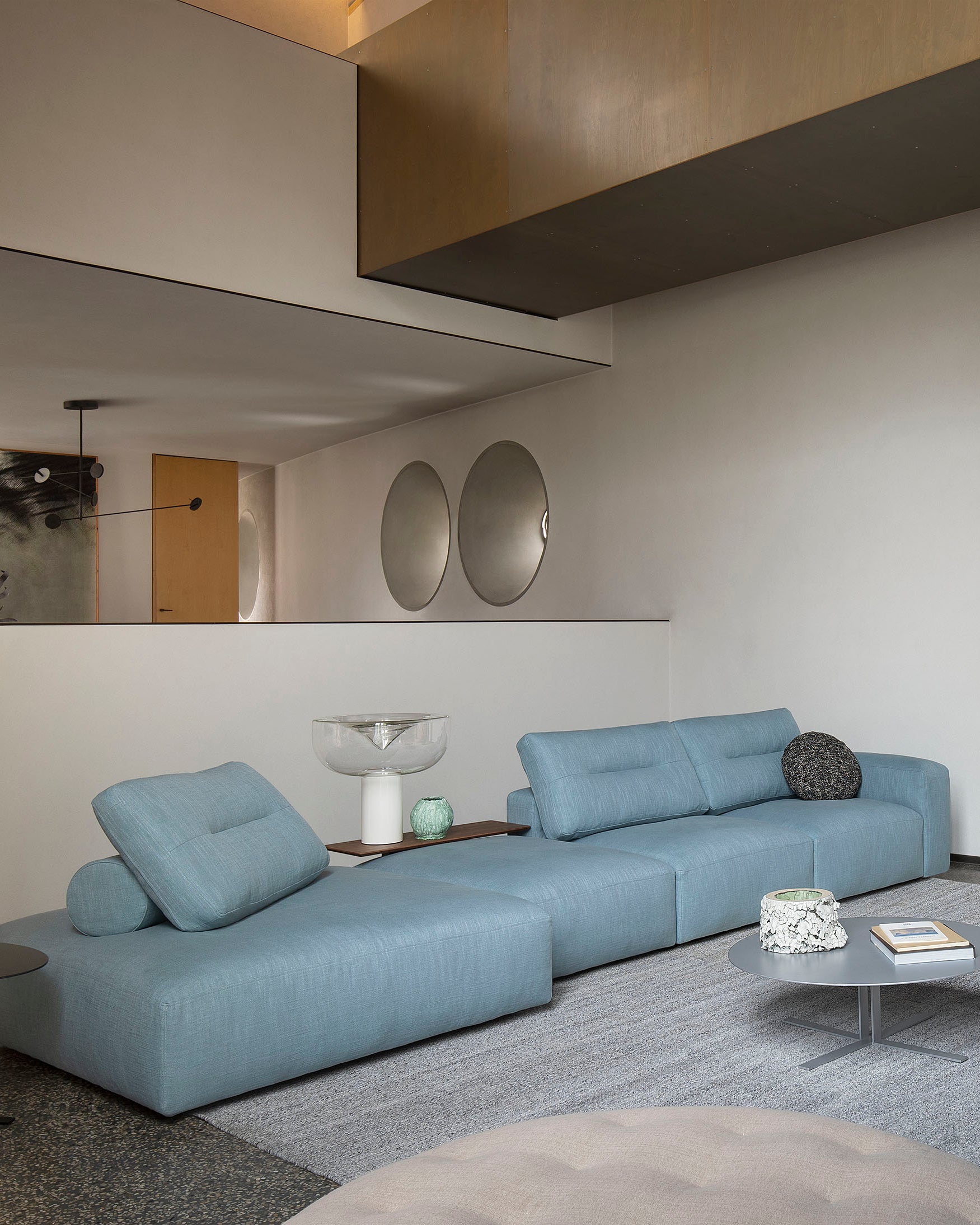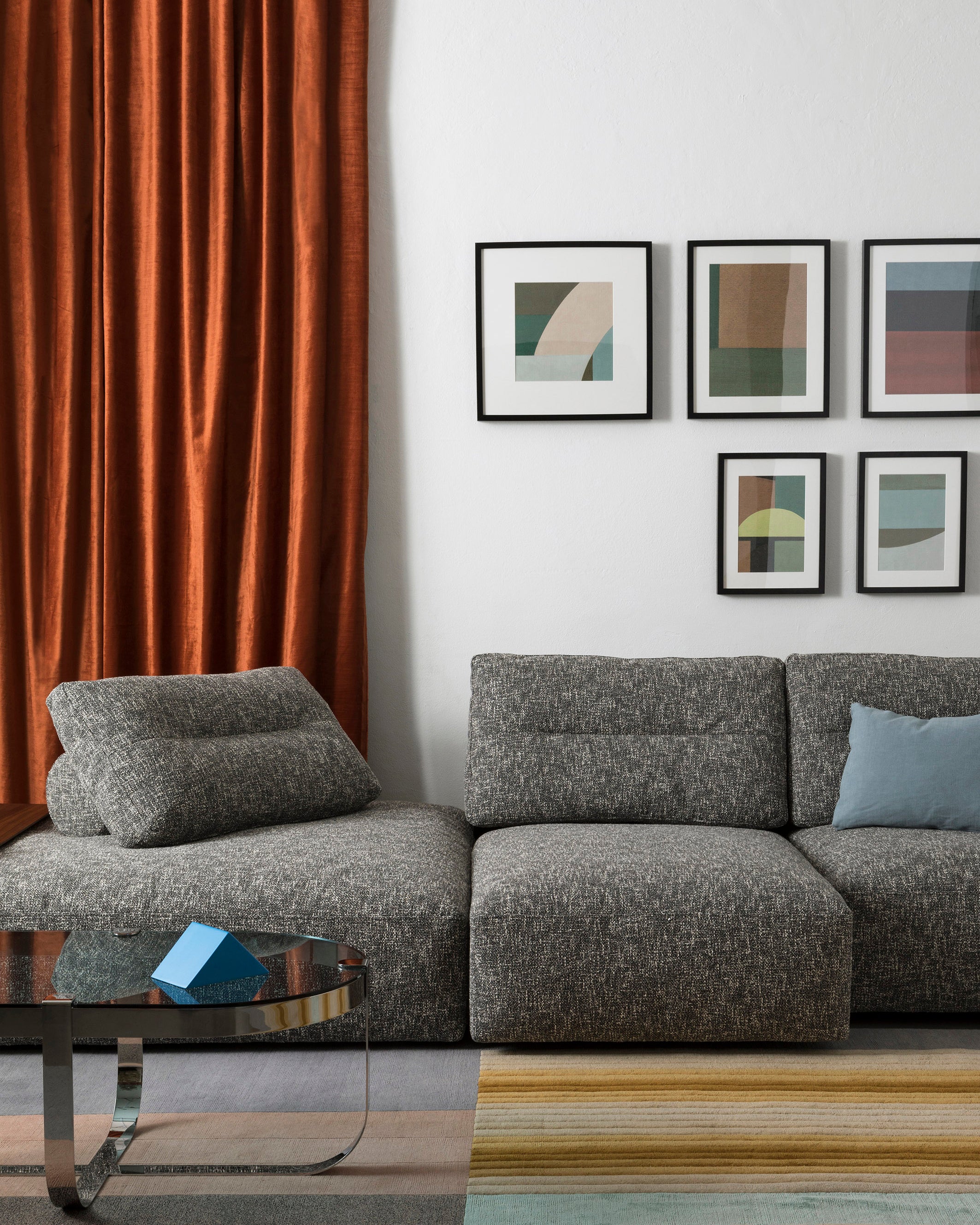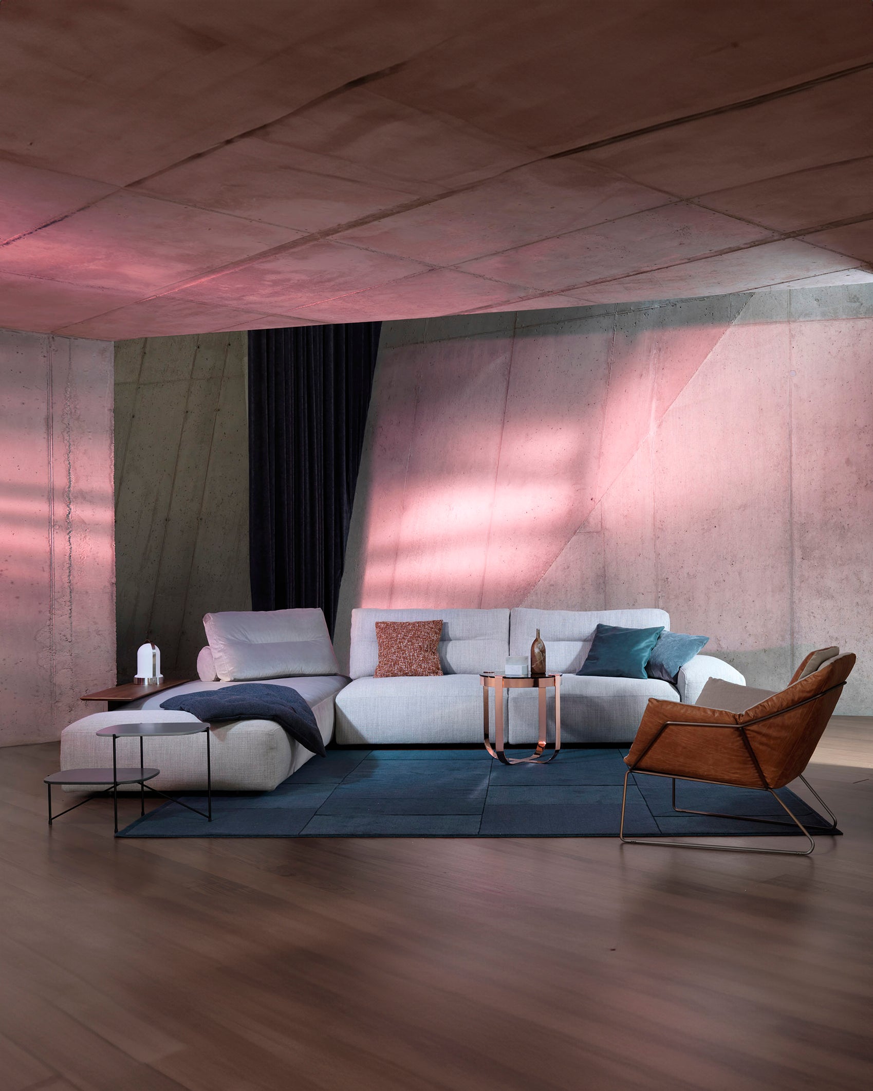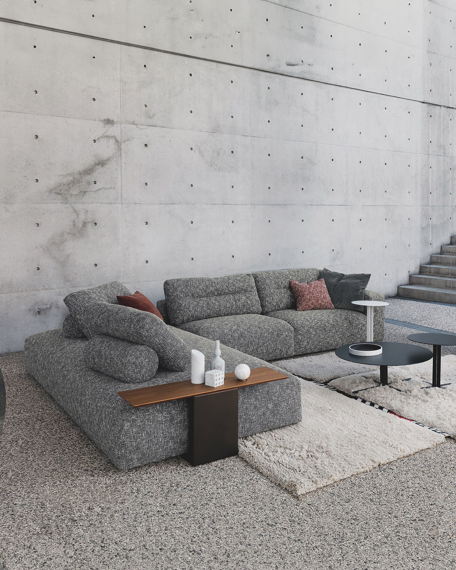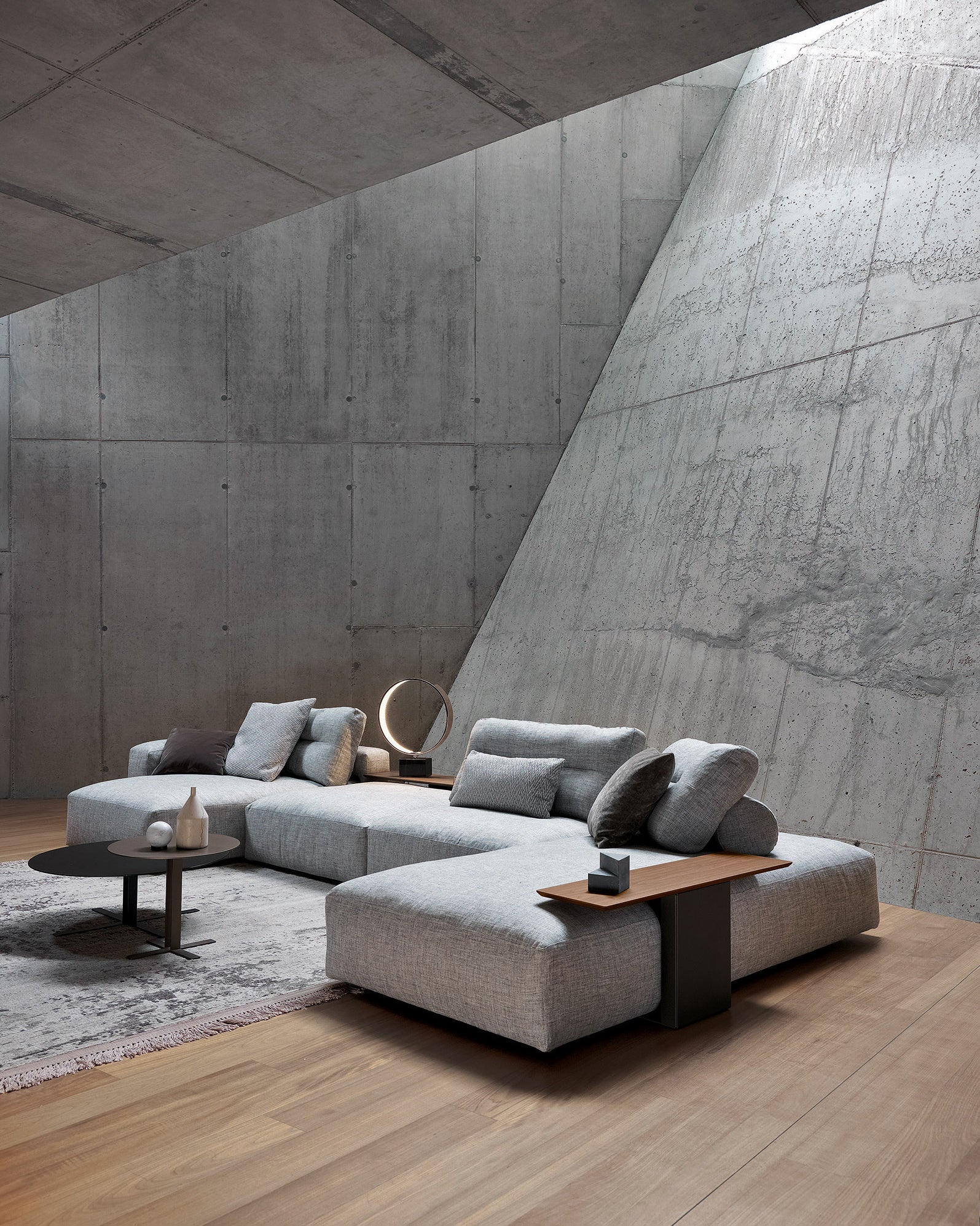 Forbedret komfort oppnås med høyere ryggstøtte og ergonomisk forbedret materiale som setter en ny standard. Den oppdaterte versjonen har også foldbare sidebord og nye sylindriske støtteputer. Elementet av poesi vises i de myke, avrundede formene som gir et innbydende uttrykk. My Taos er en sofa som viser hvordan eksepsjonelt design varer gjennom tidene. De mindre basene kan justeres i dybden ved å dra dem frem og tilbake med hjelp av hjul på undersiden.
