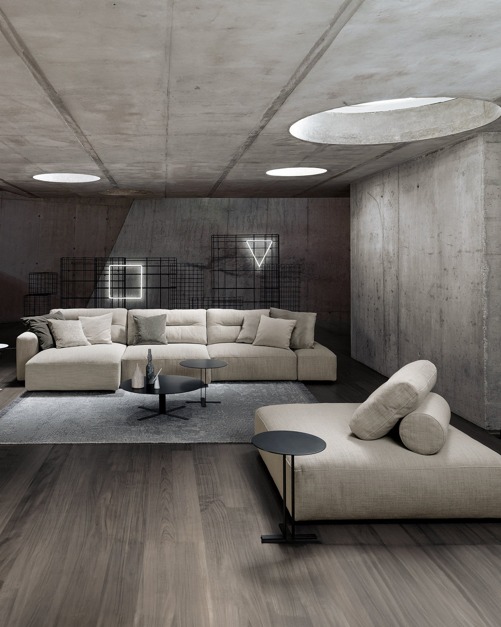 Polstring: Seteputene er laget av polyuretan og memory foam med øvre madrass i dun, dekket av 100 % bomull. Ryggputene er polstret med Mollapiuma (50 % gåsedun og 50 % Dacron DuPont-fiber) og trukket med bomullsstoff. Den runde støtteputen har en kjerne av polyuretan med en innvendig metallinnsats og polyesterfiber-belegg.