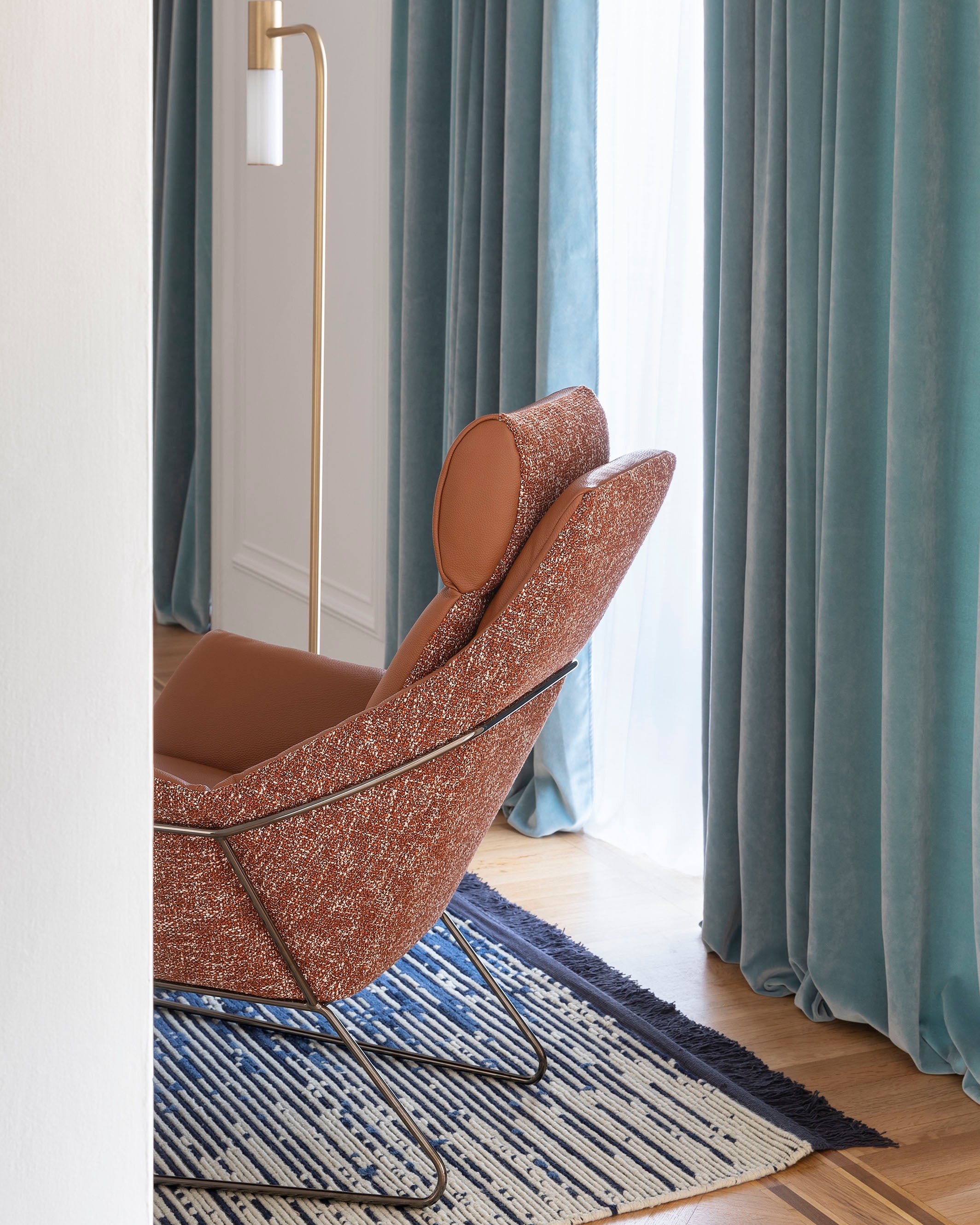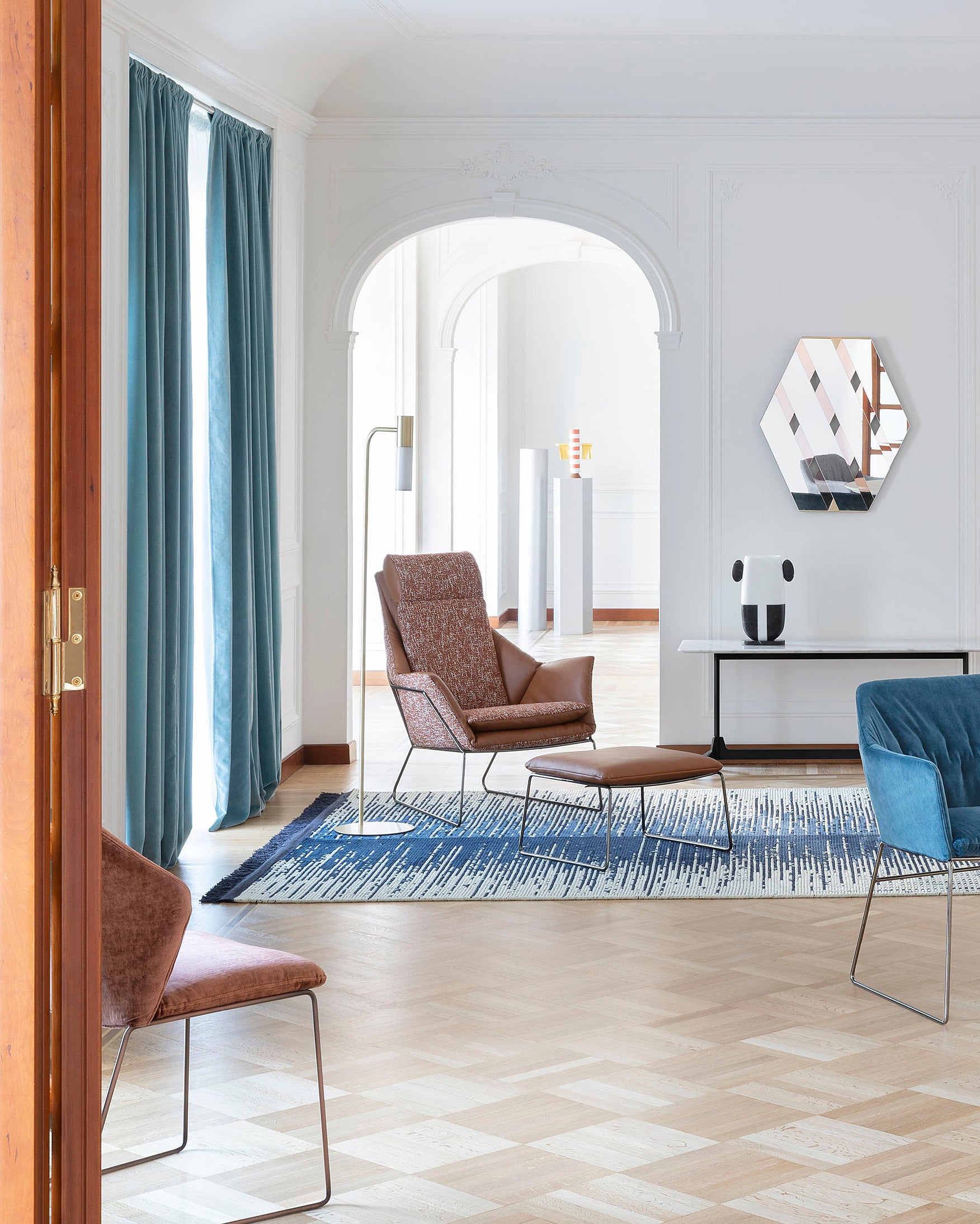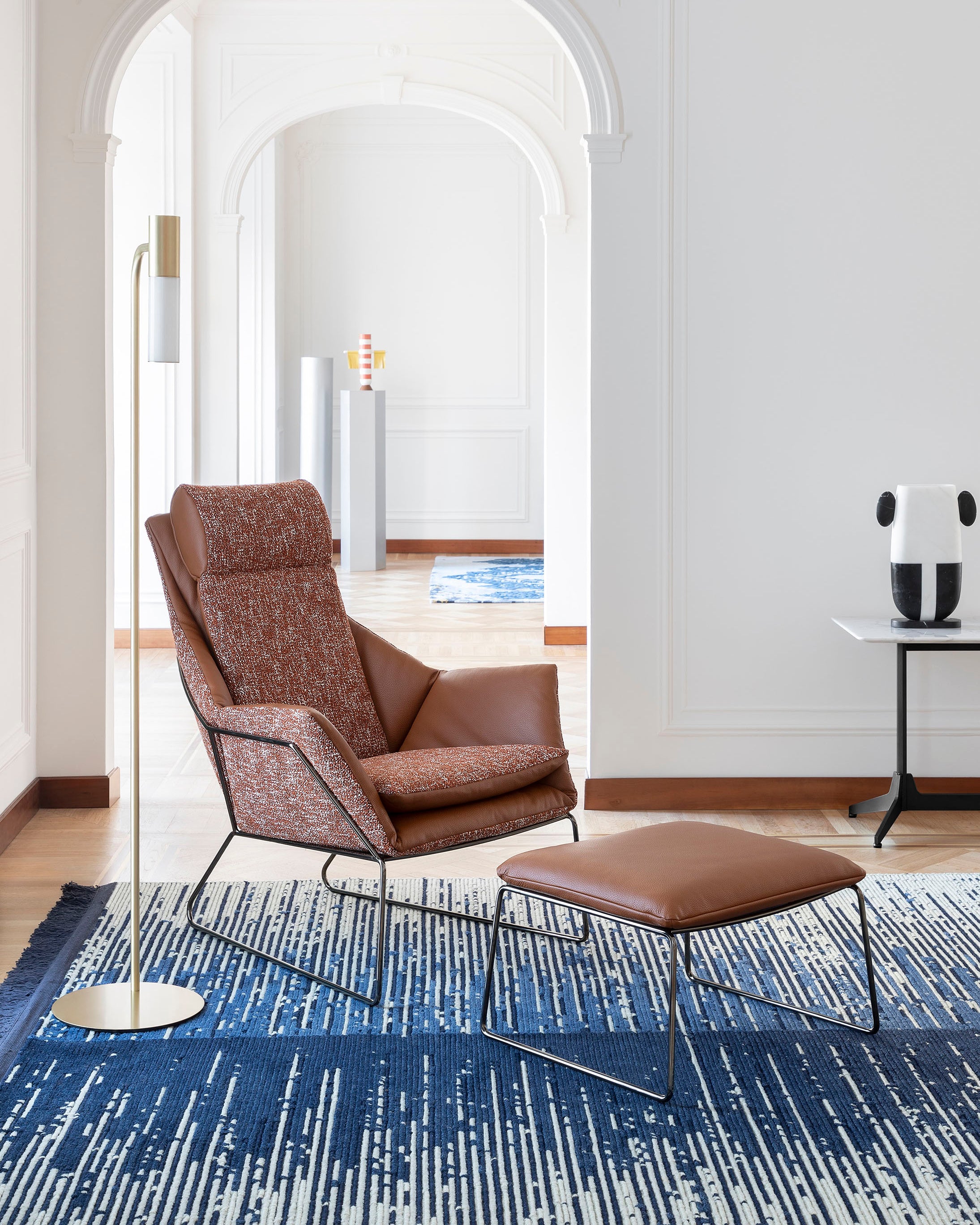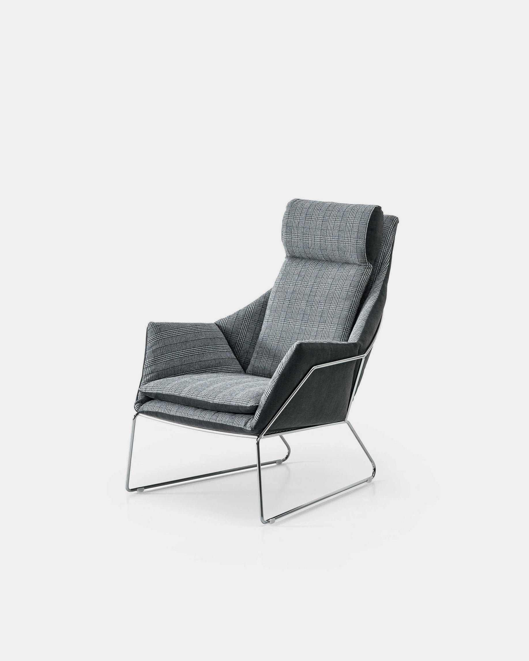 New York-kolleksjonen er inspirert av mangfoldet i storbyen med samme navn. Loungestolen New York har en minimalistisk metallramme og dobbel tekstilpute som gir utallige muligheter for tilpasning. Med utskiftbare trekk er denne stolen designet for å tilpasse seg ethvert interiør. Jernrammen fås i ulike farger og overflater.