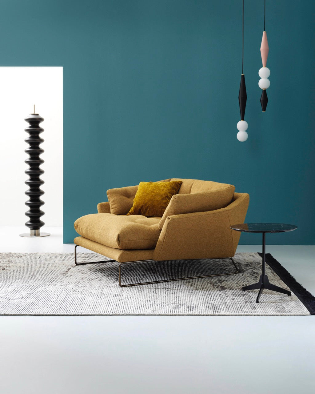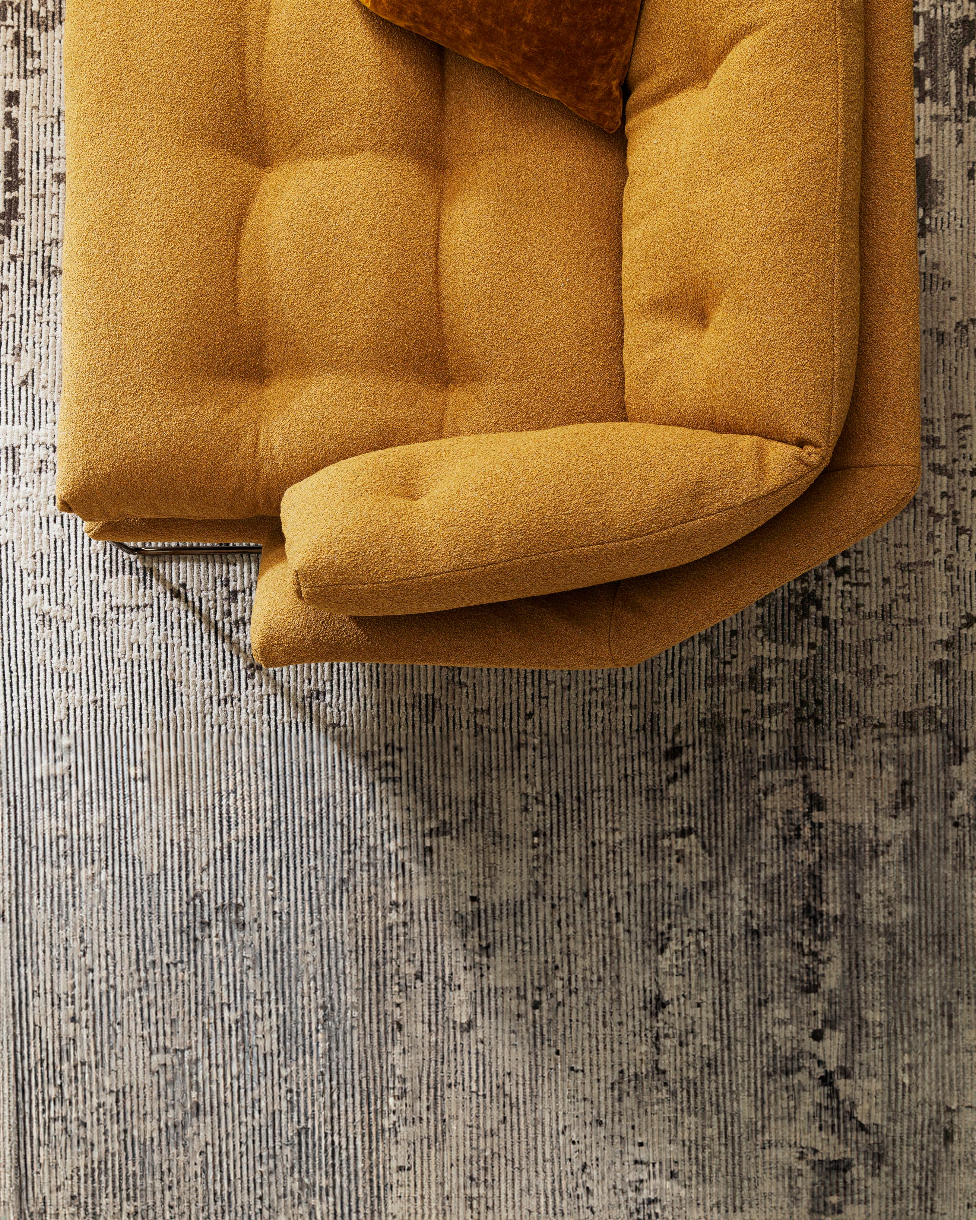 New York-kolleksjonen designet av Sergio Bicego kombinerer moderne sjel og tidløs eleganse. Med quiltede puter inspirert av retro-stil, skaper designet en nostalgisk atmosfære med et futuristisk preg. Den urbane stilen forsterkes av en hexagonal ramme som hviler på slanke stålben, noe som gir møblene et lett og sofistikert uttrykk. New York Suite er både myk og innbydende, også i mindre versjoner som maxi-lenestolen og en kompakt 155 cm sofa som komfortabelt rommer to personer – perfekt for kontraktsprosjekter.