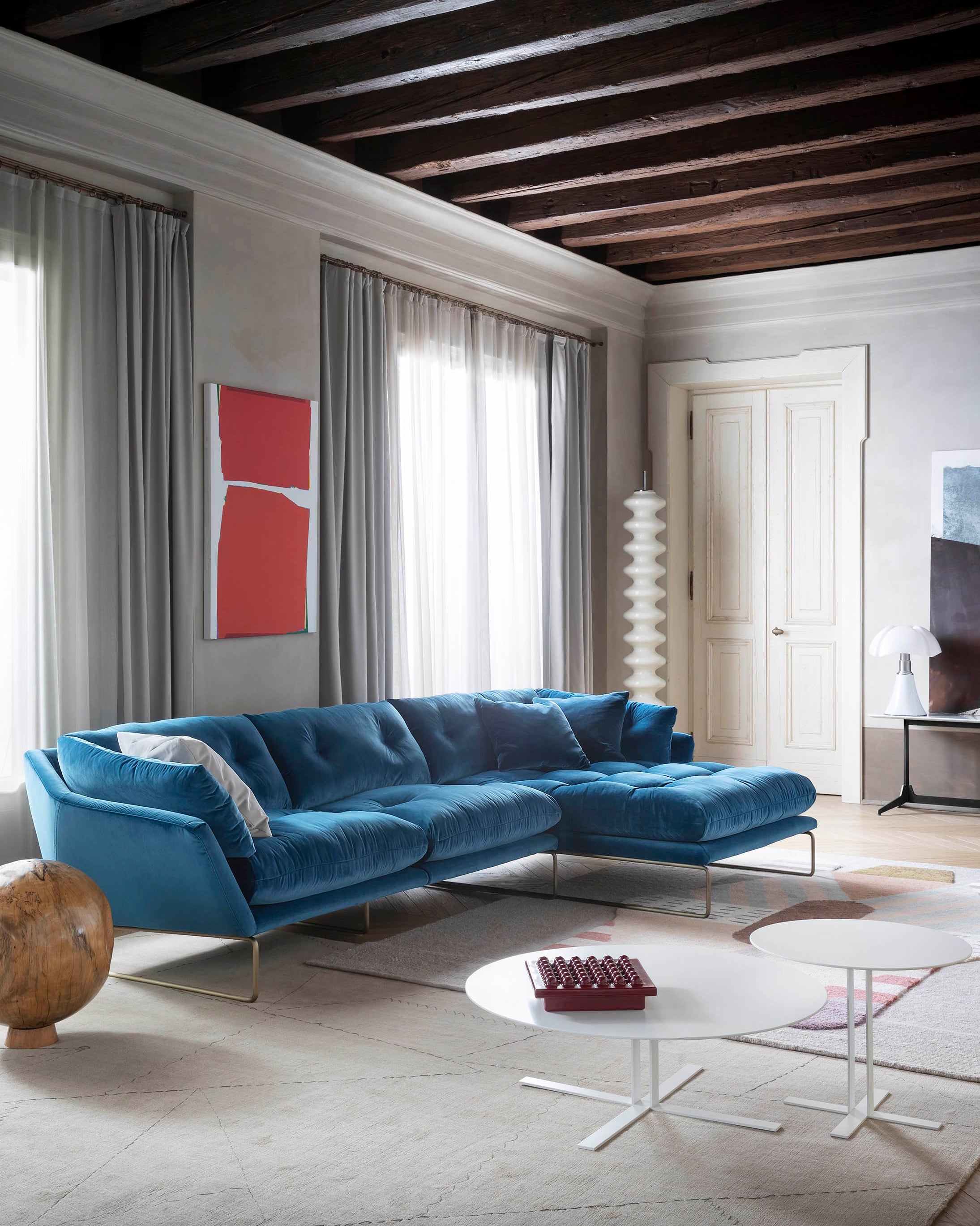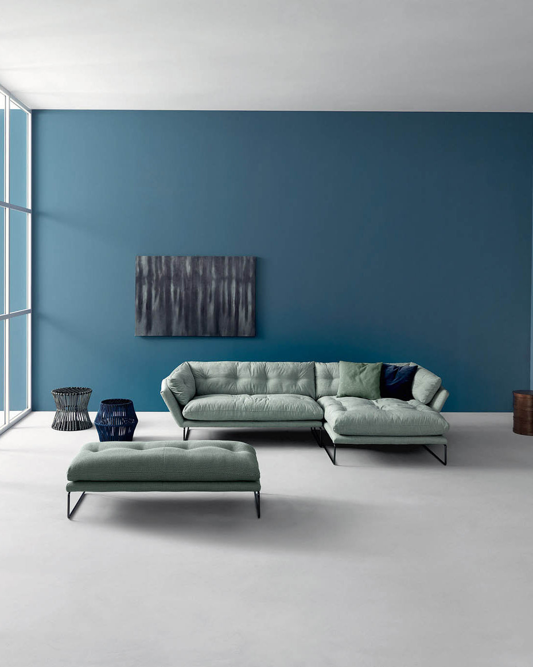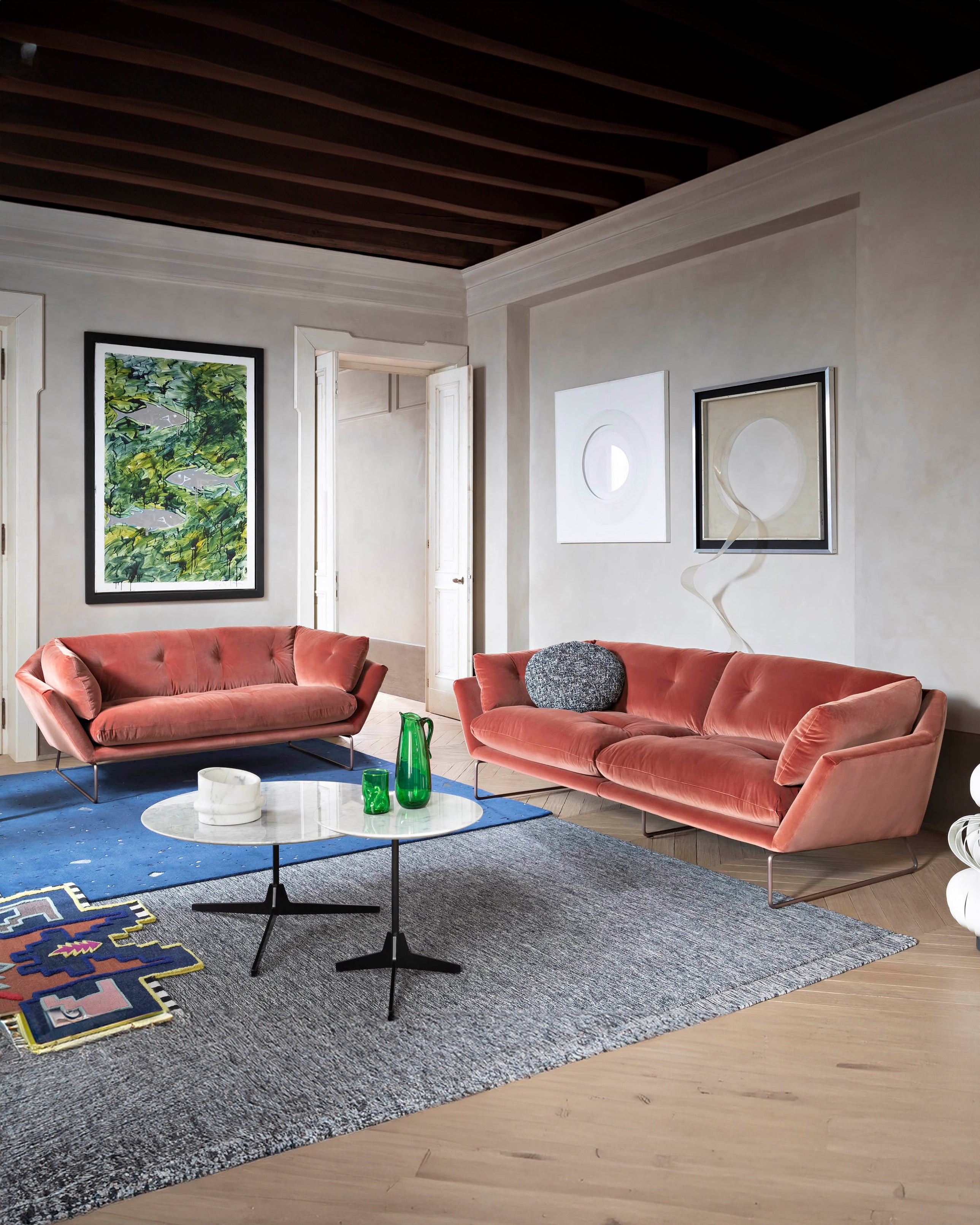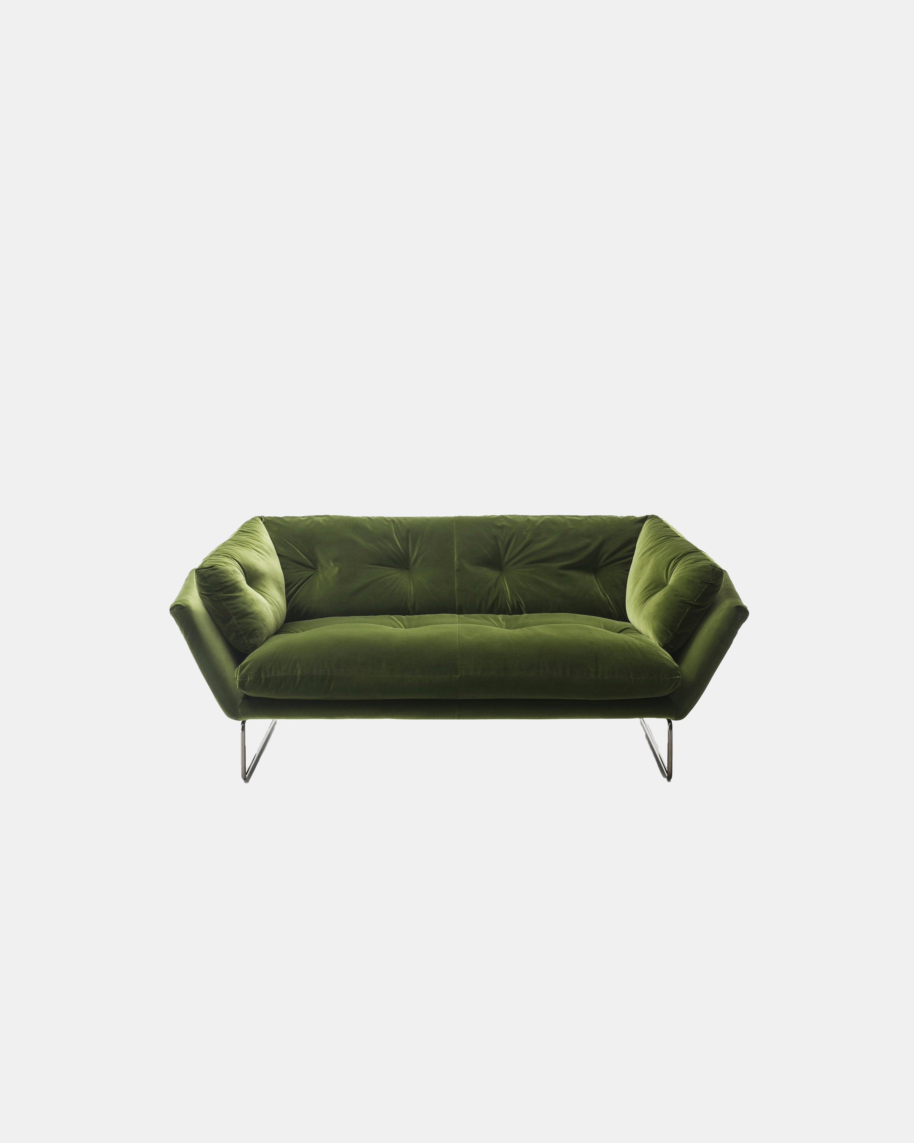 New York-kolleksjonen designet av Sergio Bicego kombinerer moderne sjel og tidløs eleganse. Med quiltede puter inspirert av retro-stil, skaper designet en nostalgisk atmosfære med et futuristisk preg. Den urbane stilen forsterkes av en hexagonal ramme som hviler på slanke stålben, noe som gir møblene et lett og sofistikert uttrykk. New York Suite er både myk og innbydende, også i mindre versjoner som maxi-lenestolen og en kompakt 155 cm sofa som komfortabelt rommer to personer – perfekt for kontraktsprosjekter.
