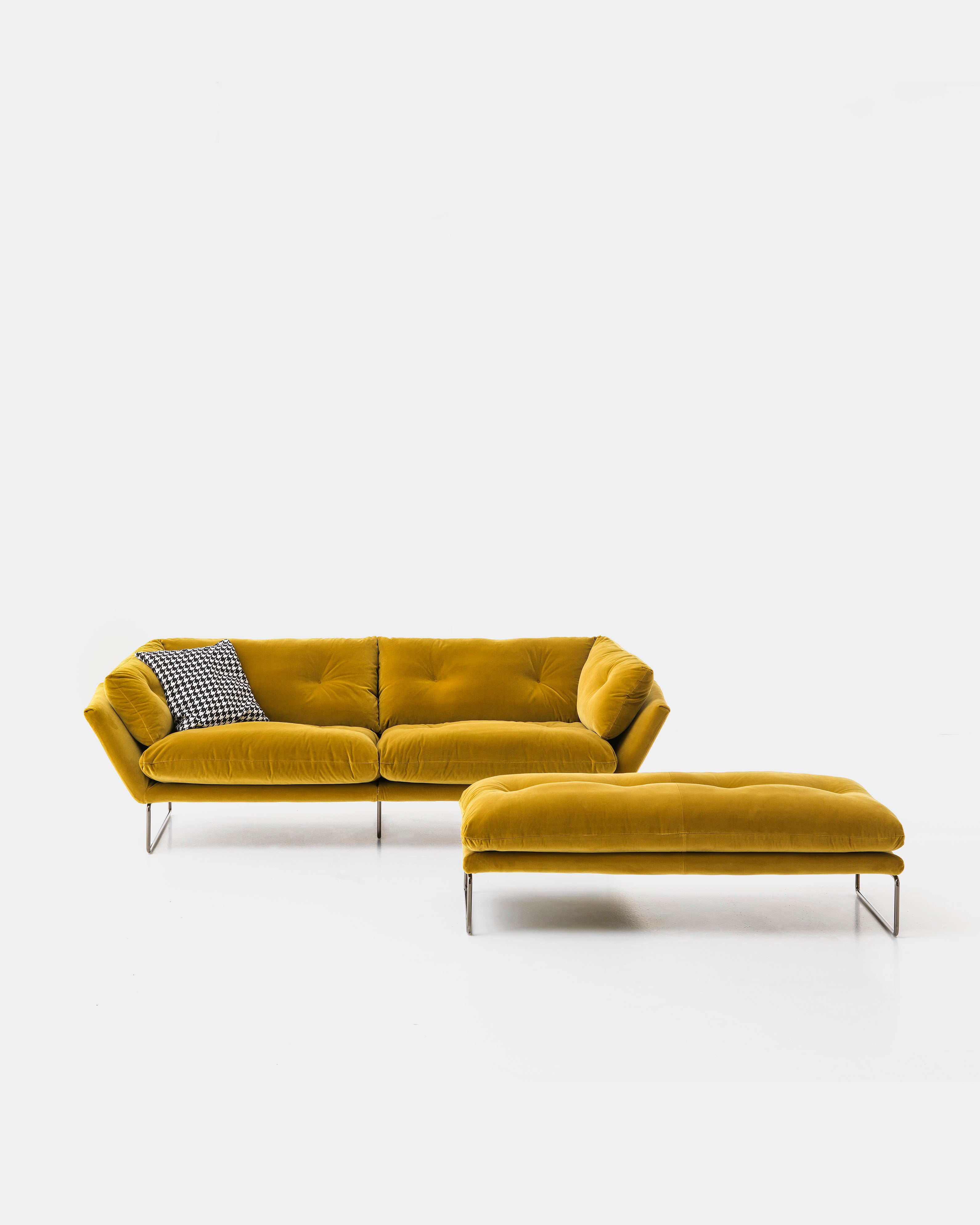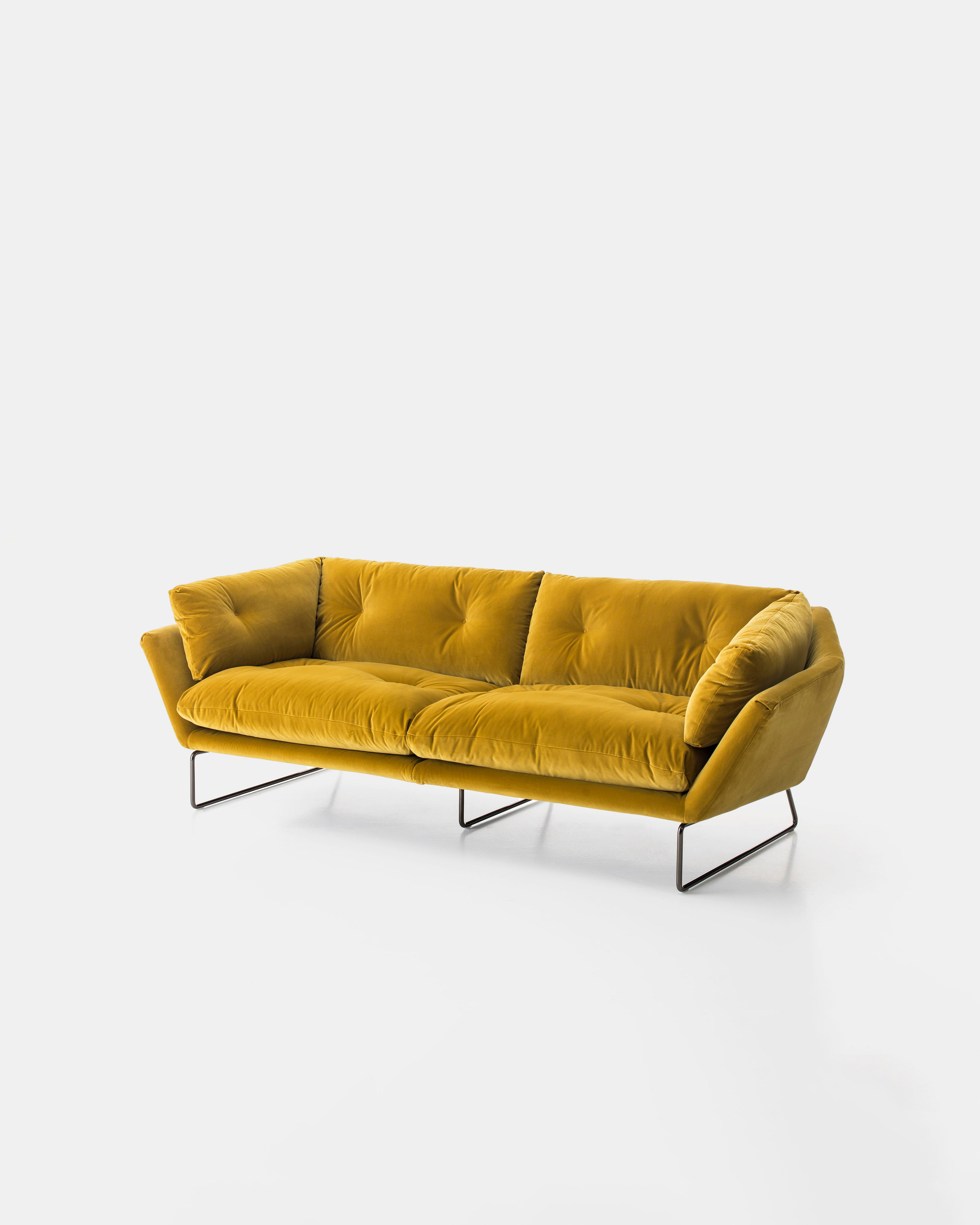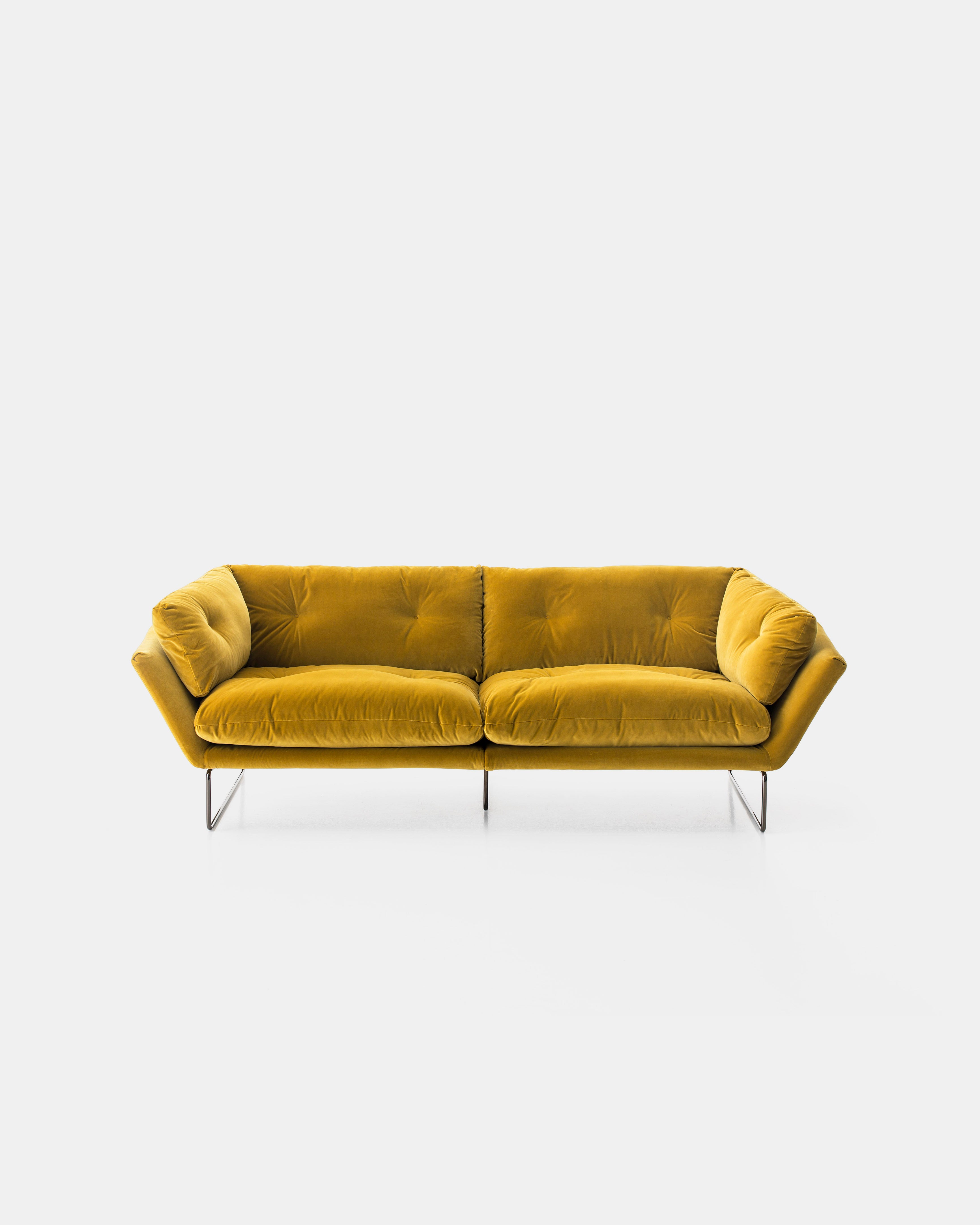 New York-kolleksjonen designet av Sergio Bicego kombinerer moderne sjel og tidløs eleganse. Med quiltede puter inspirert av retro-stil, skaper designet en nostalgisk atmosfære med et futuristisk preg. Den urbane stilen forsterkes av en hexagonal ramme som hviler på slanke stålben, noe som gir møblene et lett og sofistikert uttrykk. New York Suite er både myk og innbydende, også i mindre versjoner som maxi-lenestolen og en kompakt 155 cm sofa som komfortabelt rommer to personer – perfekt for kontraktsprosjekter.