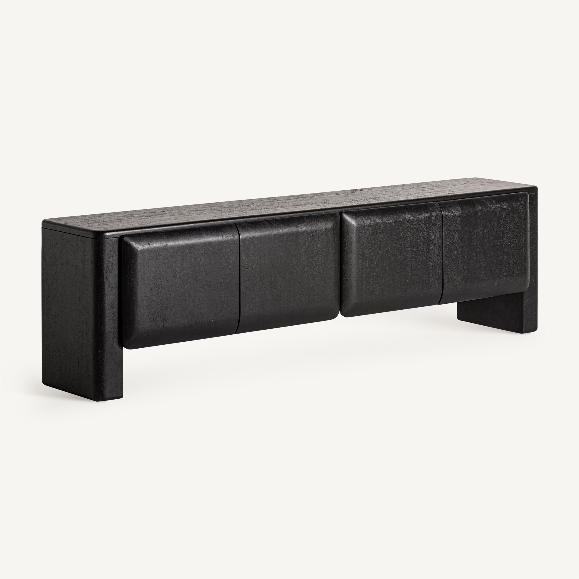 Norfolk Tv benk er et mesterverk av art deco-design av Vical Home. Denne benken er laget av svart mangotre og kombinerer eleganse og robusthet. Den utmerker seg ved sin unike håndlagde finish. Perfekt for et sofistikert interiør, hver del har naturlige variasjoner og ufullkommenheter som tilfører karakter og sjarm.