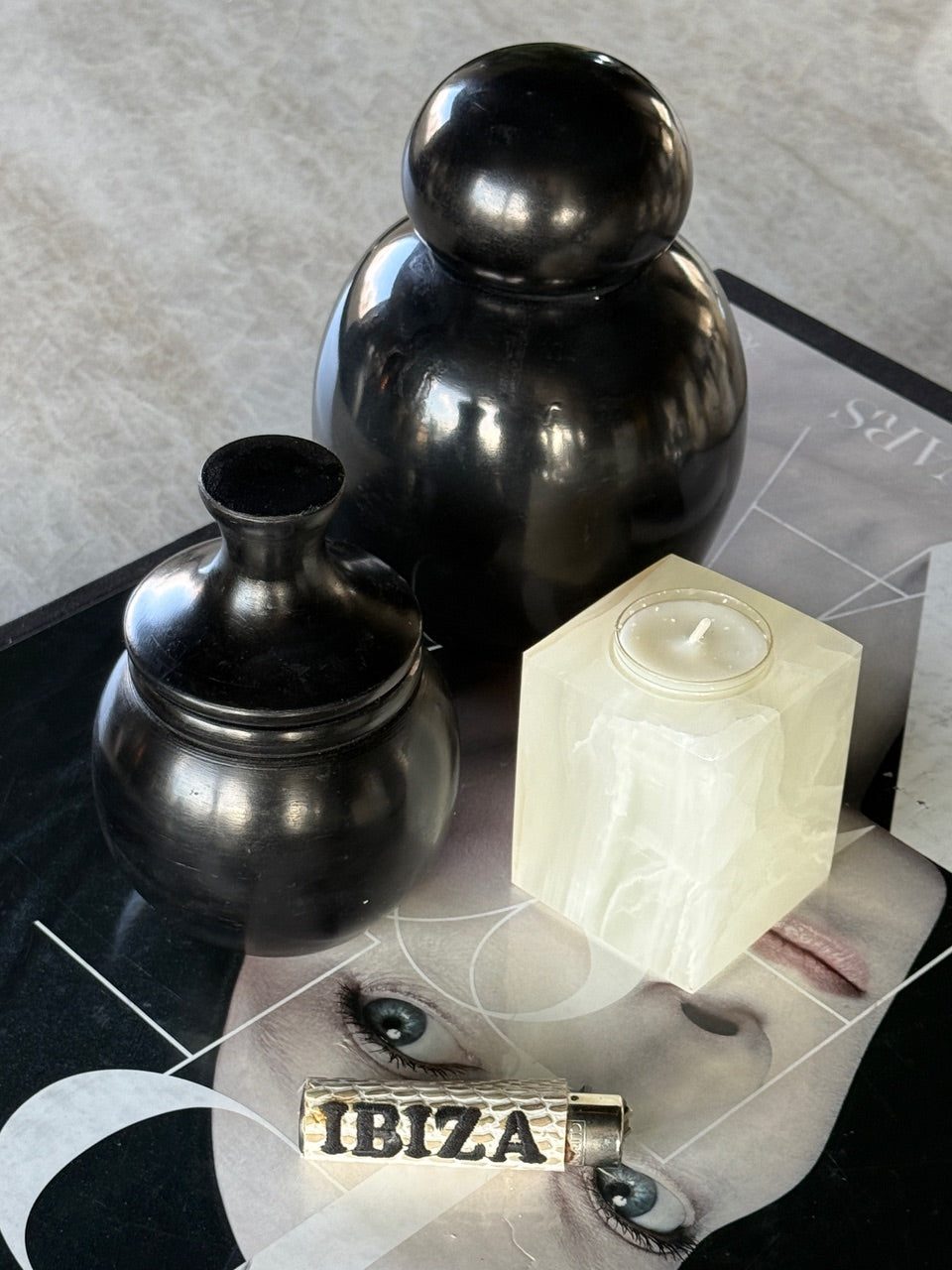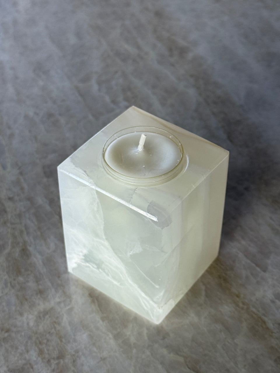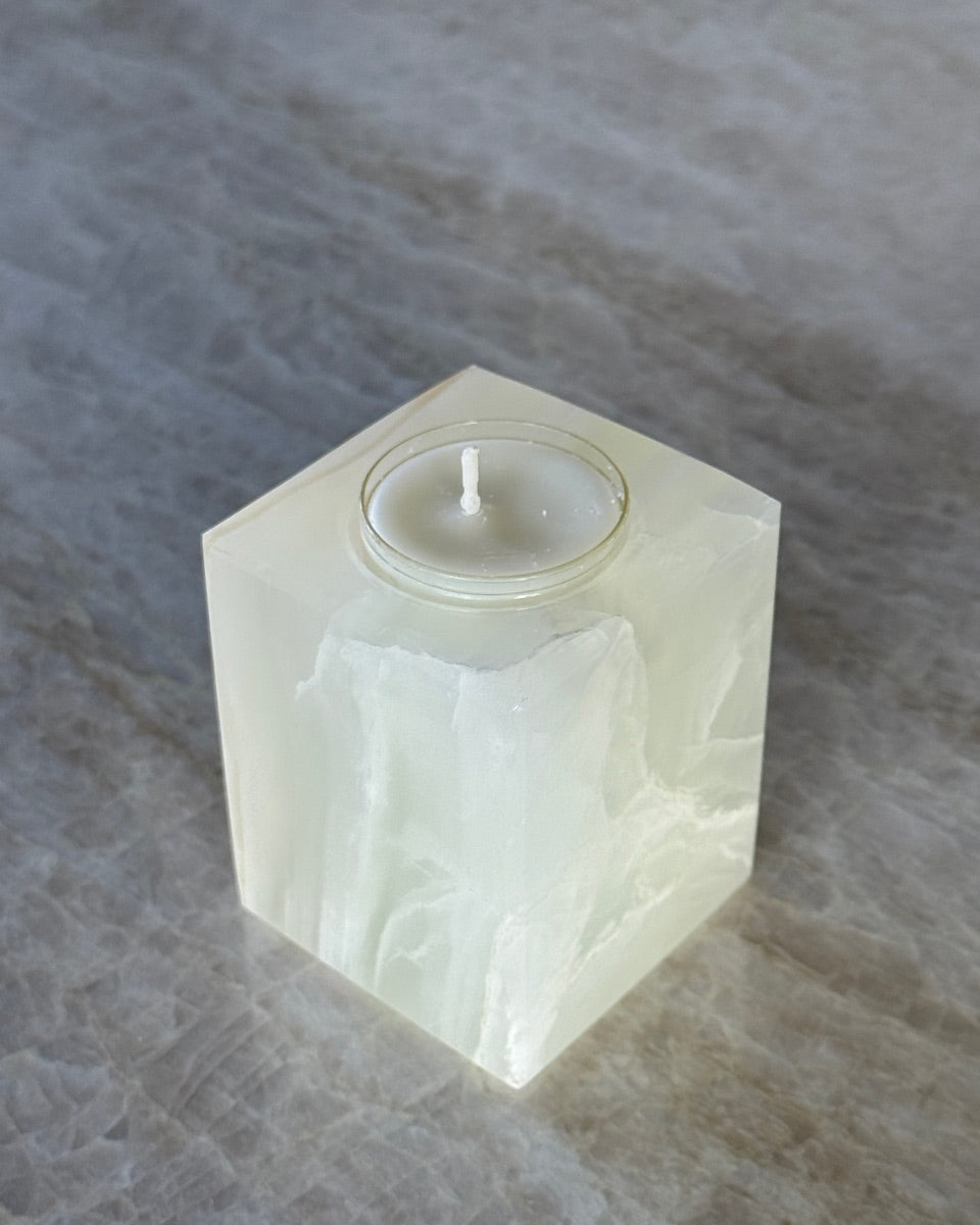 Onyx er et naturmateriale, og hver telysholder er unik. Farge og mønster vil variere noe.