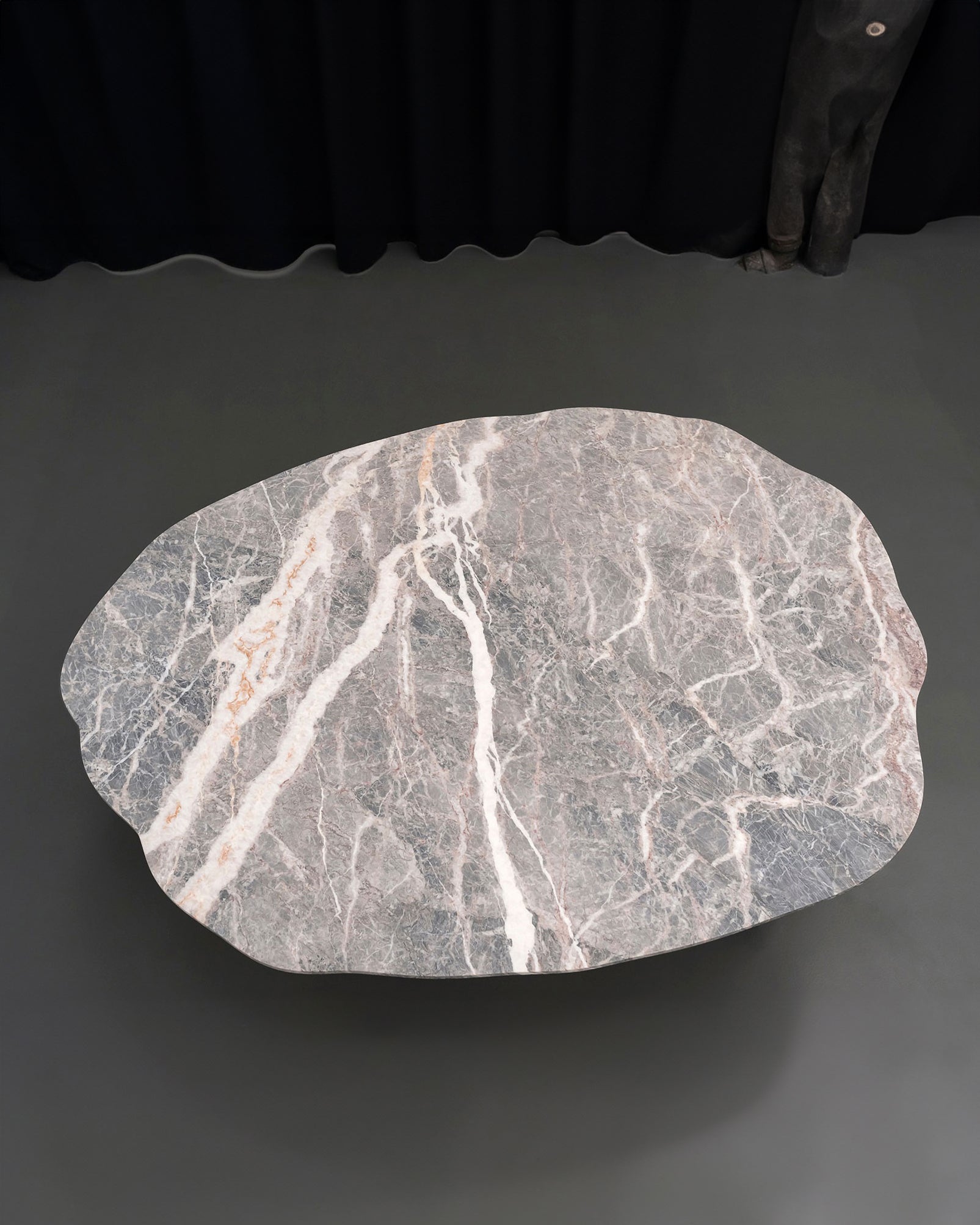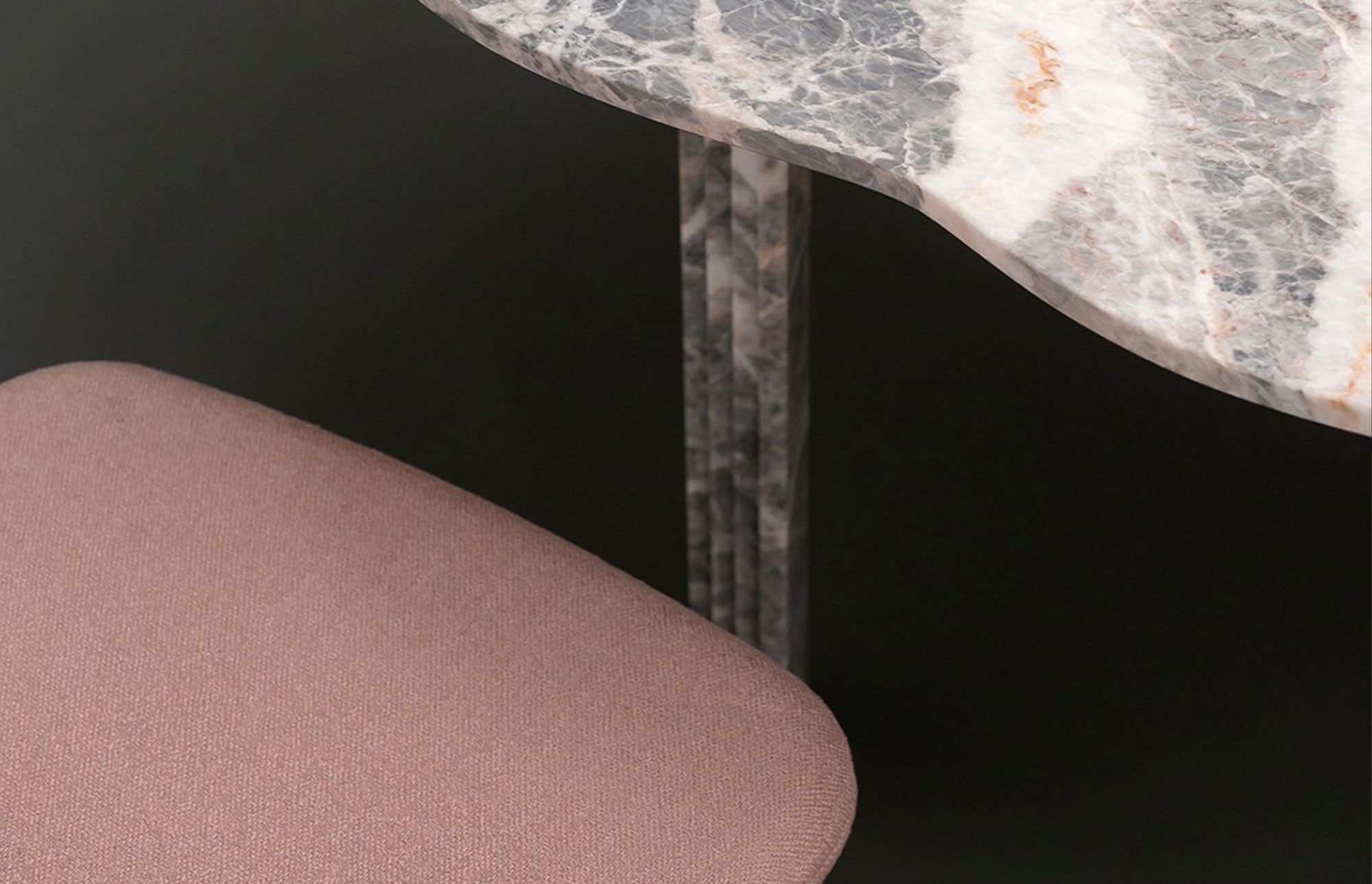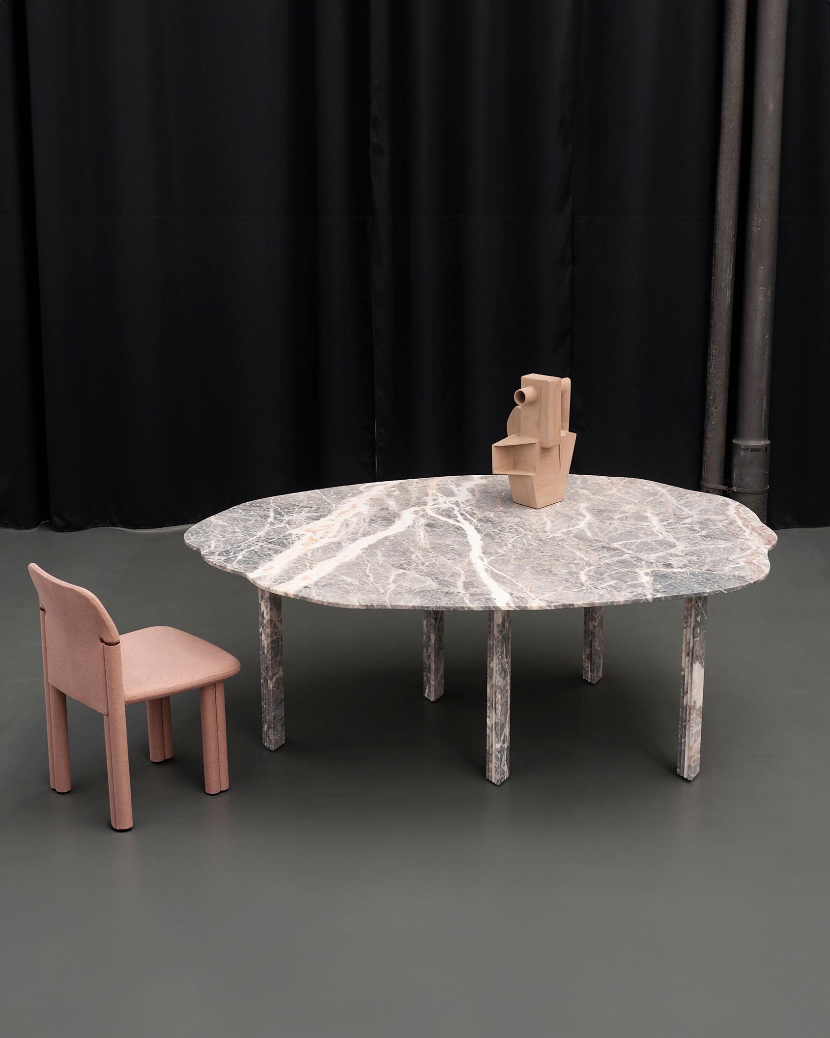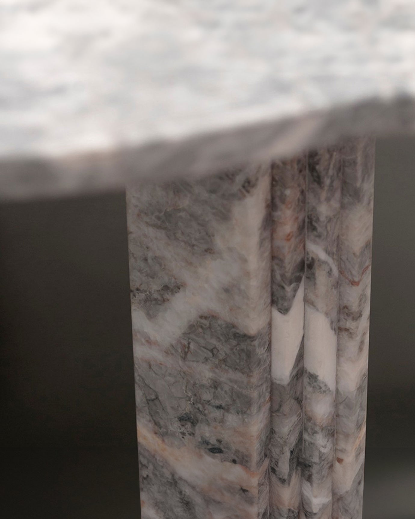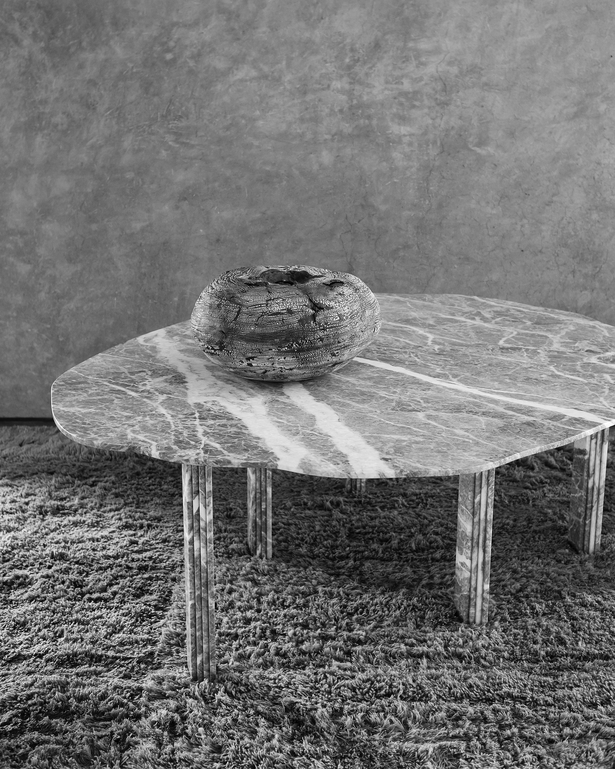 En ubestemt form, en gest, et enkelt materiale. For dette originale spisebordet er Lorenzo Bini inspirert av arbeidet til Cy Twombly og forvandler det til et stykke moderne design. En marmortopp - oppnådd ved å spore en del av den berømte "Orpheus" malt i 1979 - støttet av fem ben - oppnådd ved å kombinere lett forskjøvne strimler av samme marmor - blir en invitasjon til å sette seg for å hylle verket som den tok sin form og kunstneren som skapte den.