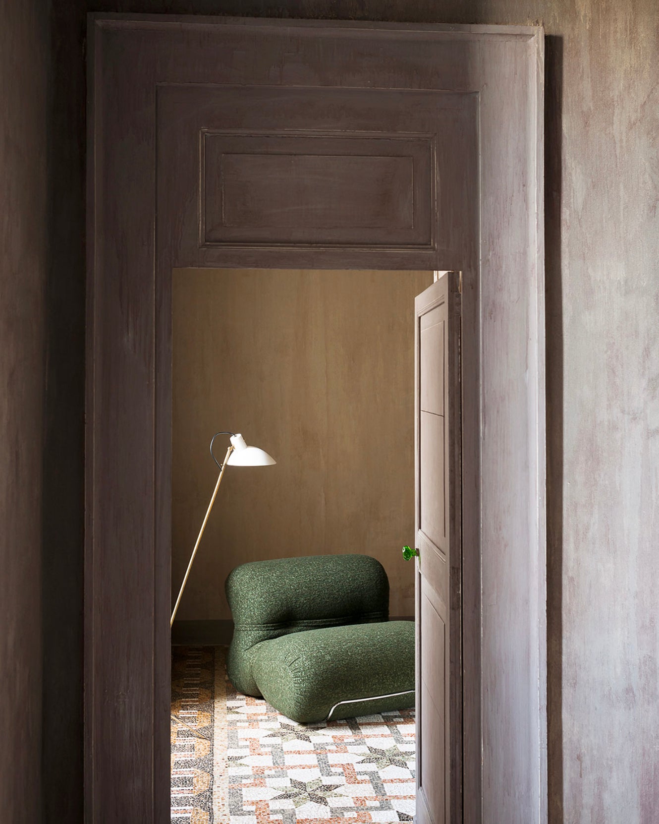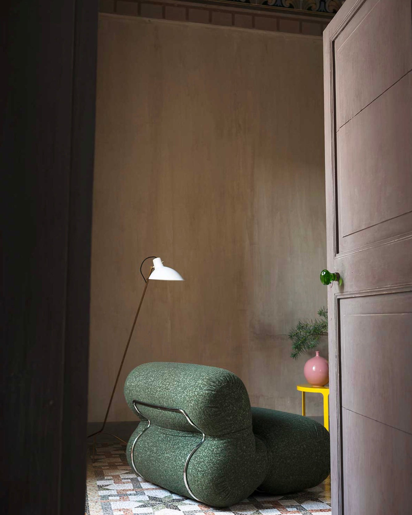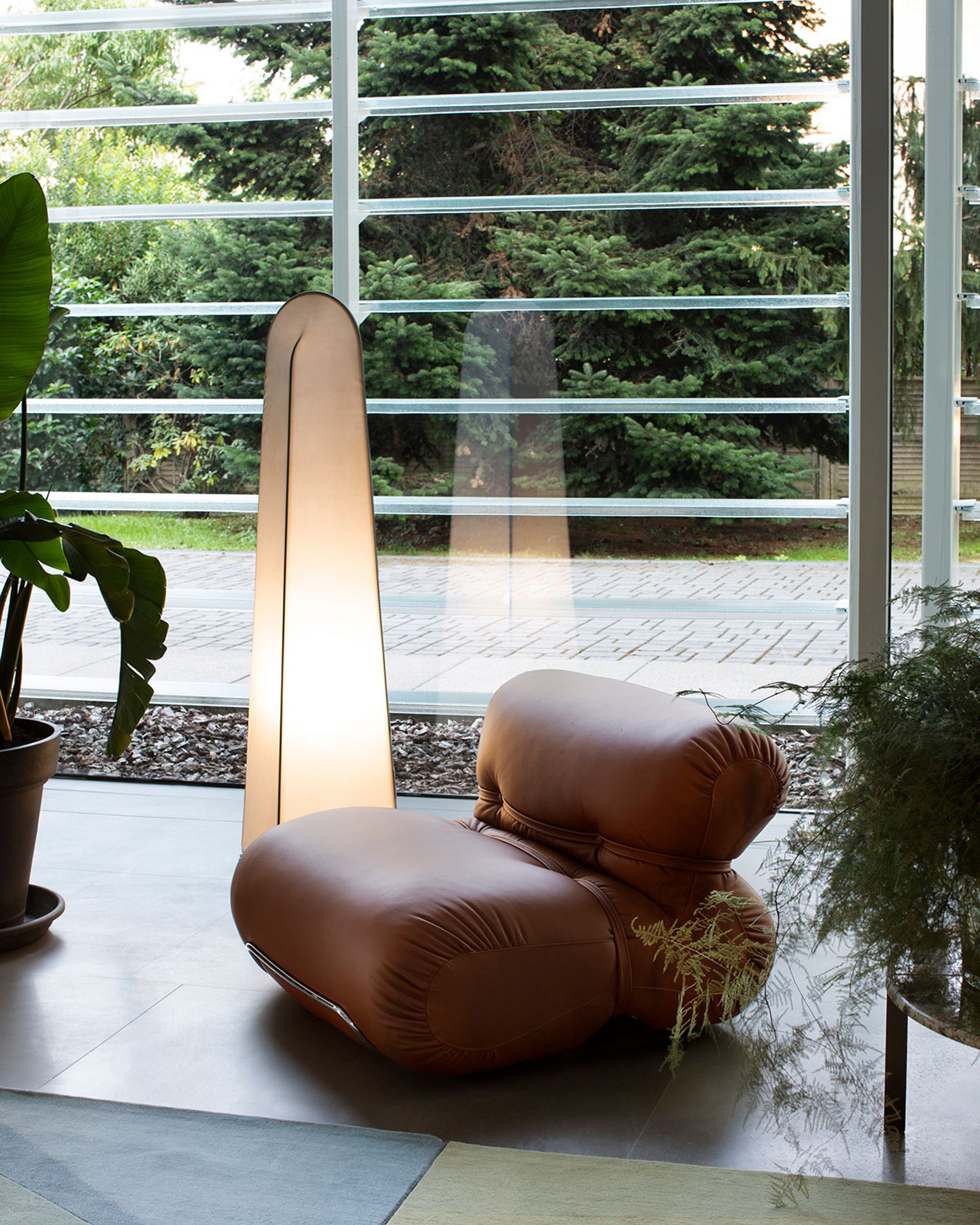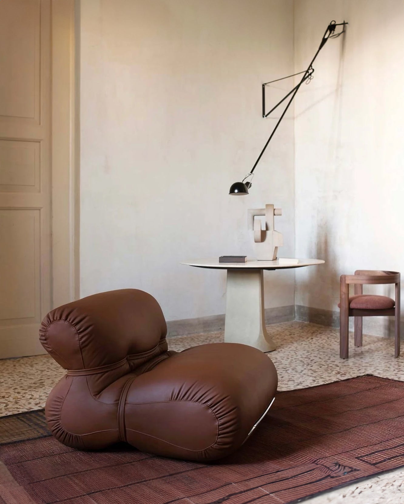Orsola lenestolen ble designet på 70-tallet av den italienske designeren Gastone Rinaldi. I dag har Tacchini relansert Orsola-serien som en ny utgave siden 2021. Lenestolen har runde og myke former, og det innovative formspråket er innbydende, understøttet av en forkrommet metallramme som tilfører en elegant detalj. Produksjonen foregår gjennom tradisjonelt og dyktig håndverk – på samme måte som for 50 år siden.