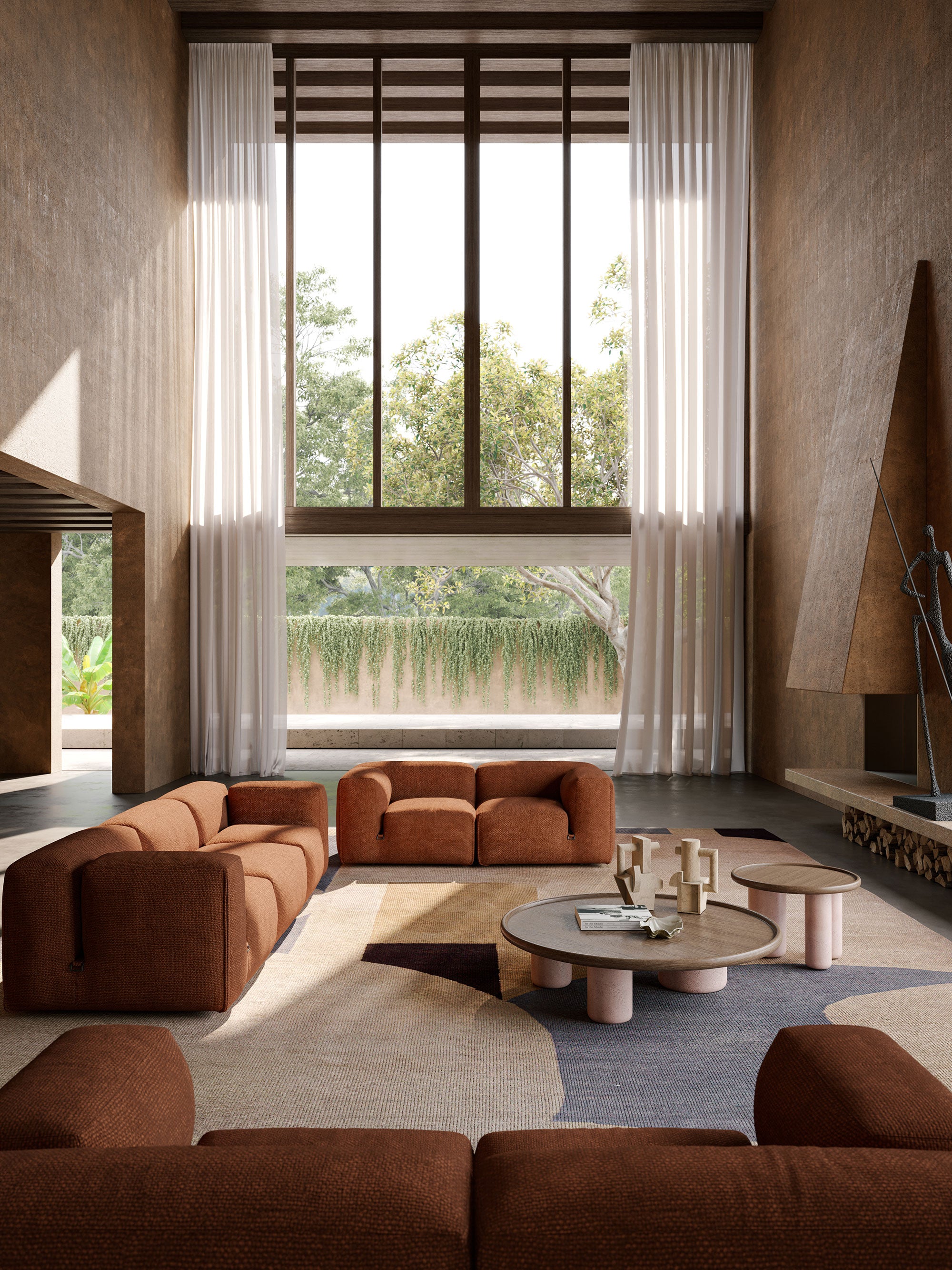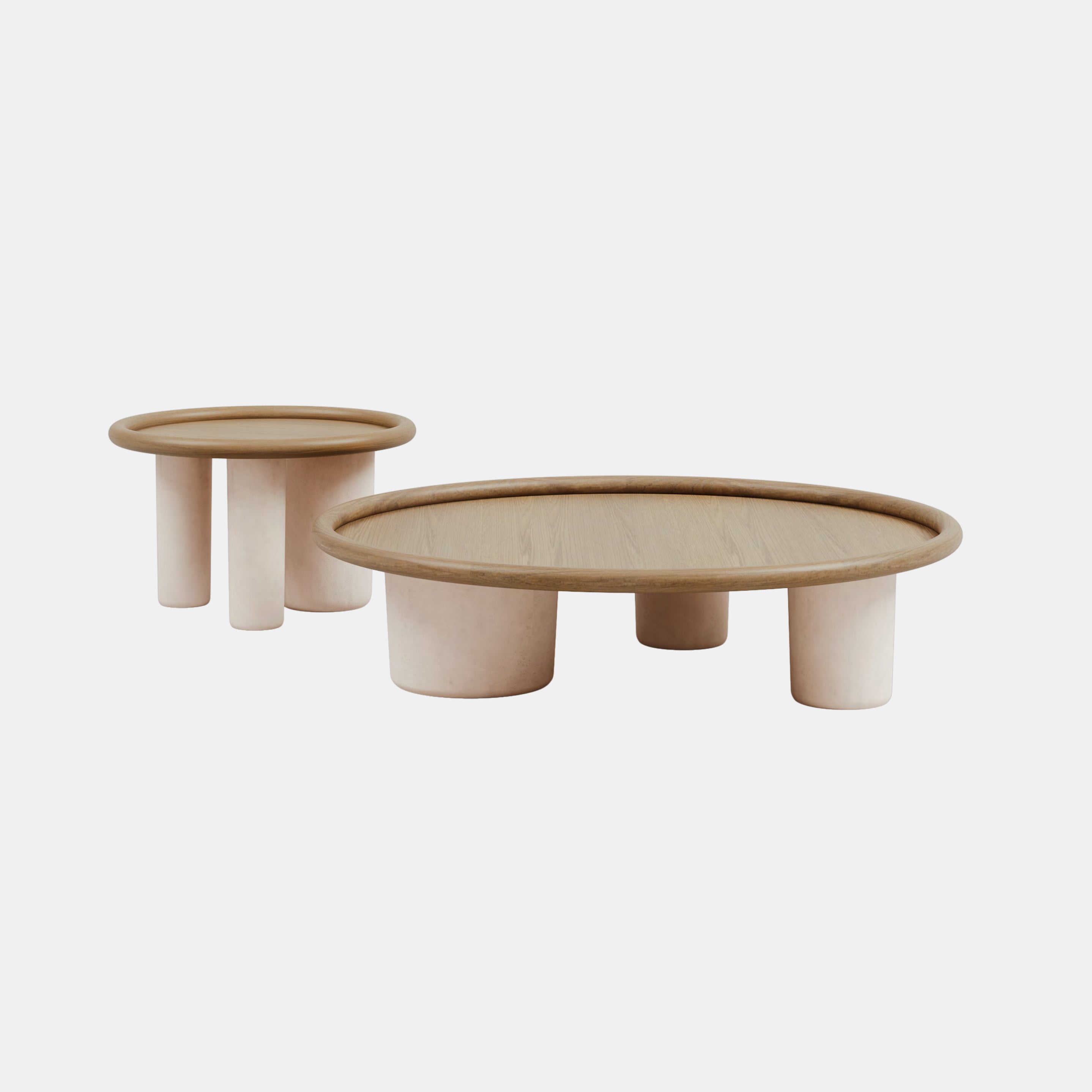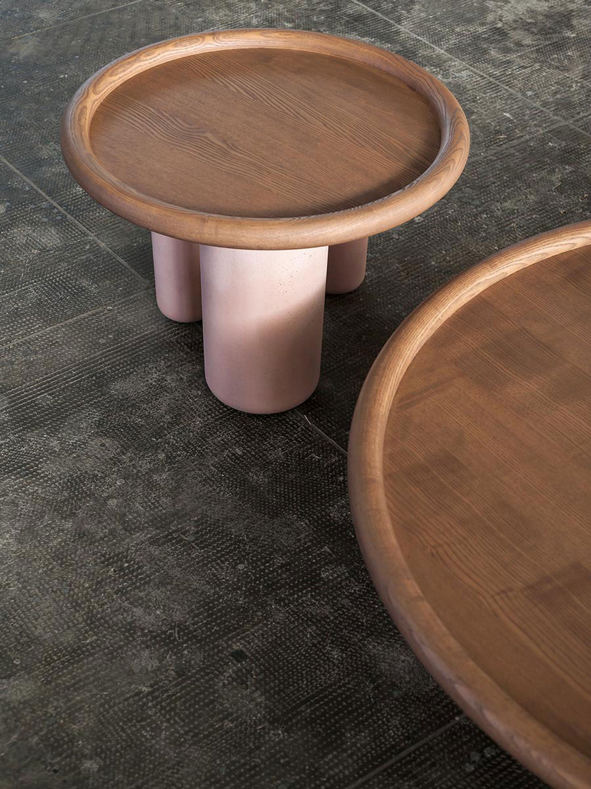 Designet av Studiopepe, Pluto salongbord er i hovedsak skulpturelle former og dristige detaljer som minner om kubisme. Tilgjengelig i to størrelser, består salongbordene av en bordplate i heltre med bullnose-kant og tre massive betongben med forskjellige diametre, som gir bordet vertikal bevegelse. Avhengig av betrakterens perspektiv, ser det ut til at utseendet endrer seg.