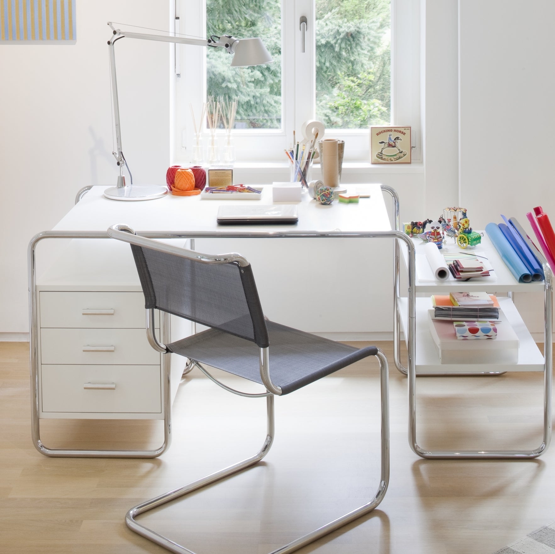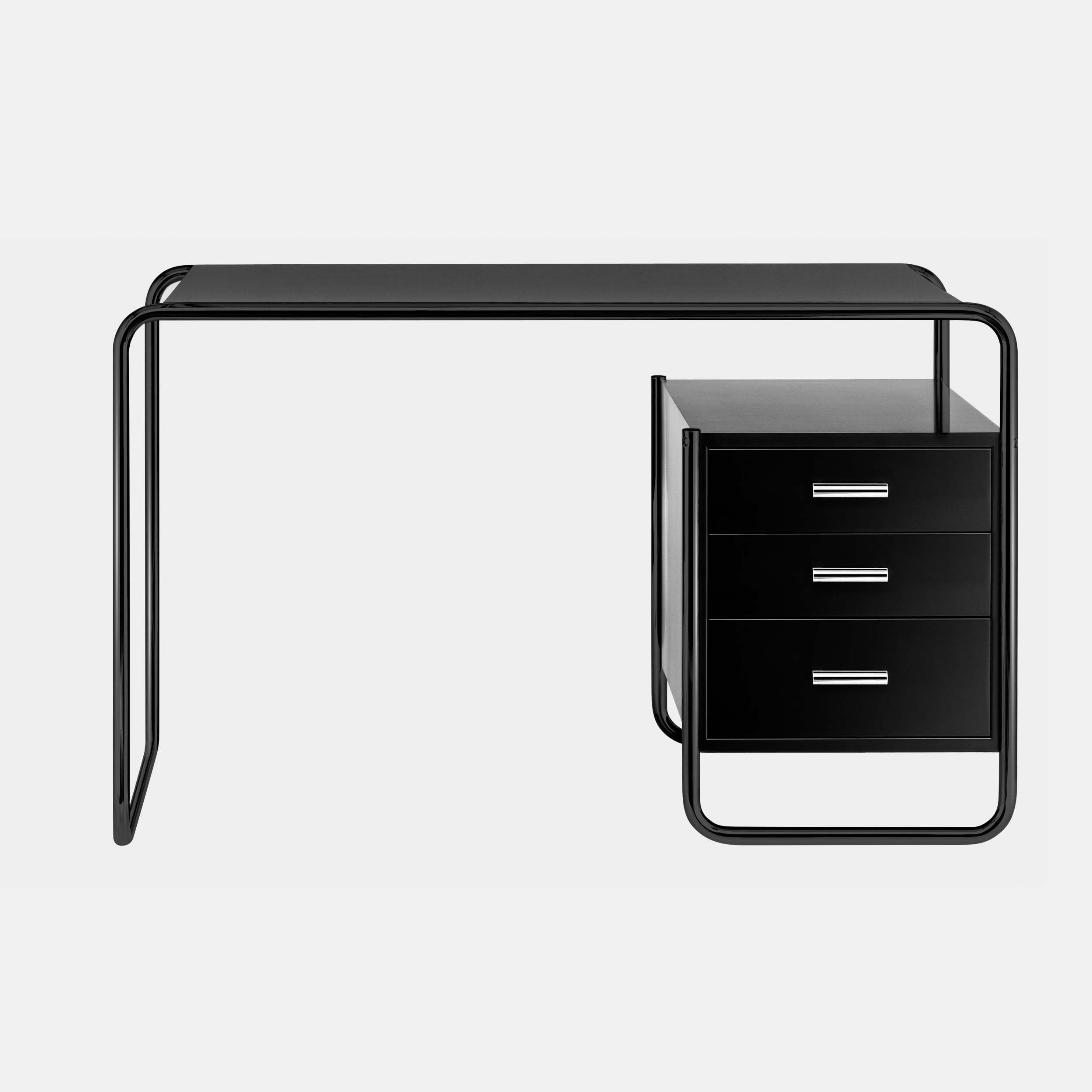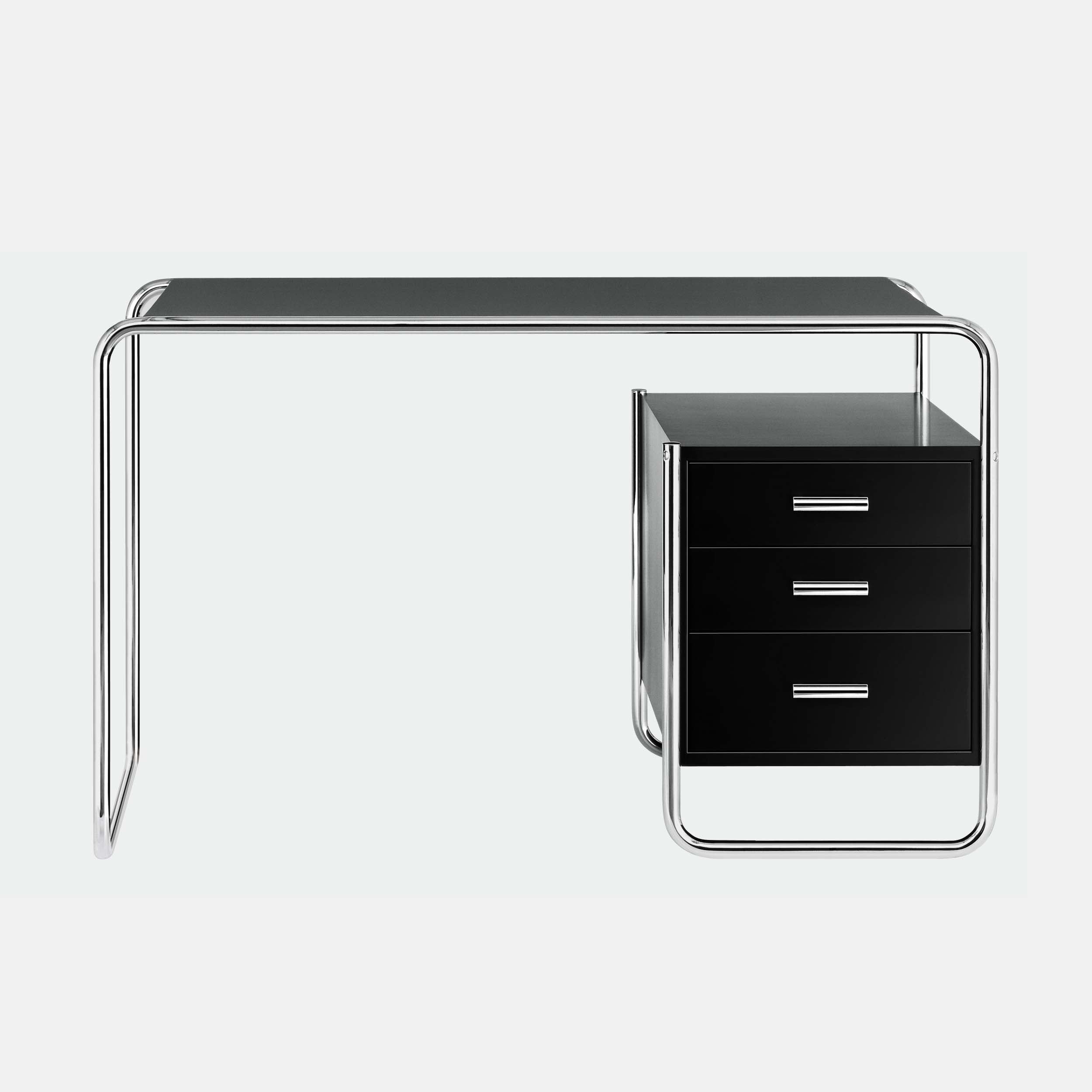 Det er som om Marcel Breuer hadde forutsett dagens hjemmekontorer og mobile datamaskiner: Det kompakte stålrørspulten S 285 som han designet er en elegant følgesvenn for moderne livsstil og arbeid. Marcel Breuers stålrørskrivebord S 285 for Thonet er et vellykket eksempel på det programmatiske Bauhaus-kravet om å kombinere kunst og teknologi til en ny enhet. Breuer var utdannet snekker og kombinerte sin kunnskap om stålrør som materiale med sin erfaring innen interiørdesign. Bordplaten og oppbevaringselementene laget av lakkert eller beiset tre passer harmonisk inn i stålrørsrammen. Bærerammen består av en buet linje, og treelementene preget av klare former ser ut til å flyte i den. Dette møbelet med sine formelt balanserte proporsjoner representerer et viktig stykke samtidshistorie, kjent som "The New Objectivity". Thonet produserer ulike versjoner av denne slående modellen.