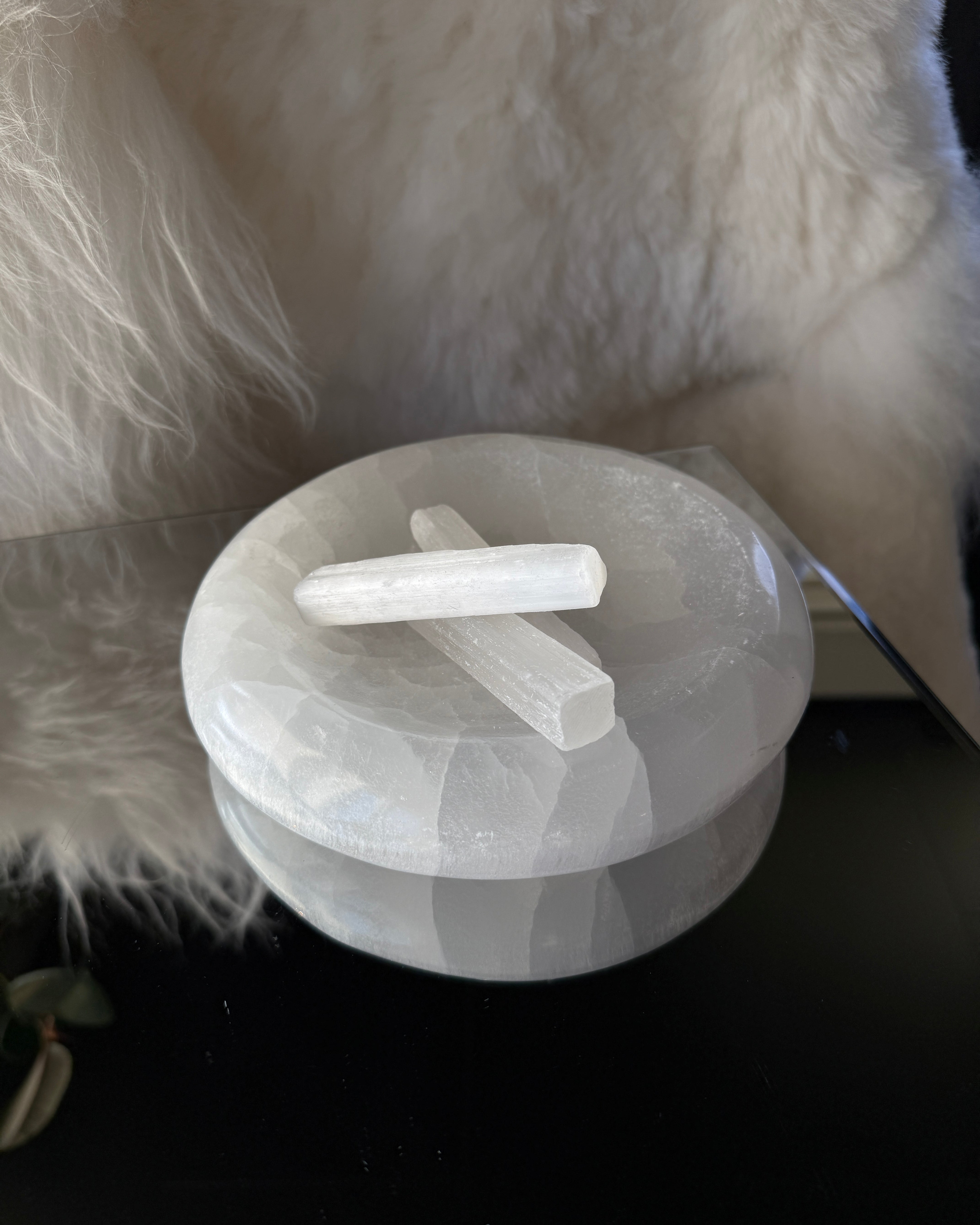 Selenitt er en krystall som kan rense alle typer energier. Den er beroliggende og perfekt for meditasjon!