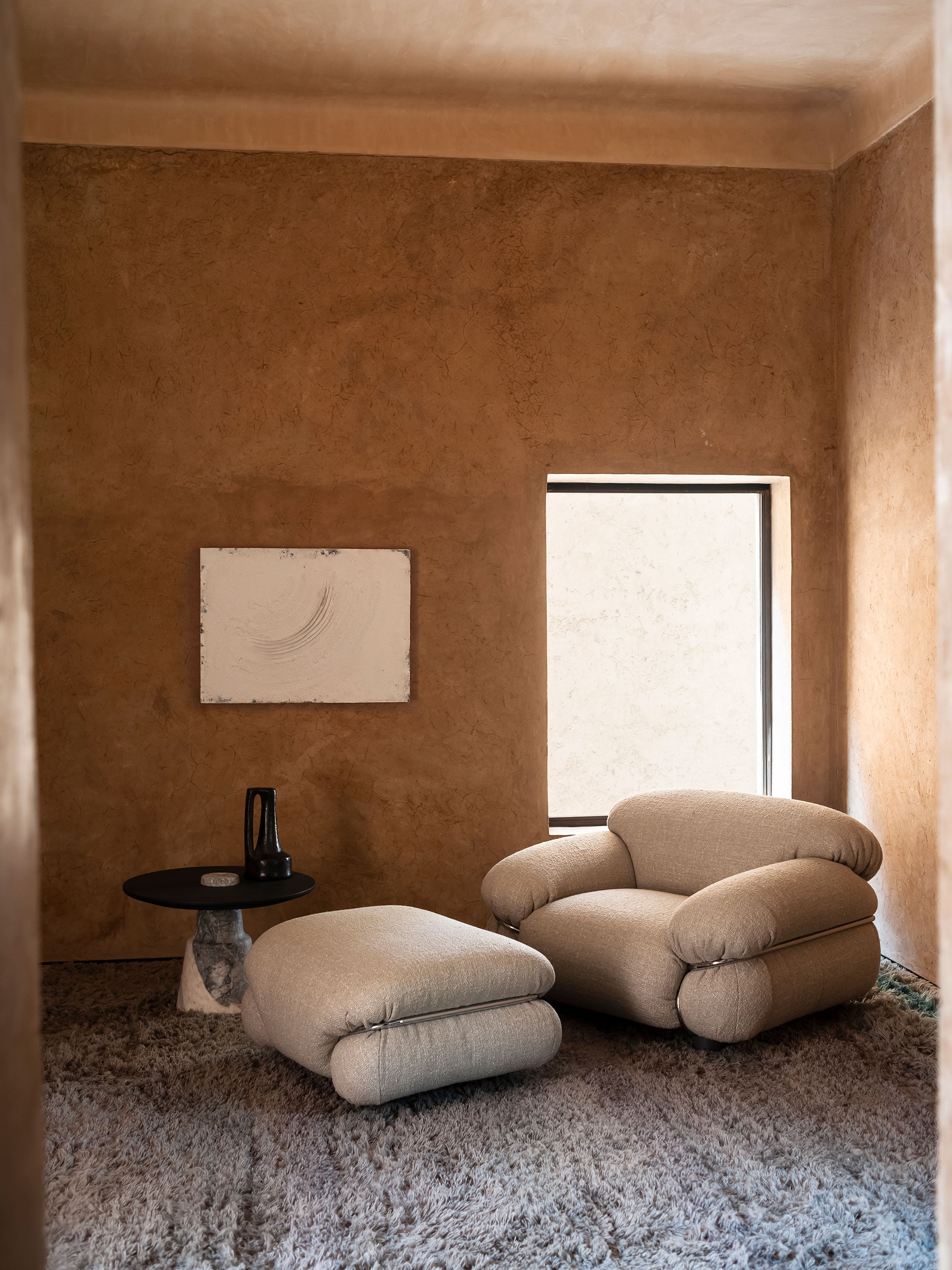 Et ikon for italiensk design på 1970-tallet, Sesann-kolleksjonen av Gianfranco Frattini var en del av en ny visjon om moderne livsstil der ergonomi ble tilpasset sosial endring, og innledet en måte å sitte på som er mer avslappet og mindre stiv formell. I dag, som da, er det en åpen invitasjon til komfortens skjønnhet i sitt mest autentiske uttrykk. Sesann er det absolutte symbolet på mykhet!